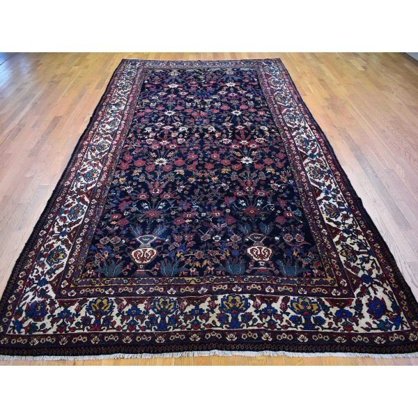 7’2″x19’3″ Midnight Blue, Antique Persian Bakhtiari with Repetitive Botanical Design, Gallery Size, Hand Knotted, 100% Wool, XL, Oriental Rug HR78467