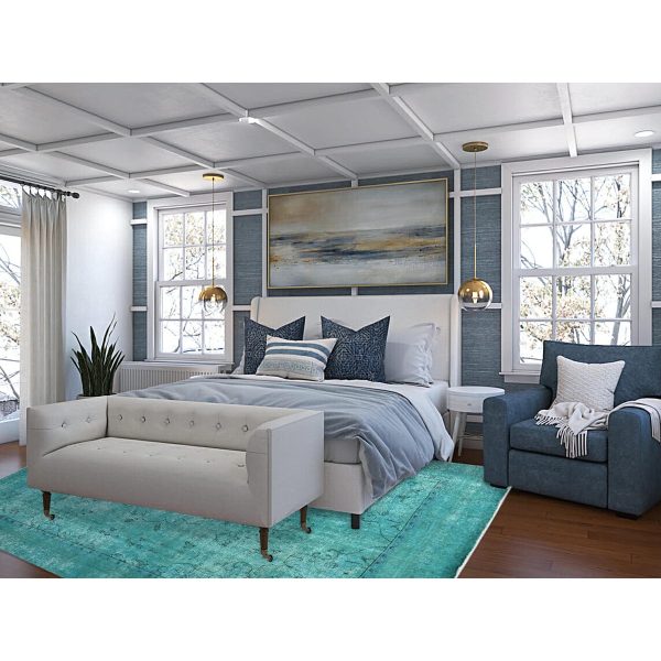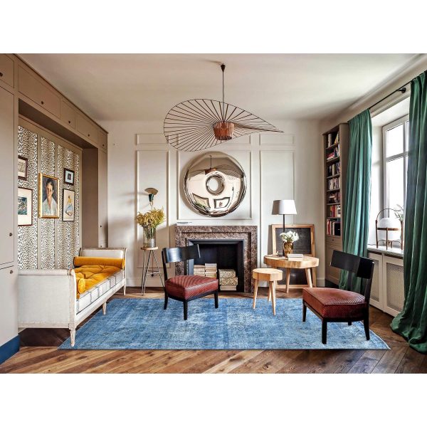 7’5″x11′ Hawaiian Surf Blue, Excellent Condition, Cropped Thin and Sheared Low, Hand Knotted Sides and Ends Secured, Professionally Cleaned, Evenly Worn Vibrant Wool, Overdyed Old Persian Tabriz, Oriental Rug HR86102