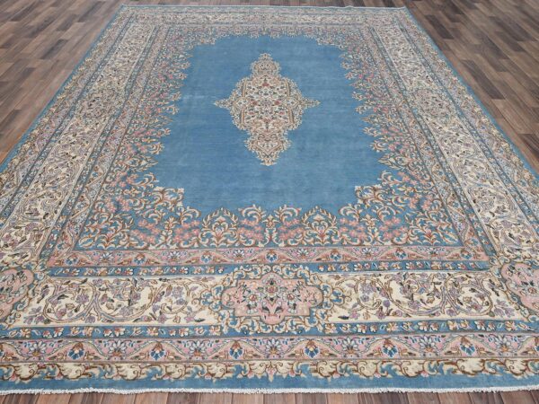 8’10″x11’10” Maui Blue, Vintage Persian Kerman, Good Condition, Clean and Soft, Full Pile, 100% Wool, Hand Knotted, Oriental Rug HR2053