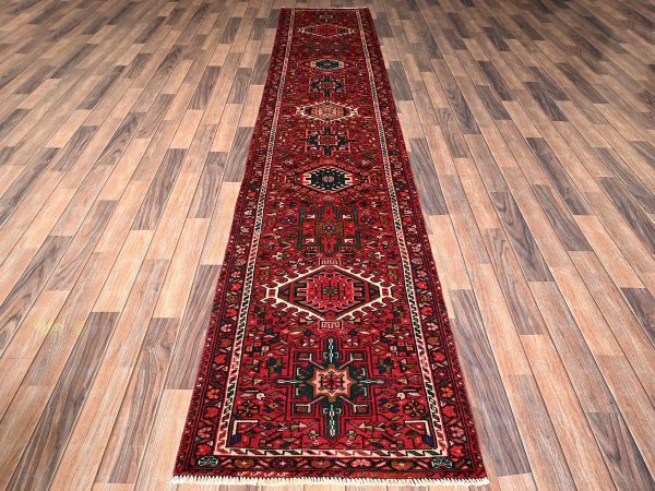 2’4″x12′ Crimson Red, Vintage Persian Karajeh, Worn Out and Distressed, Zero Pile, Clean, Hand Knotted, 100% Wool, Narrow Runner, Oriental Rug HR1843