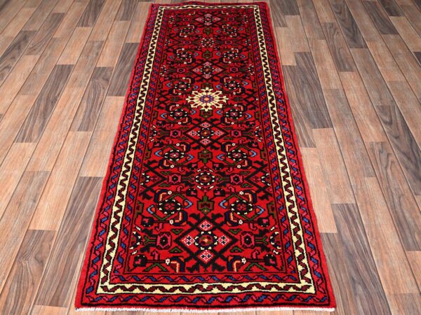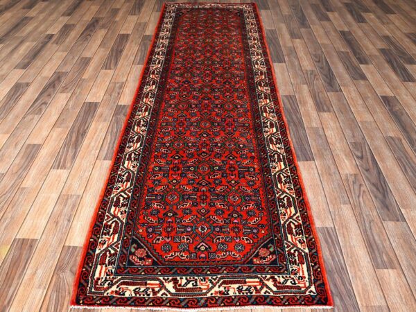 2’10″x9’5″ Chili Red, New Persian Hussainabad with All Over Design, Full Pile and Soft, Hand Knotted, Pure Wool, Runner, Oriental Rug HR1892