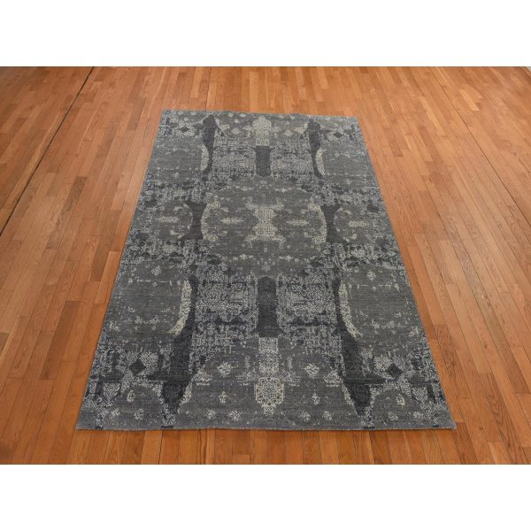 6’1″x9’2″ Sonic Gray, Jewelry Design, Soft to the Touch, Wool and Silk, Hand Knotted, Modern, Oriental Rug HR78391
