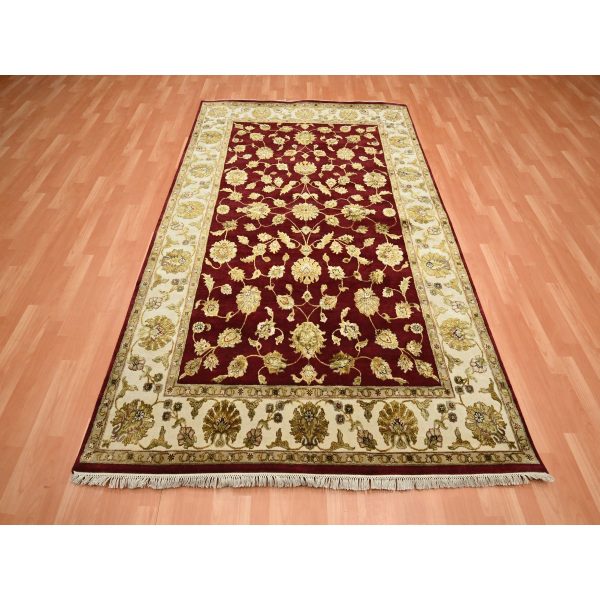 5’1″x7’1″ Burgundy Red, Rajasthan Design, Half Wool and Half Silk, Hand Knotted, Oriental Rug HR87320