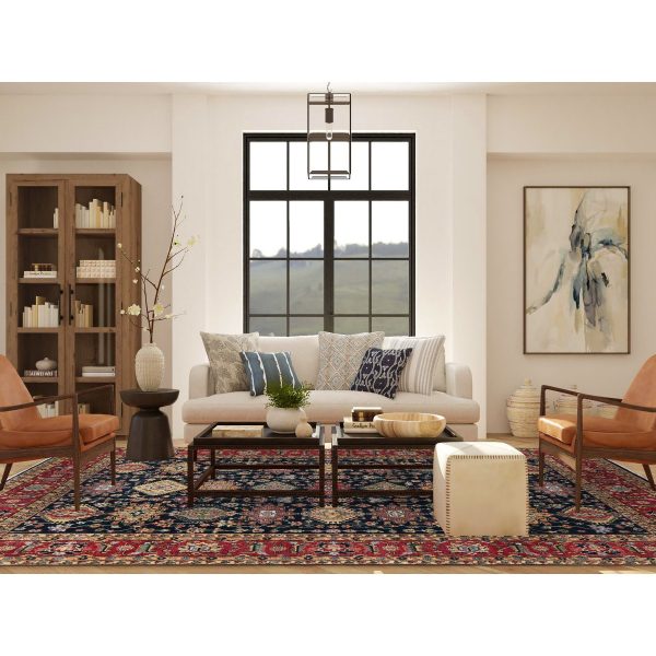 9’x12′ Rich Red, Hand Knotted Afghan Ersari with Large Elements Design, Vegetable Dyes Pure Wool, Oriental Rug HR71364
