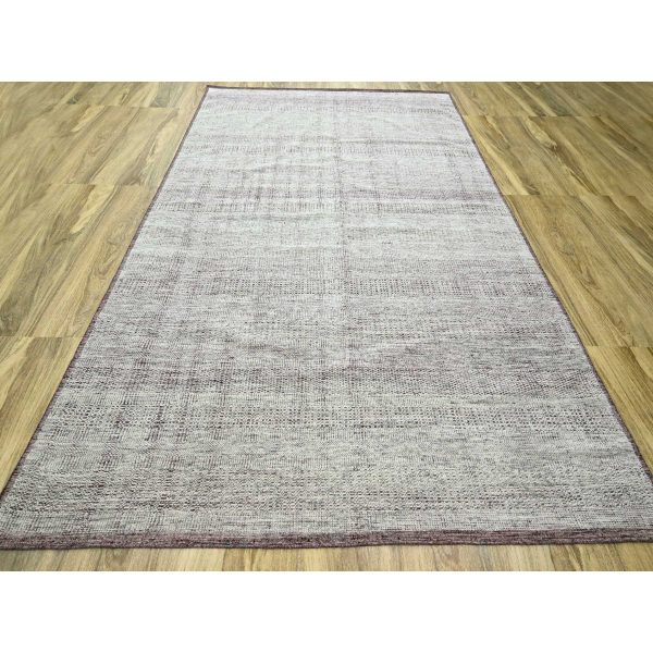 9’x12′ Wine Red with Powder White, Oxidized and Distressed Grass Design with Exposed Warps, 100% Wool, Hand Knotted, Oriental Rug HR76297