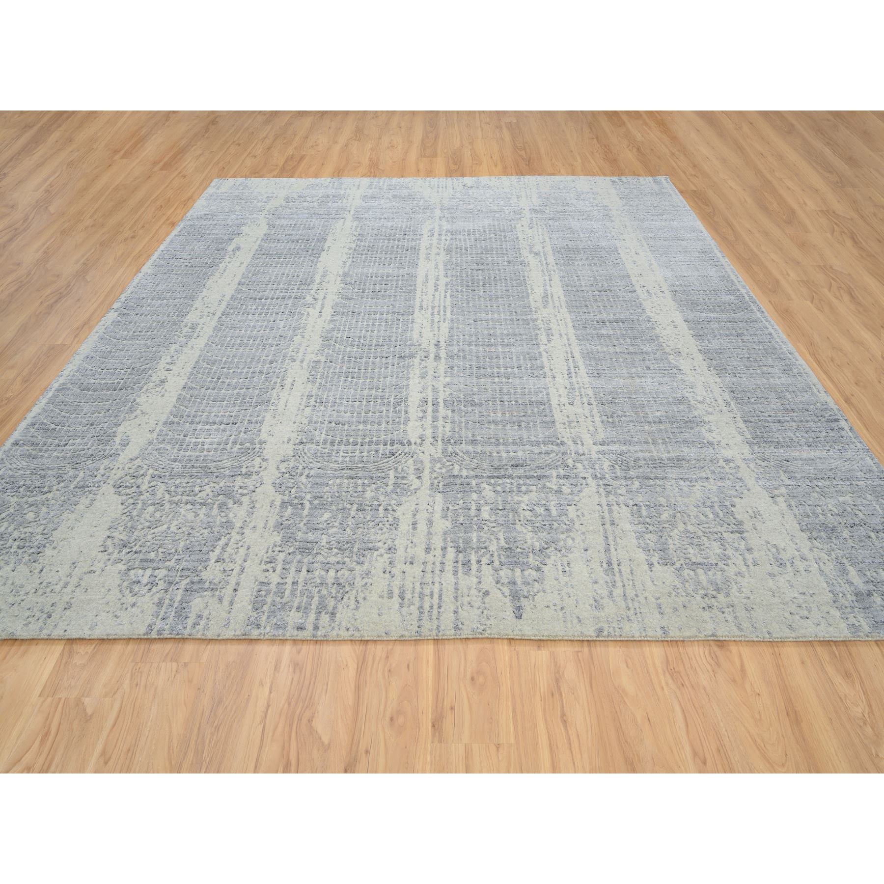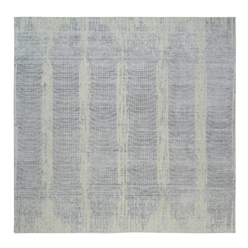 10’2″x10’2″ Gray, Tone On Tone Transitional Erased Design, Jacquard Hand Loomed, Wool And Plant Based Silk, Oriental, Square Rug HR63824