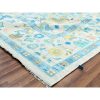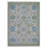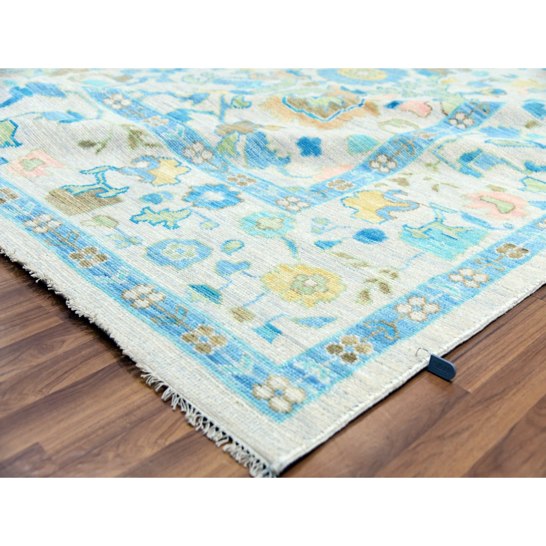 10’2″x14′ Frost Ivory with Turquoise Blue and Green, Hand Knotted, Oushak Weave and Design, Pure Wool, Lush Pile, Oriental Rug HR79947