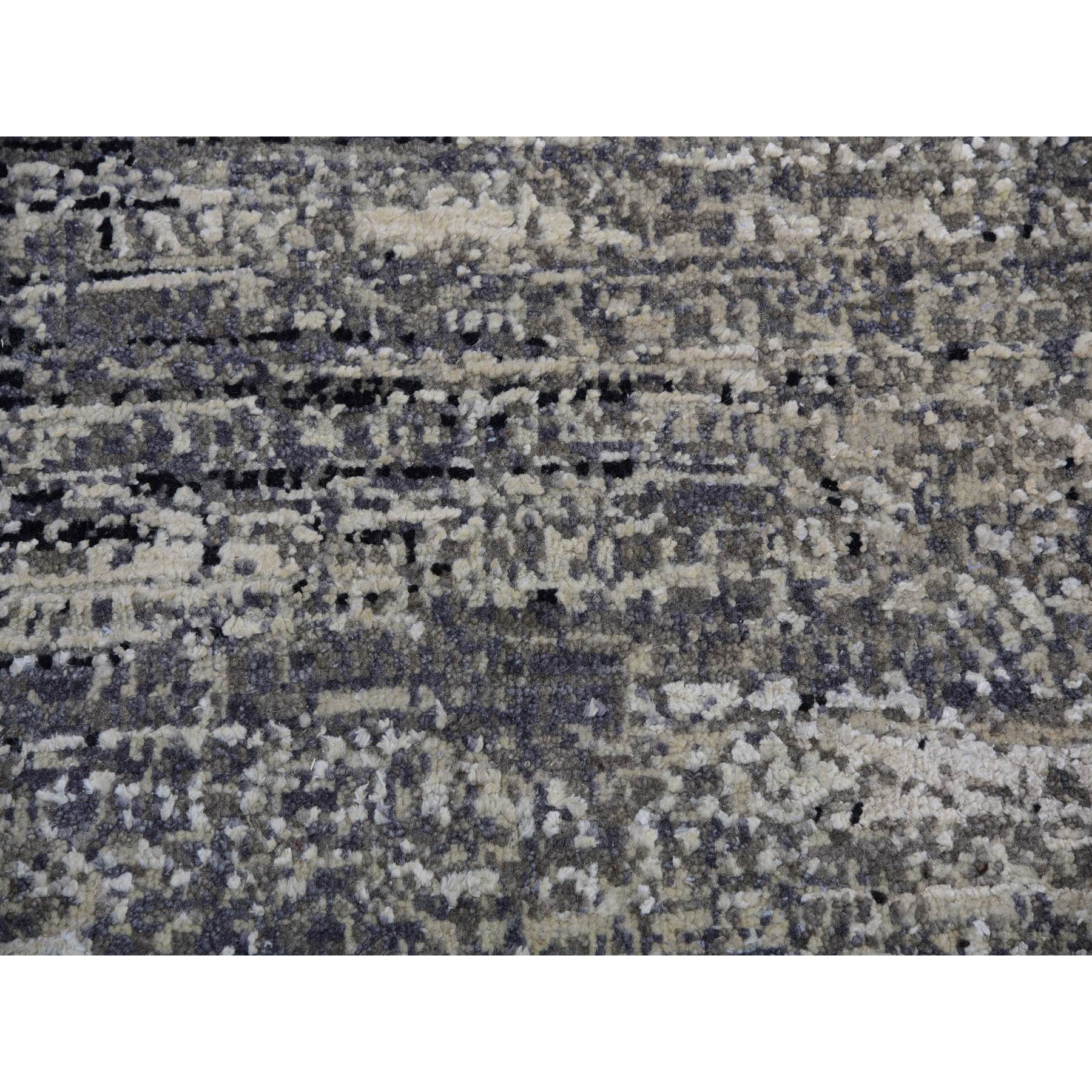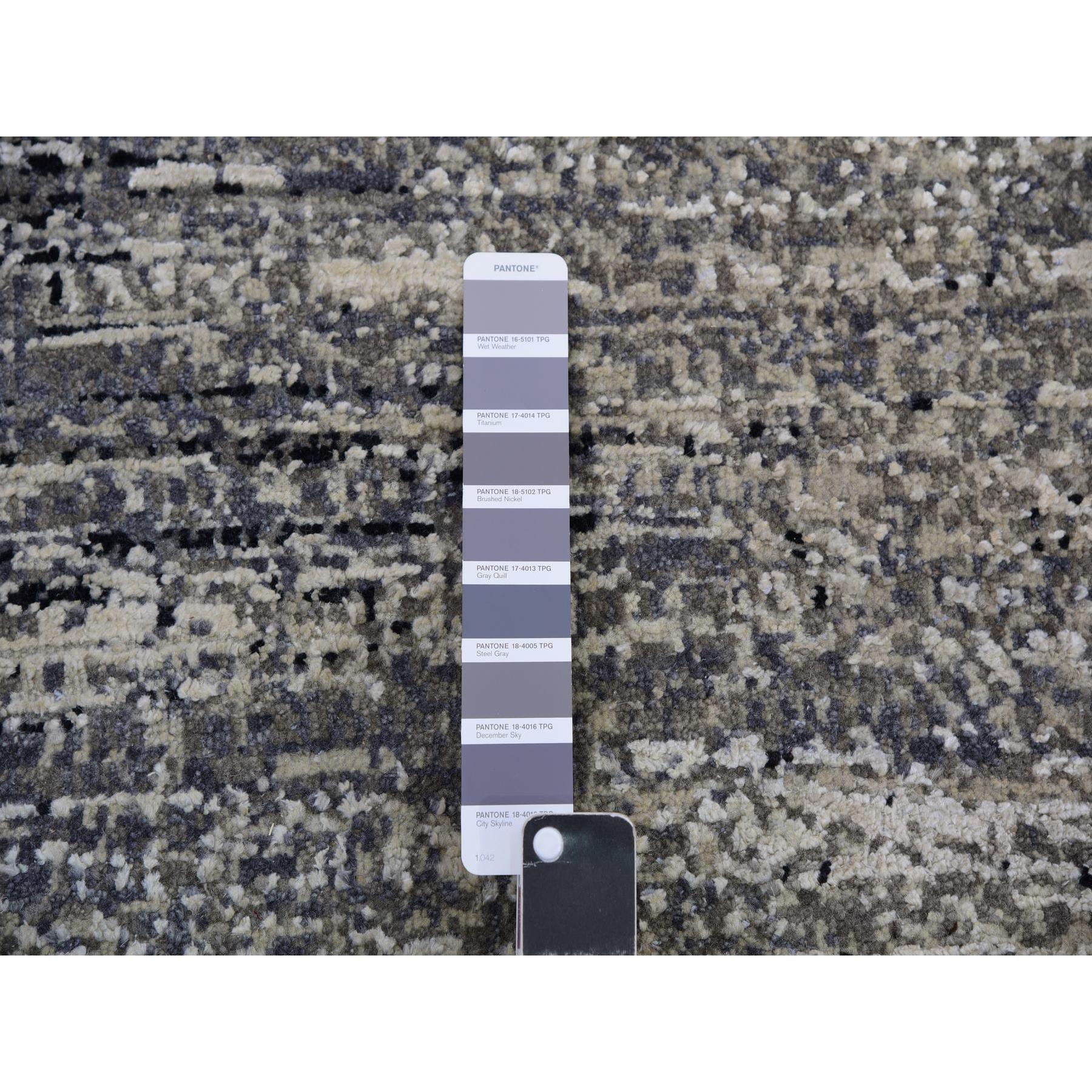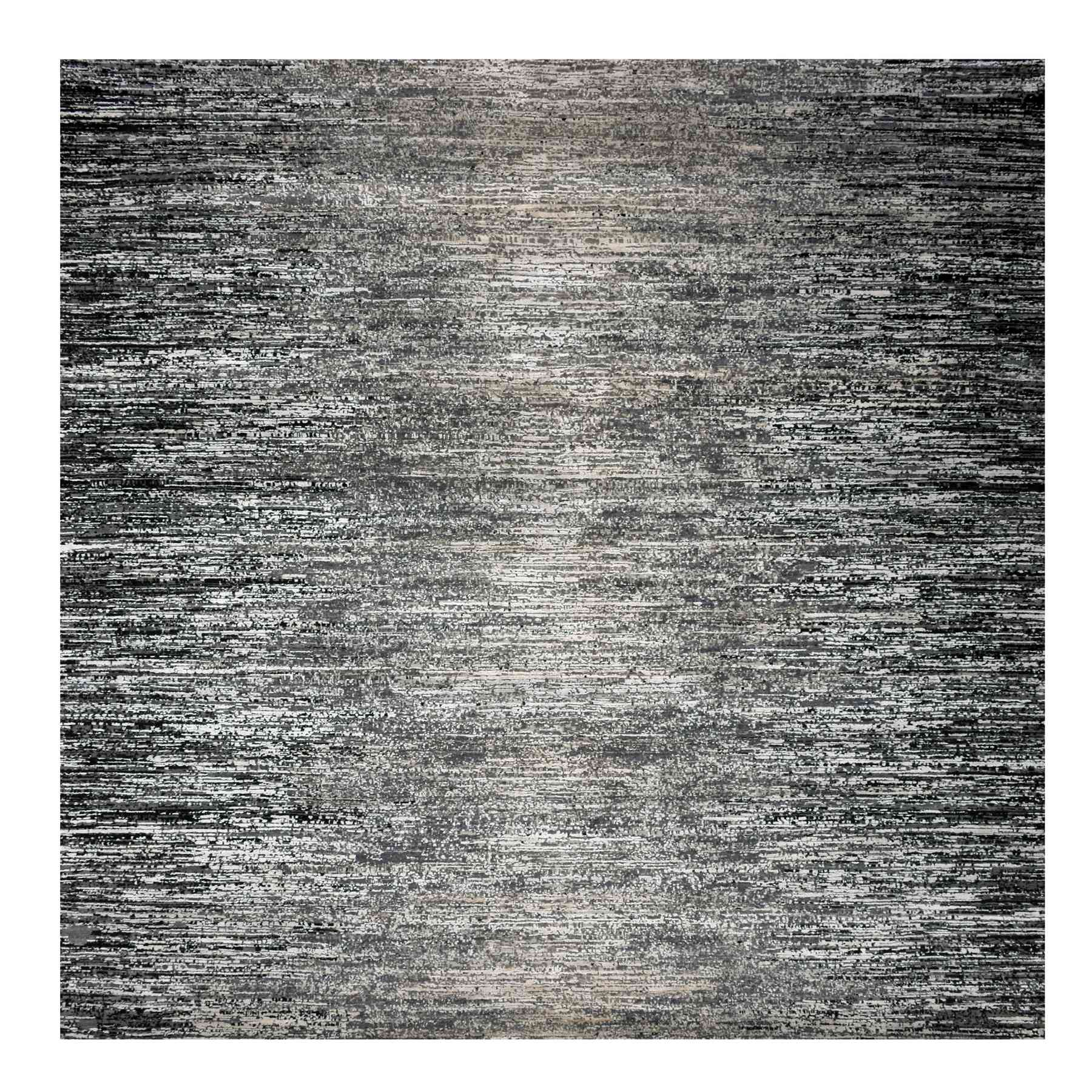 10’x10′ Bohemian Black with Touches of Dorian Gray, Modern Striae Design With Vibrant Colors, Hand Knotted, Wool and Silk Square Oriental Rug HR75340