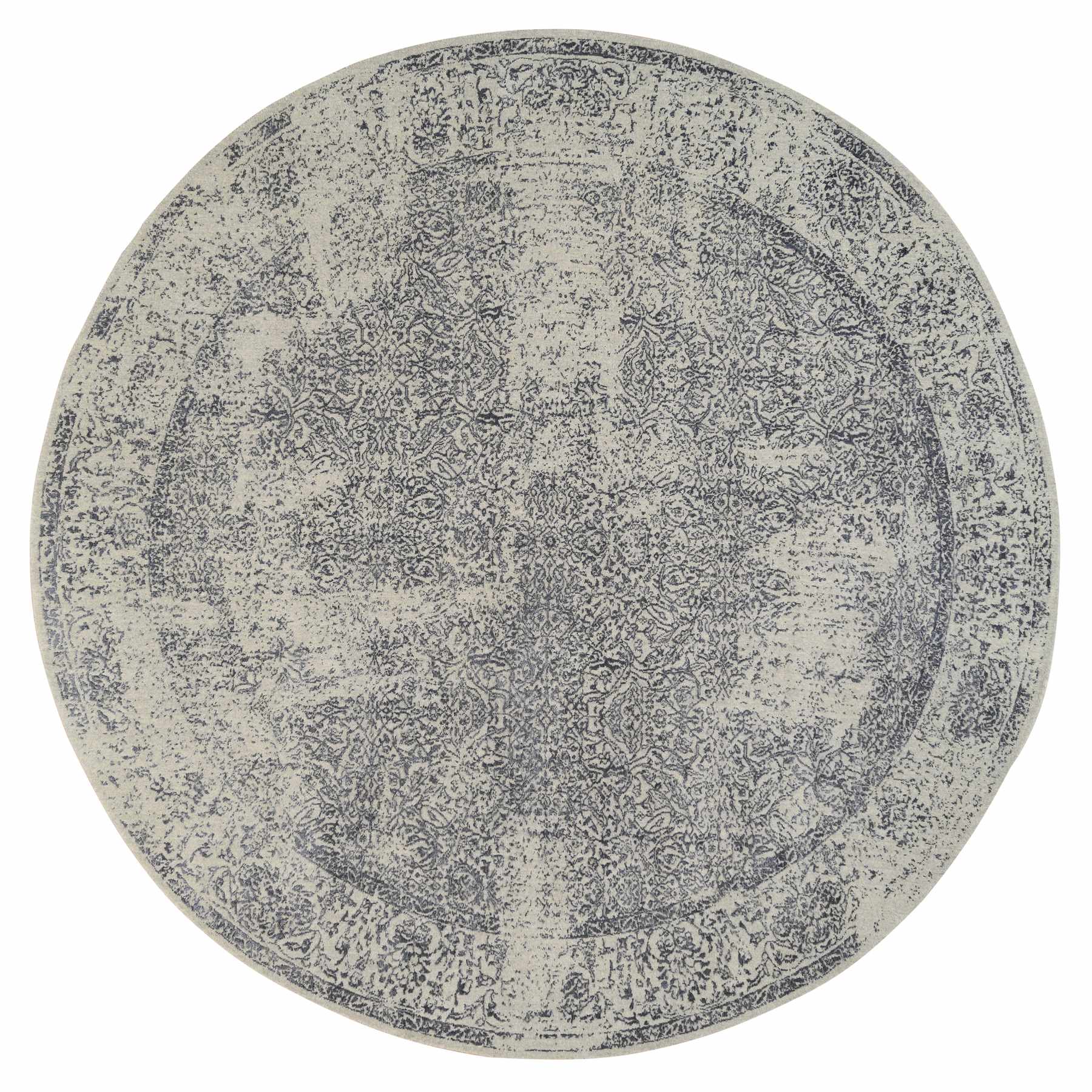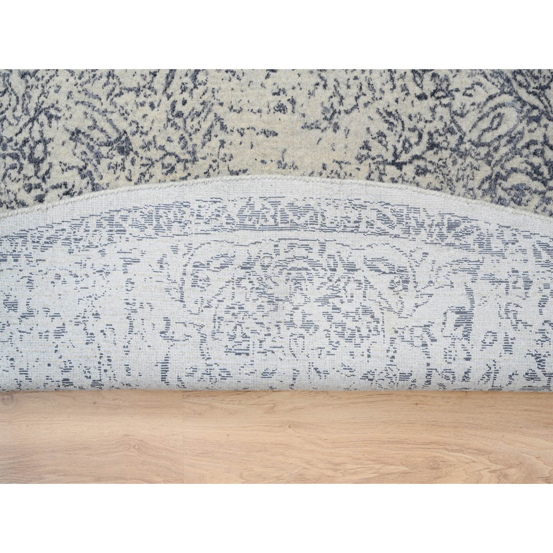 10’x10′ Gray Fine Jacquard with Erased Design Wool and Plant Based Silk Hand Loomed Oriental Round Rug HR63504