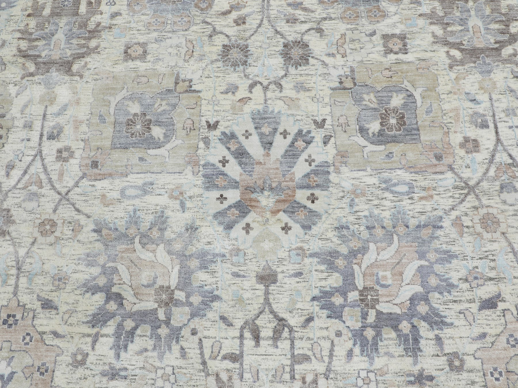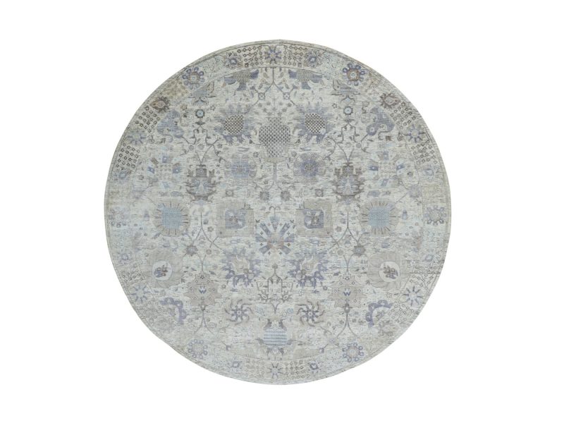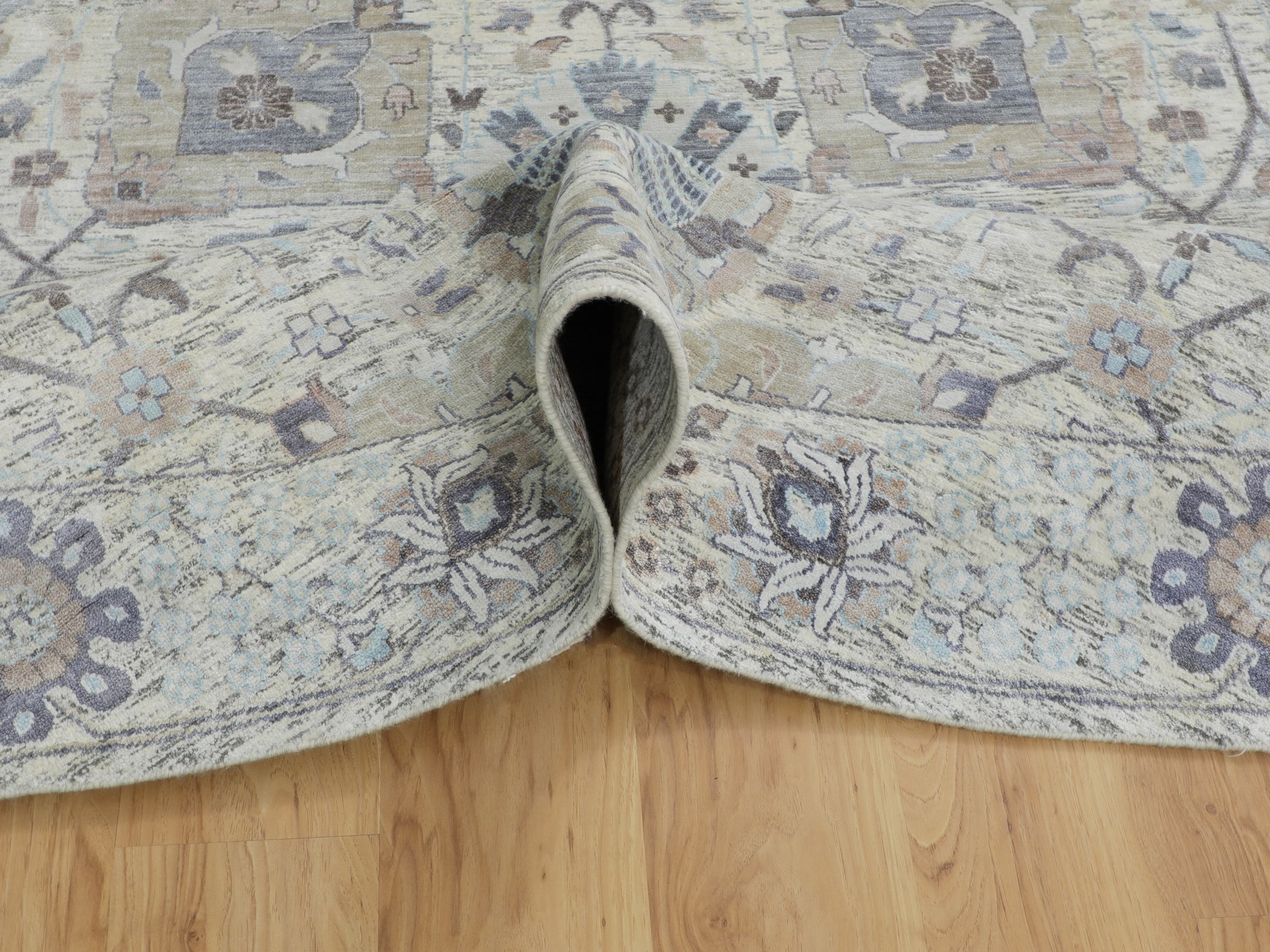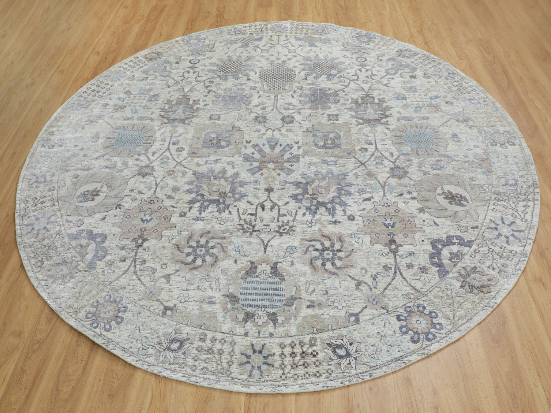 10’x10′ Round Ivory Silk With Textured Wool Tabriz Hand Knotted Oriental Rug HR58165