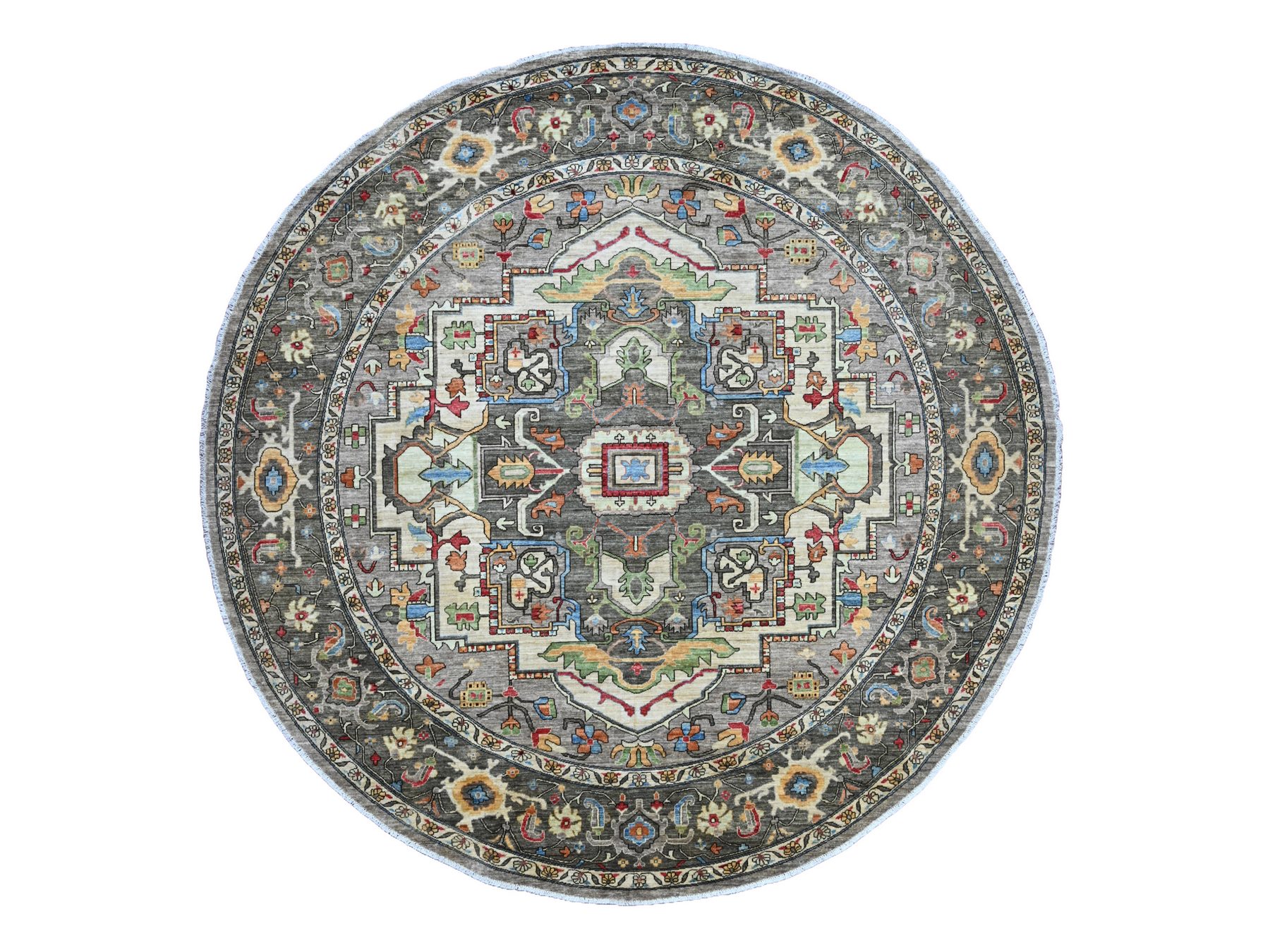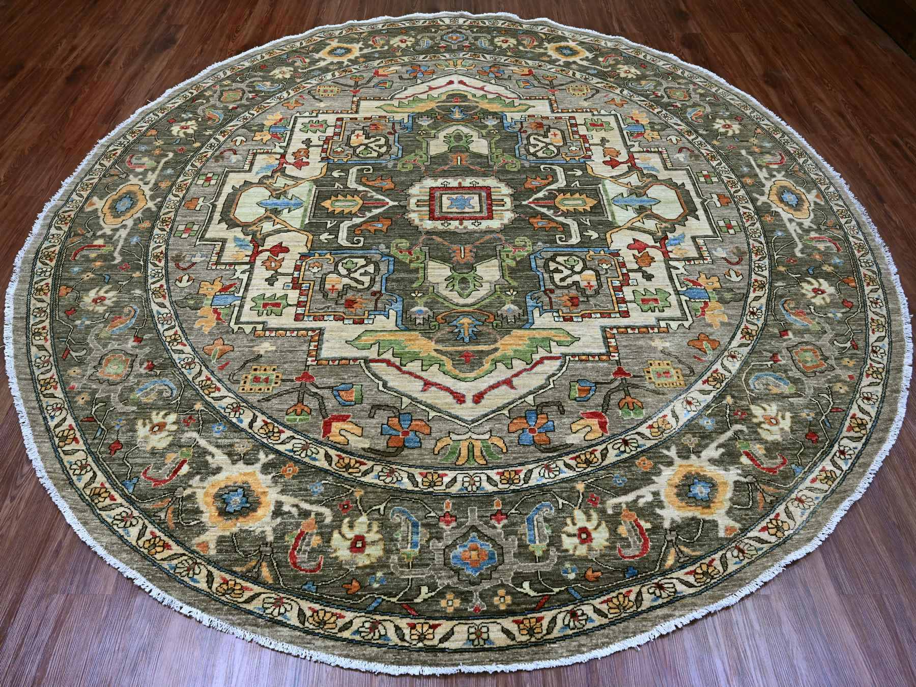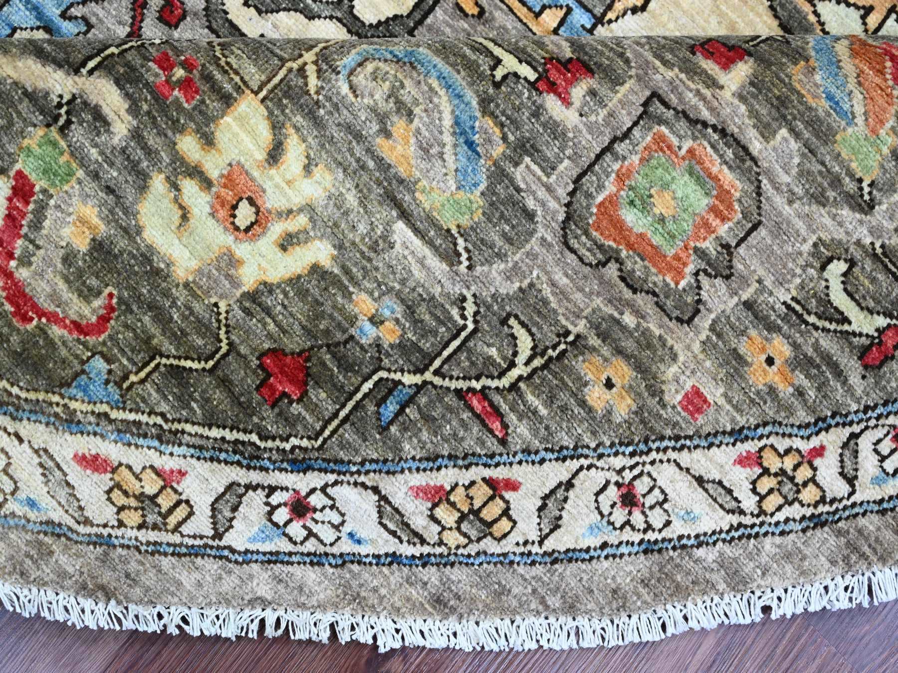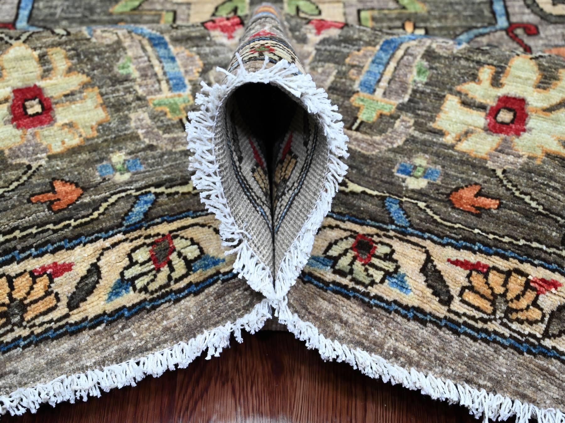 10’x10′ Sonic Gray, Peshawar with Heriz Design, Densely Woven, Aryana Collection, High Mountain Wool, Hand Knotted, Vegetable Dyes, Round, Oriental Rug HR89800