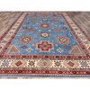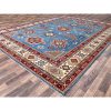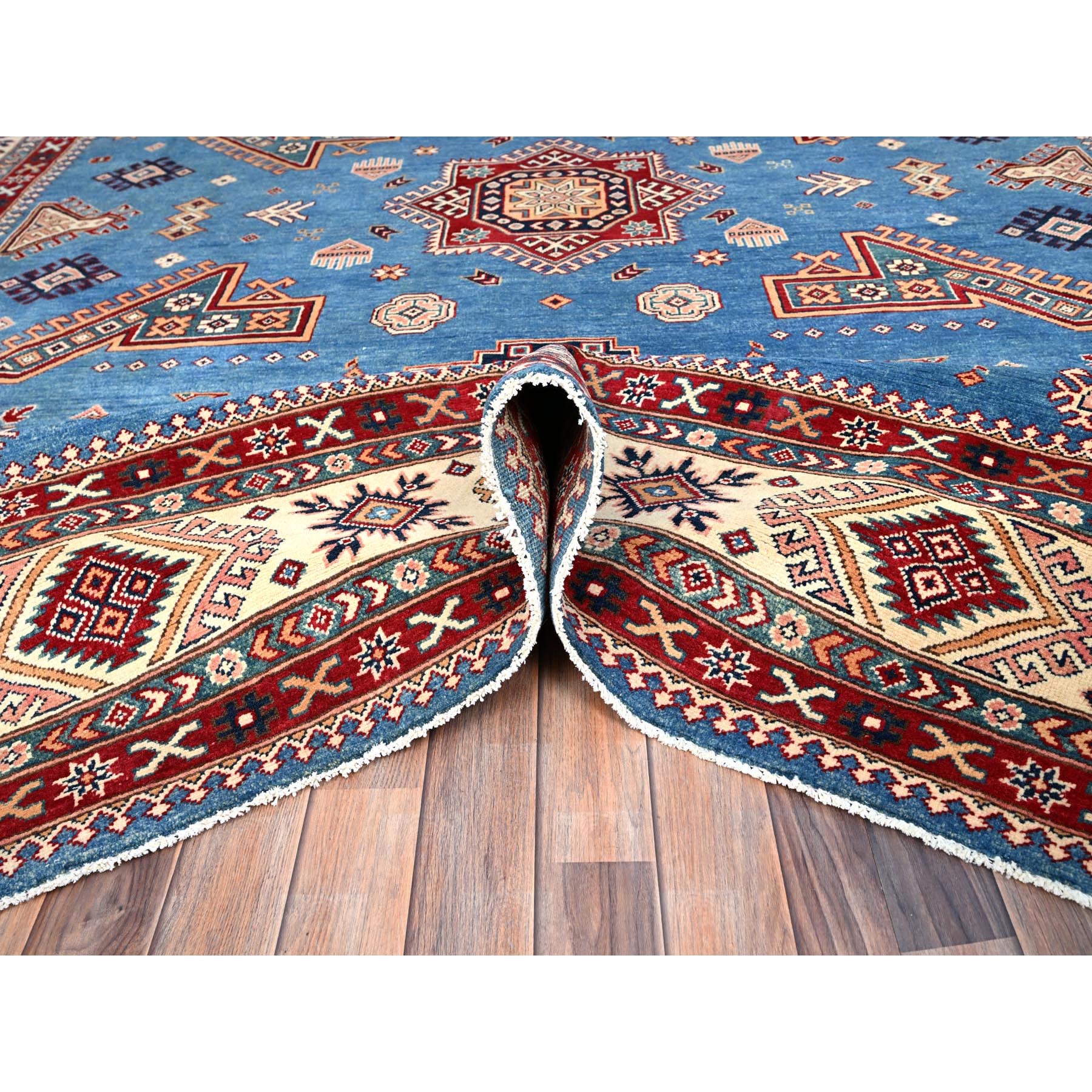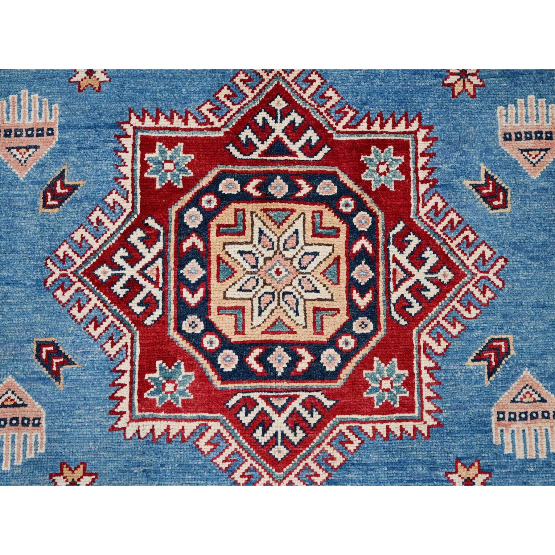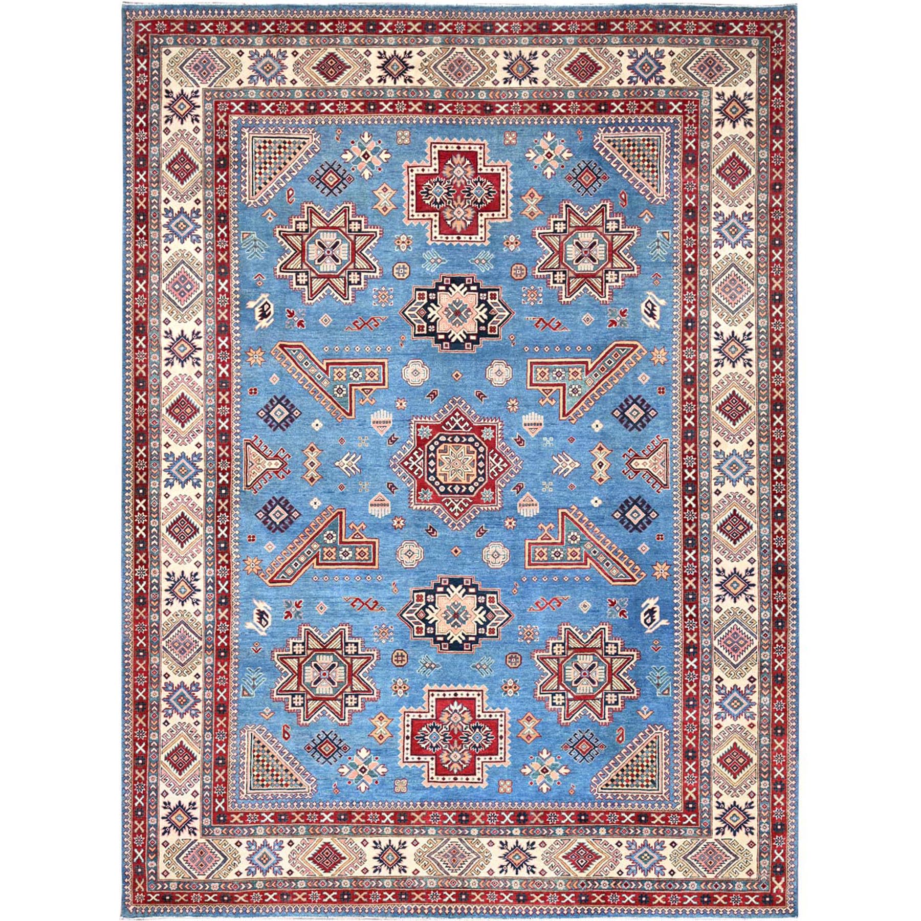 10’x13’8″ Crystal Teal Blue, Afghan Special Kazak with All Over Medallions, Natural Dyes, Hand Knotted, Dense Weave Natural Wool, Oriental Rug HR86475