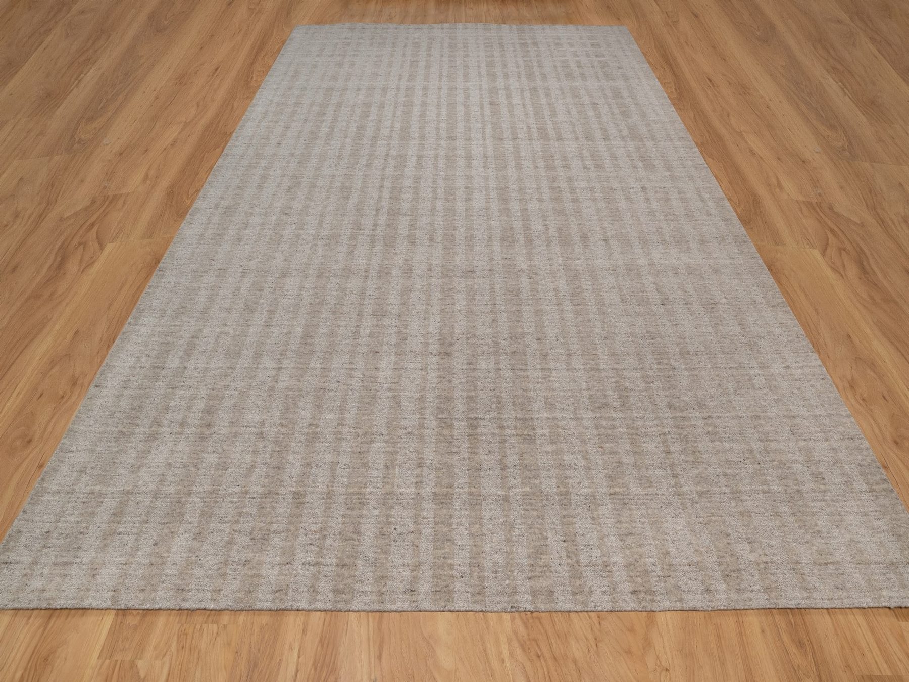 10’x14′ Light Brown, Vertical Stripes Design with Salt and Pepper Effect, Hand Loomed, Undyed Natural Wool, Oriental Rug HR91661