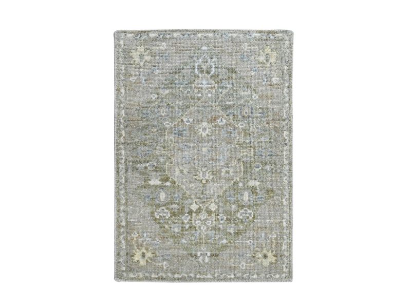 1’10″x2’10” Gray-Green, Hand Knotted, Oushak, Sample, Cropped Low, 100% Wool, Mat, Oriental Rug HR10426