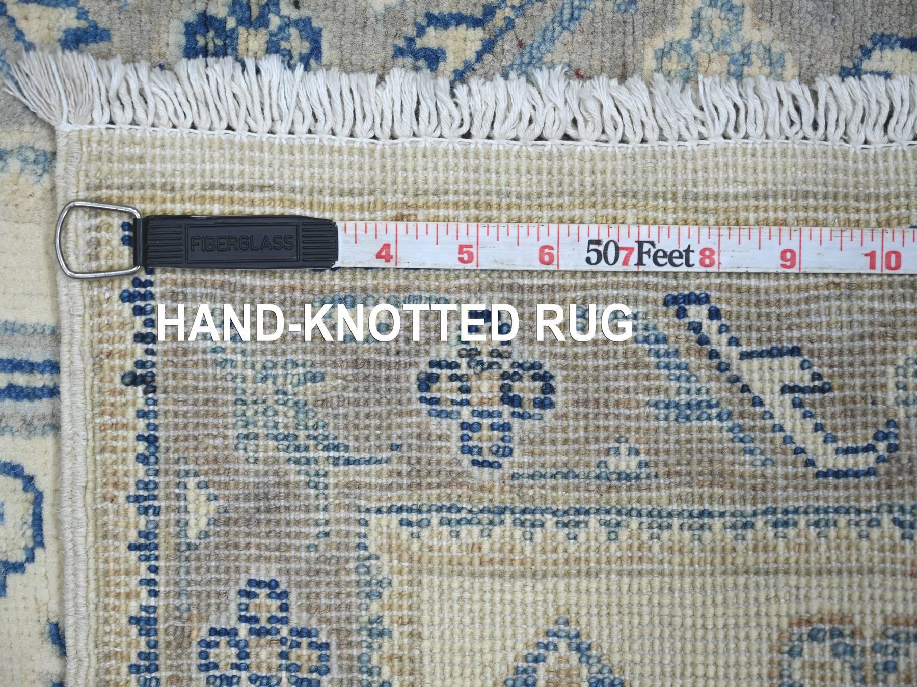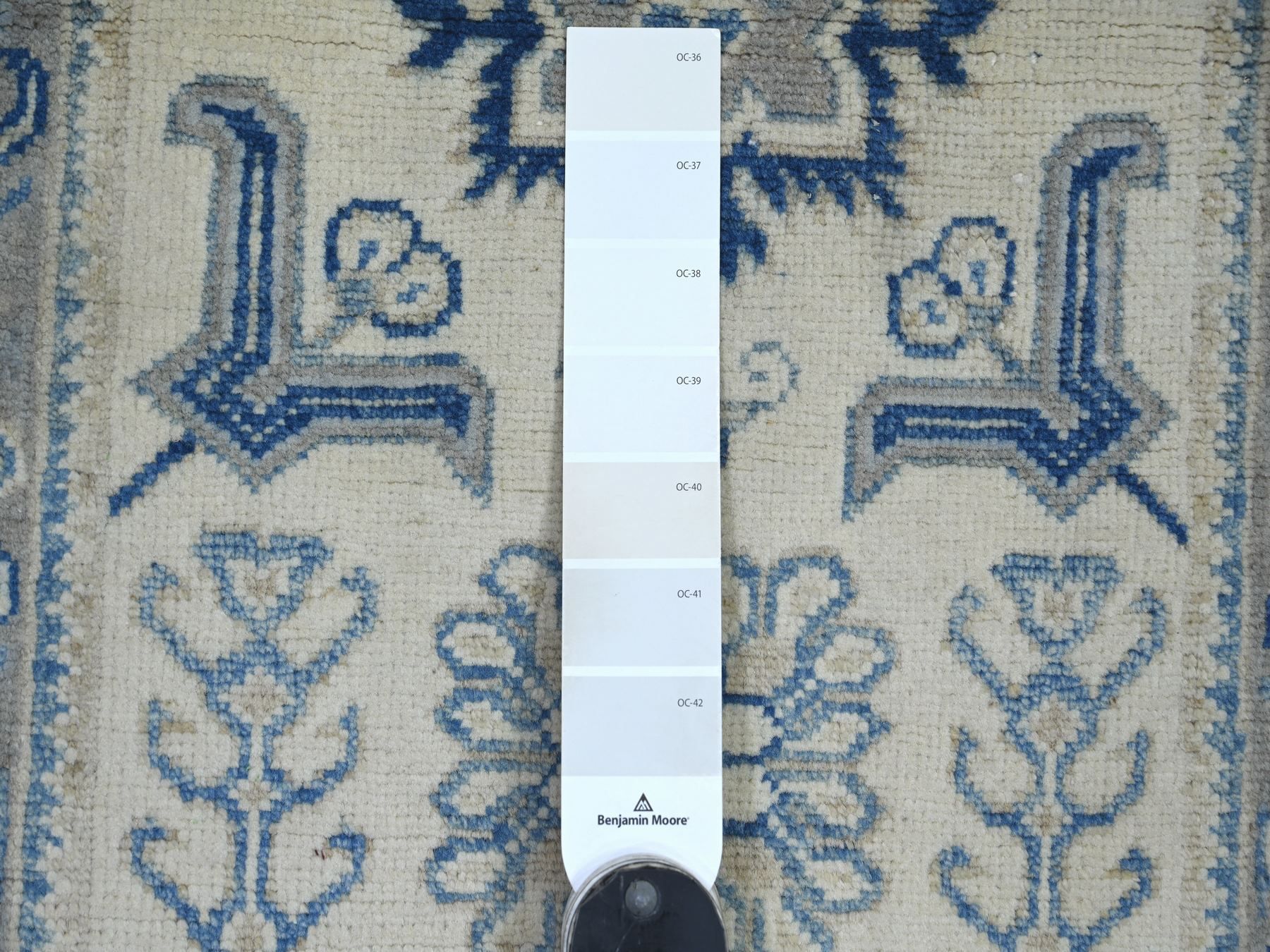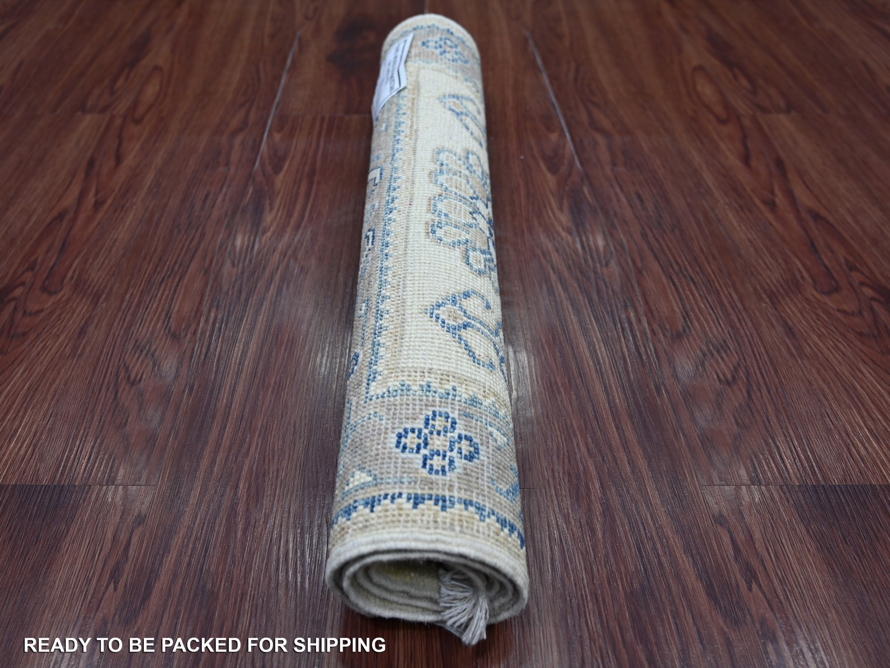 1’10″x2’9″ Alabaster White, Vintage Look Kazak with Tribal Design, Hand Knotted, 100% Wool, Natural Dyes, Mat, Sample, Oriental Rug HR22018