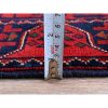 1’10″x4’10” Crimson Red, Afghan Khamyab with Geometric Pattern, Hand Knotted, Soft and Velvety Wool, Vegetable Dyes, Short and Narrow Runner, Oriental Rug HR749
