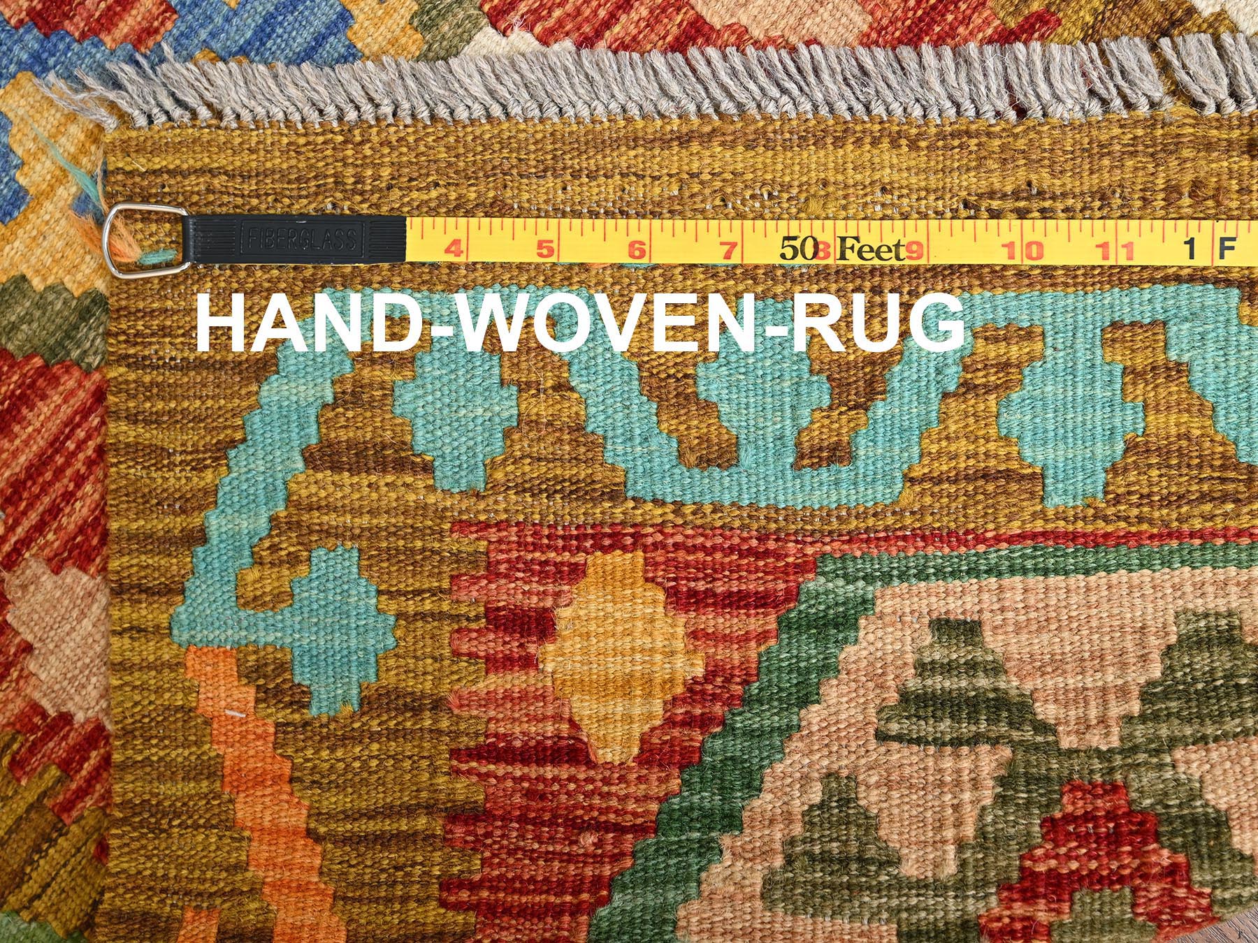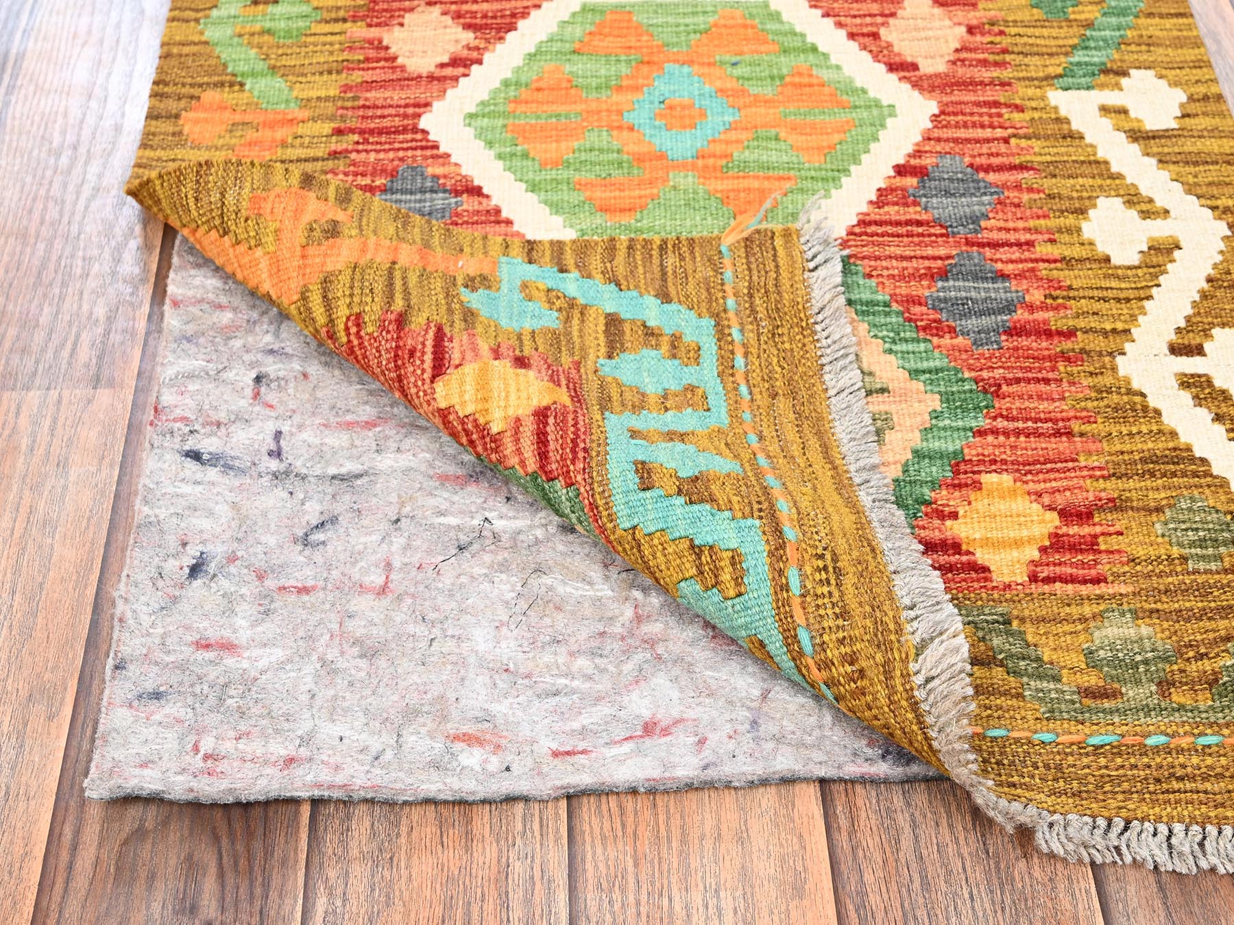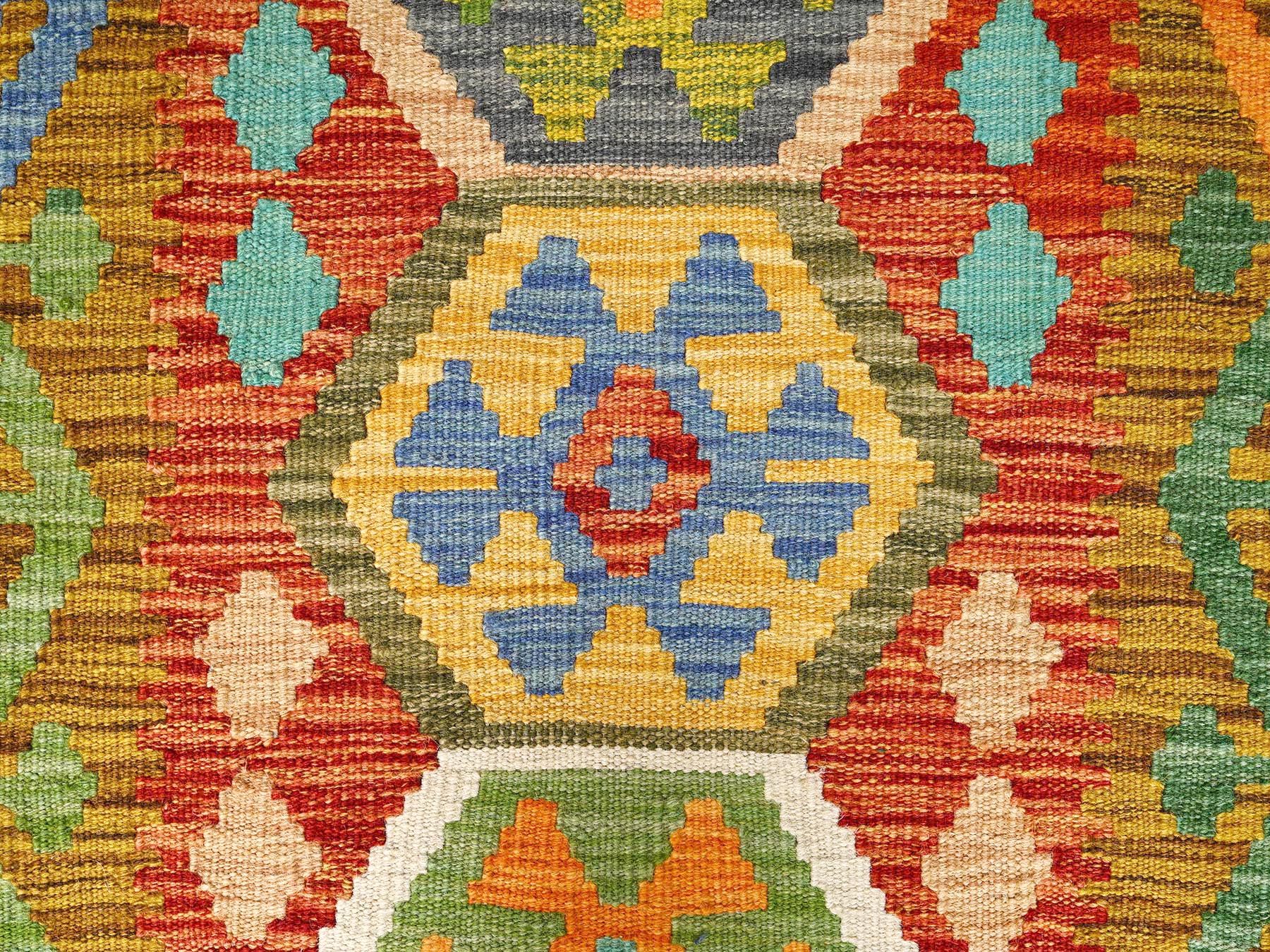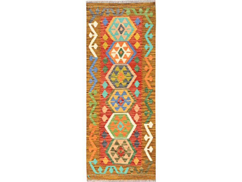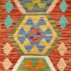 1’10″x5′ Colorful, 100% Wool, Afghan Kilim with Geometric Pattern, Flat Weave, Vegetable Dyes, Hand Woven, Reversible, Short & Narrow Runner, Oriental Rug HR1934