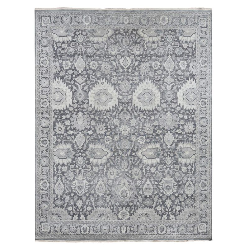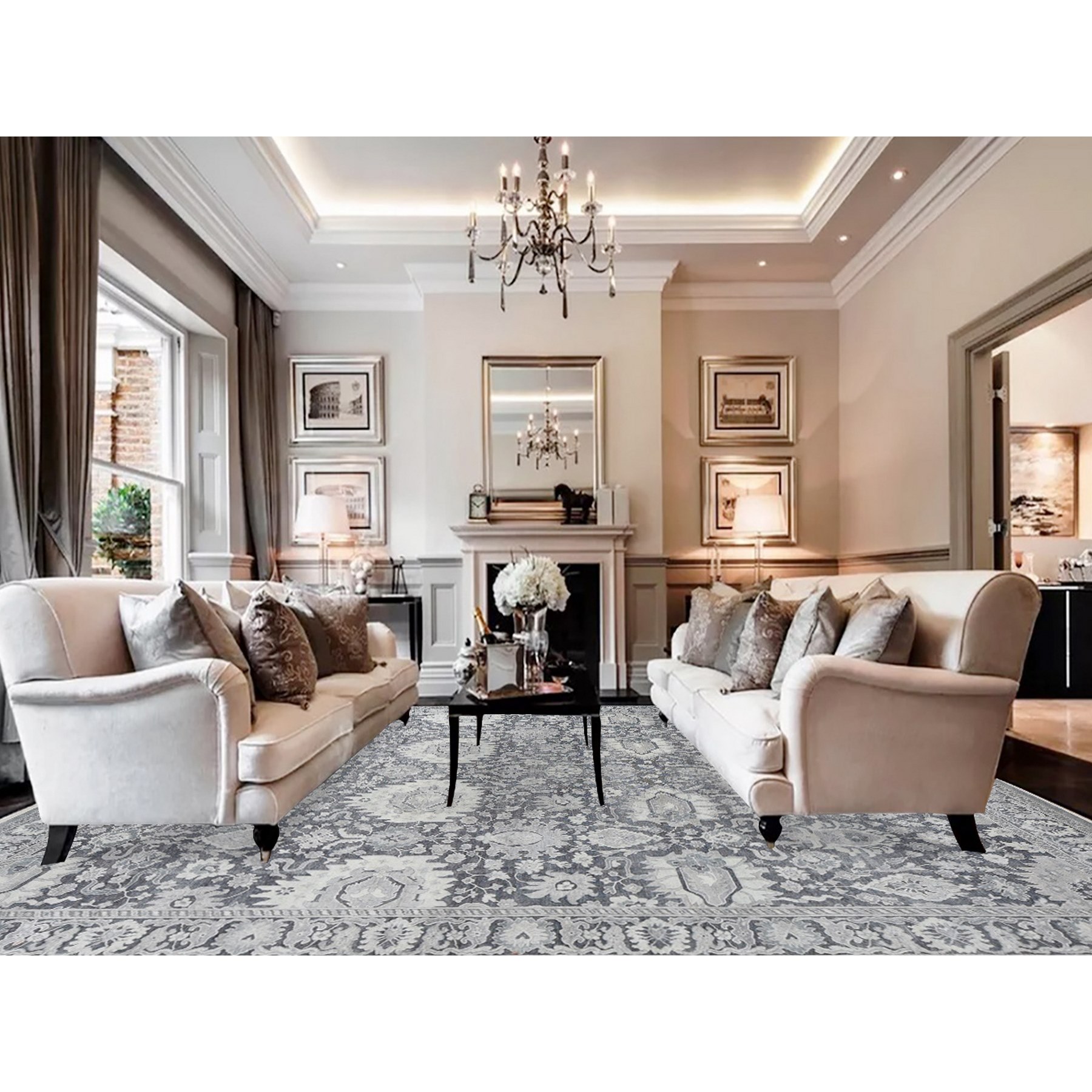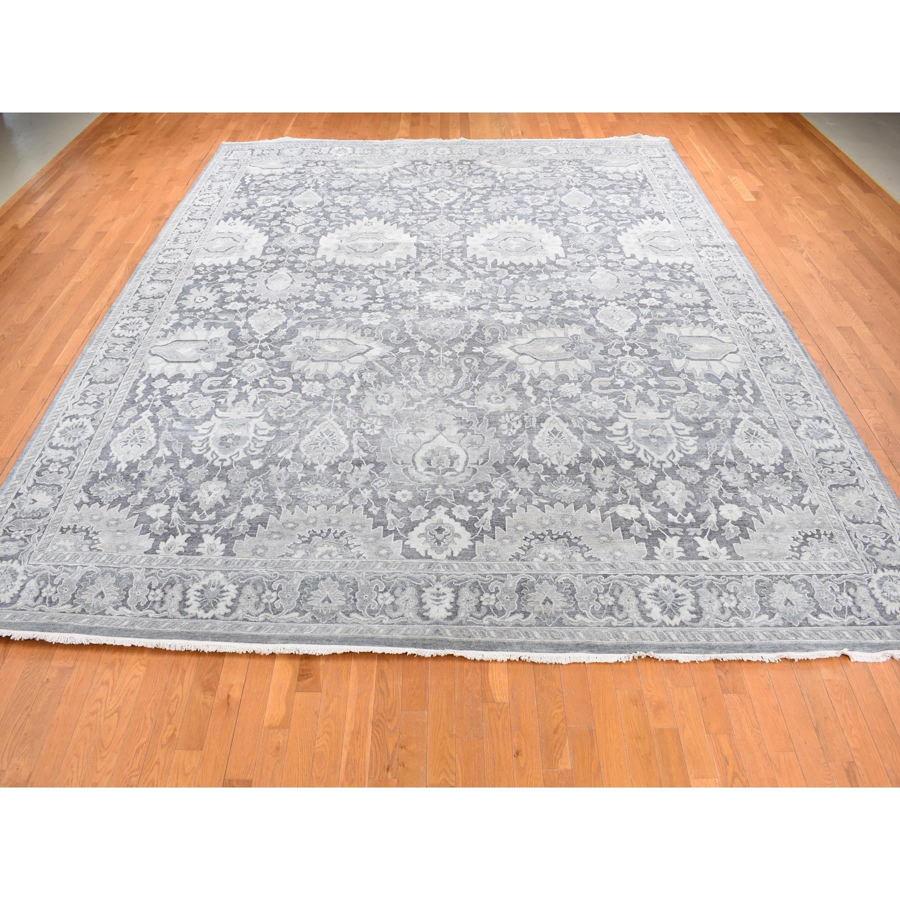 11’10″x14’10” Anchor Gray, Hand Knotted, Oushak Influence, Silk with Textured Wool, Oversized, Oriental Rug HR87653