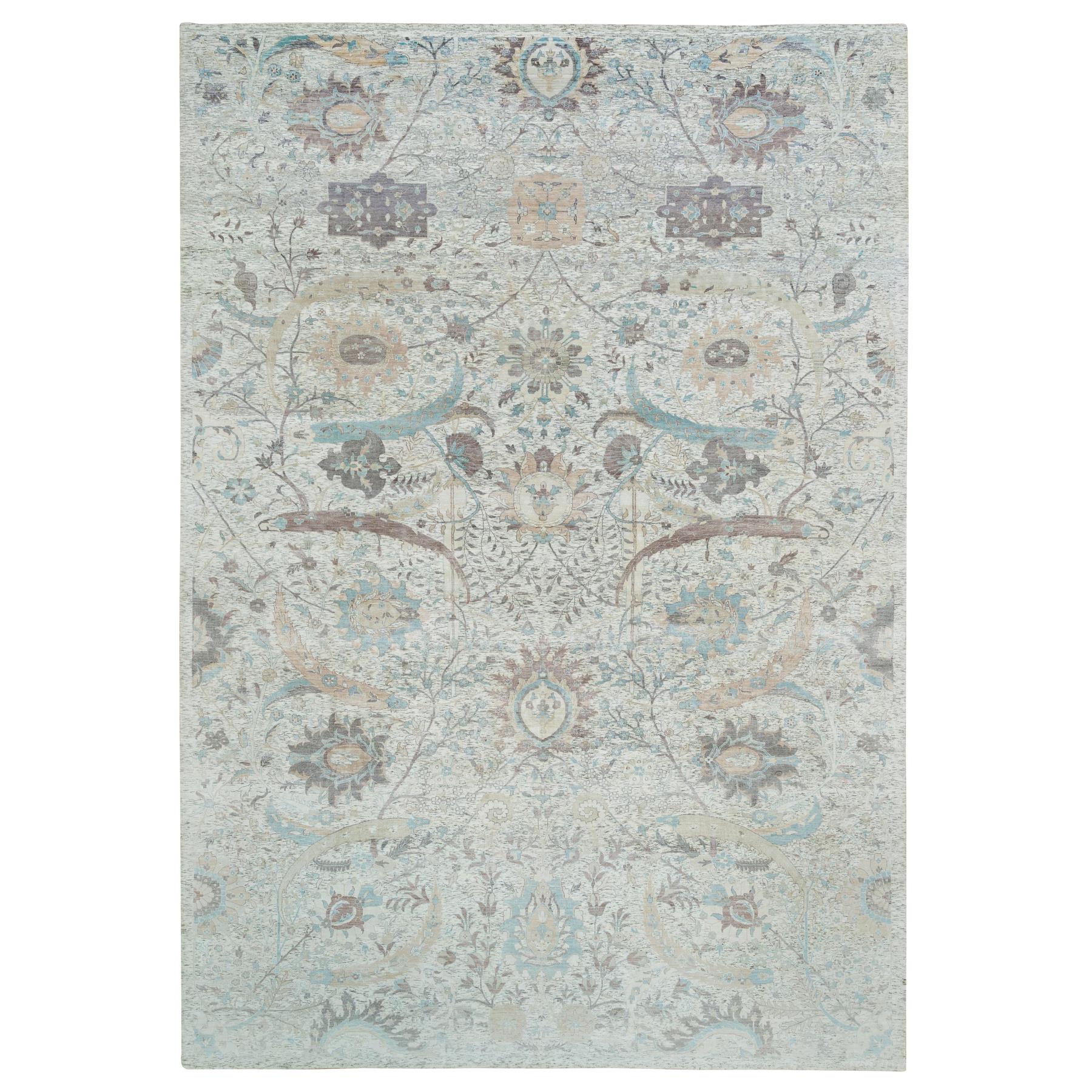 12’1″x18′ Ivory, Sickle Leaf Design Soft Pile, Silk With Textured Wool Hand Knotted, Oversized Oriental Rug HR65178