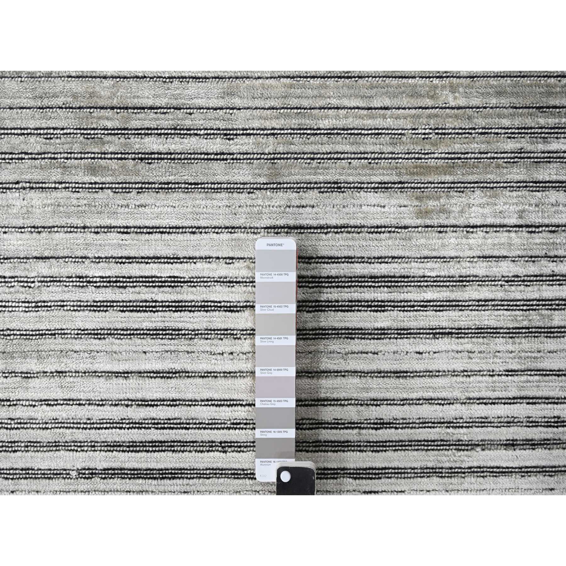 12’x18’1″ Taupe with Stout Black, Modern Textured and Variegated Line Design, Hand Loomed, 100% wool, Oversized Oriental Rug HR84580