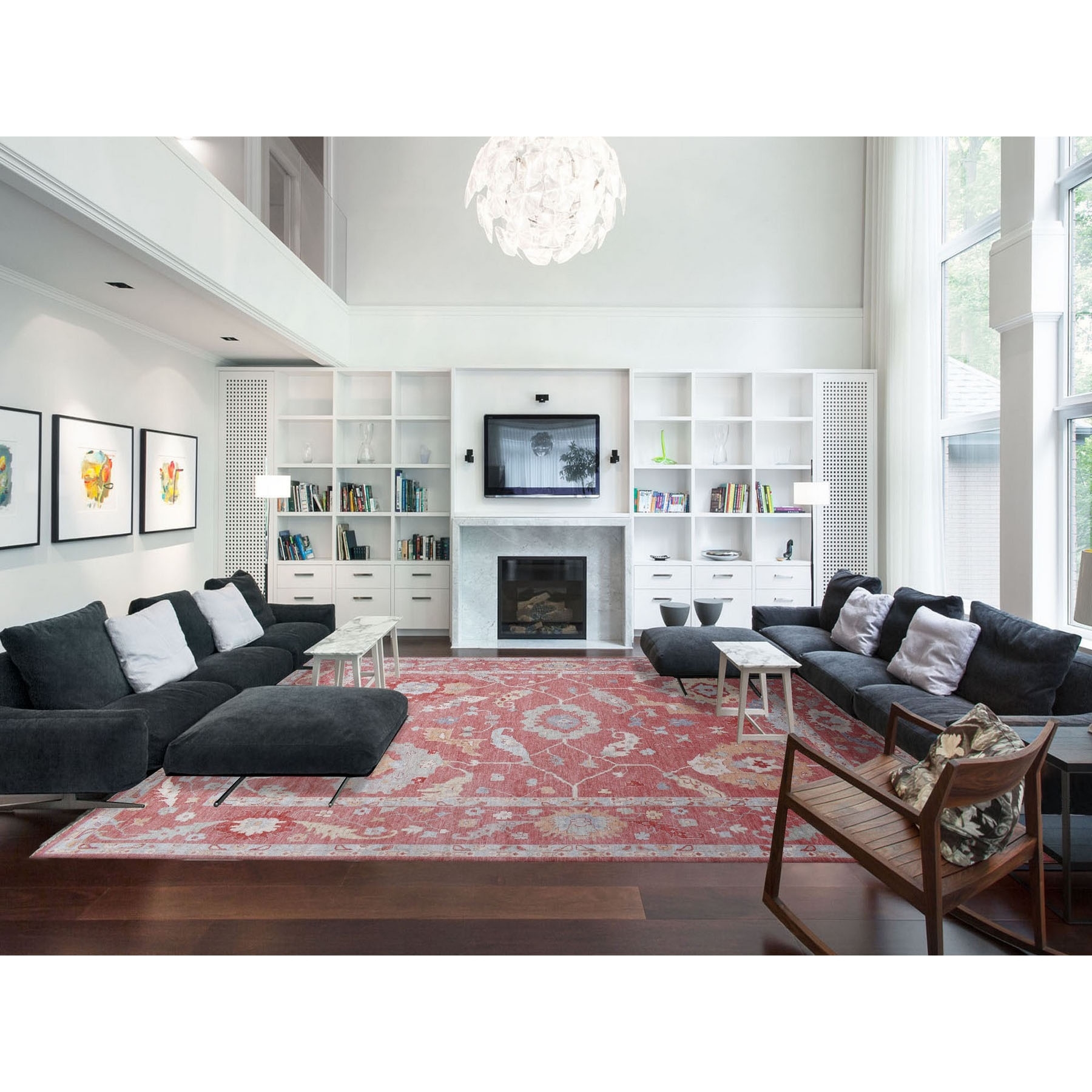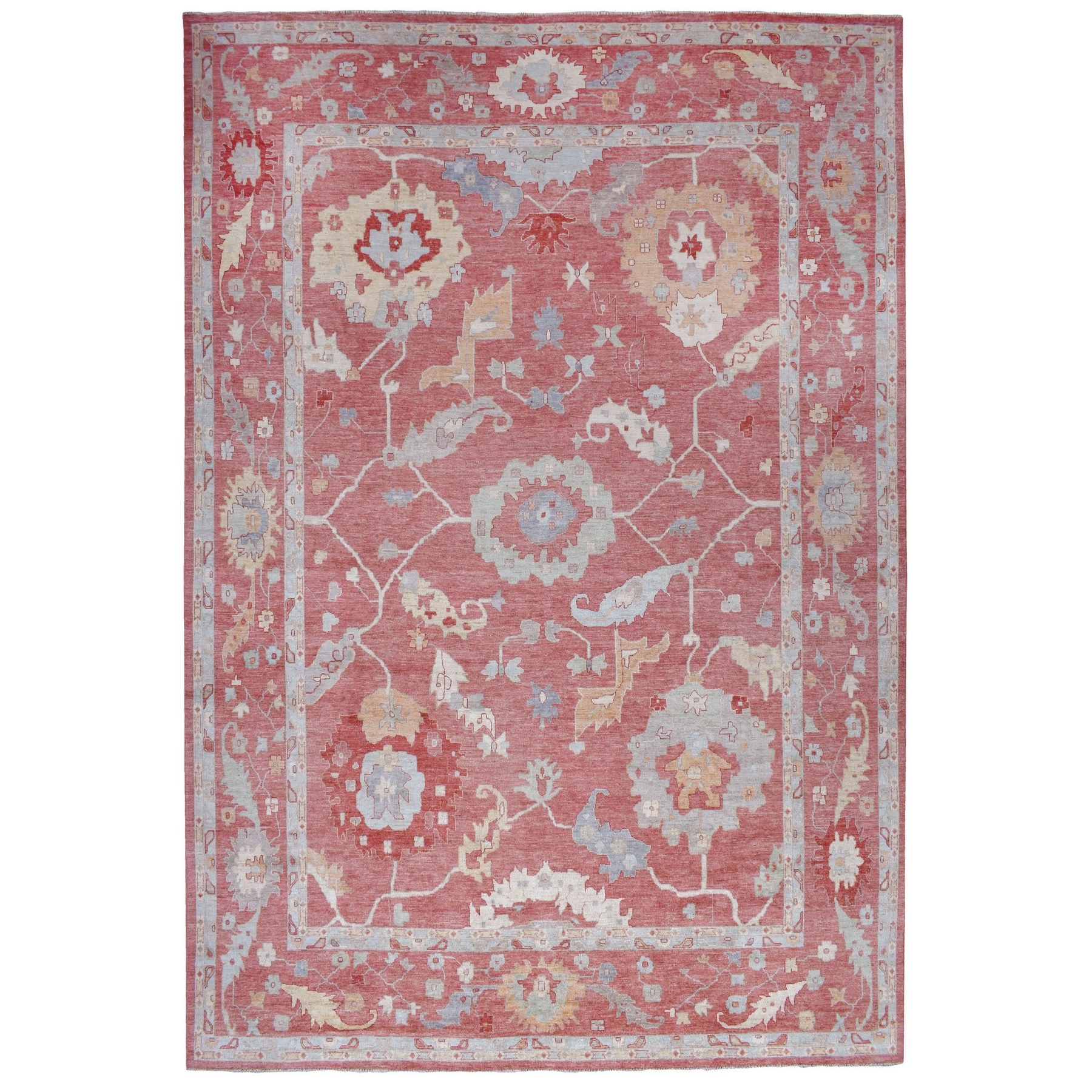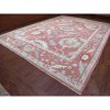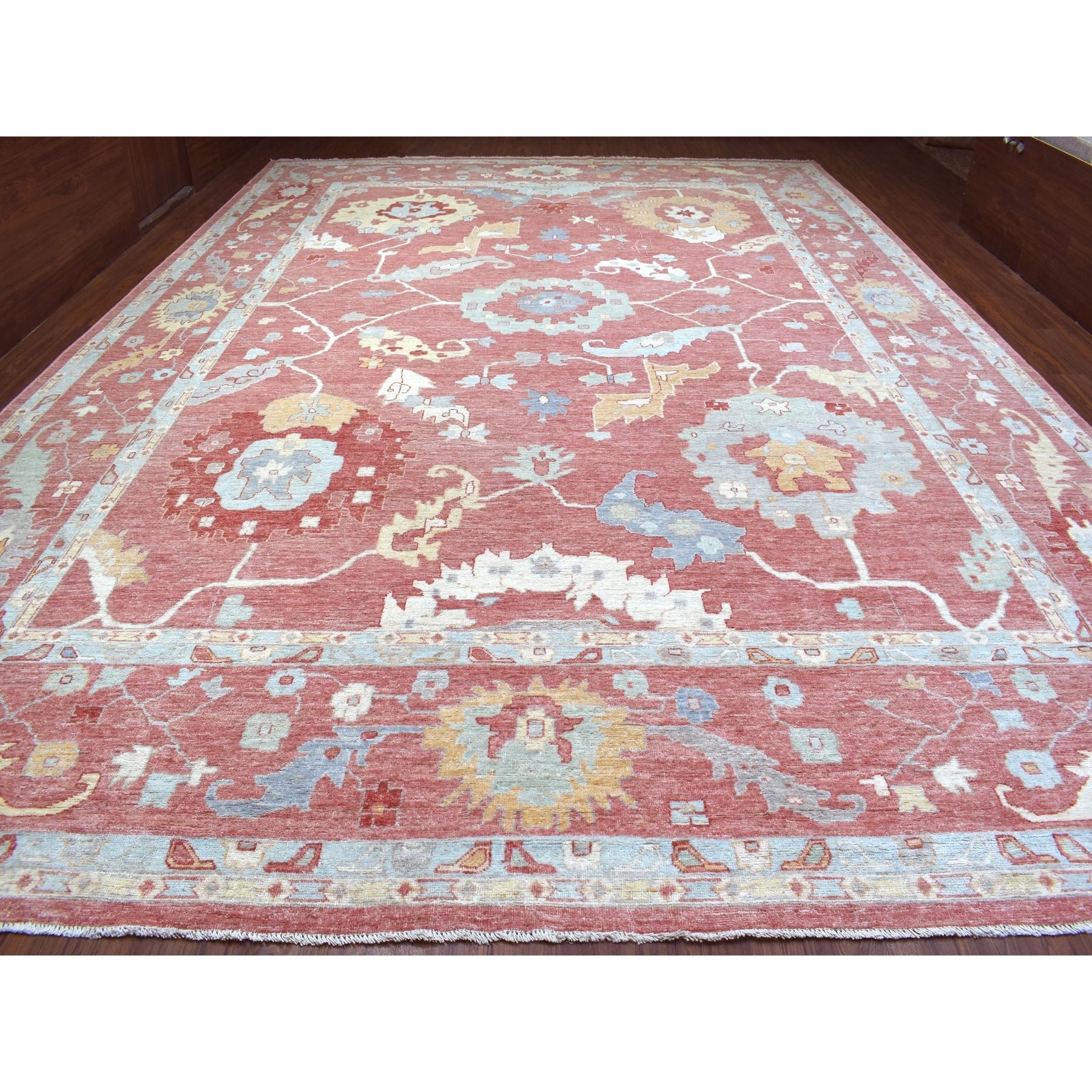 13’9″x19′ Angora Oushak with Colorful Motifs Soft Afghan Wool Chestnut Pink Hand Knotted Oriental Oversized Rug HR68347