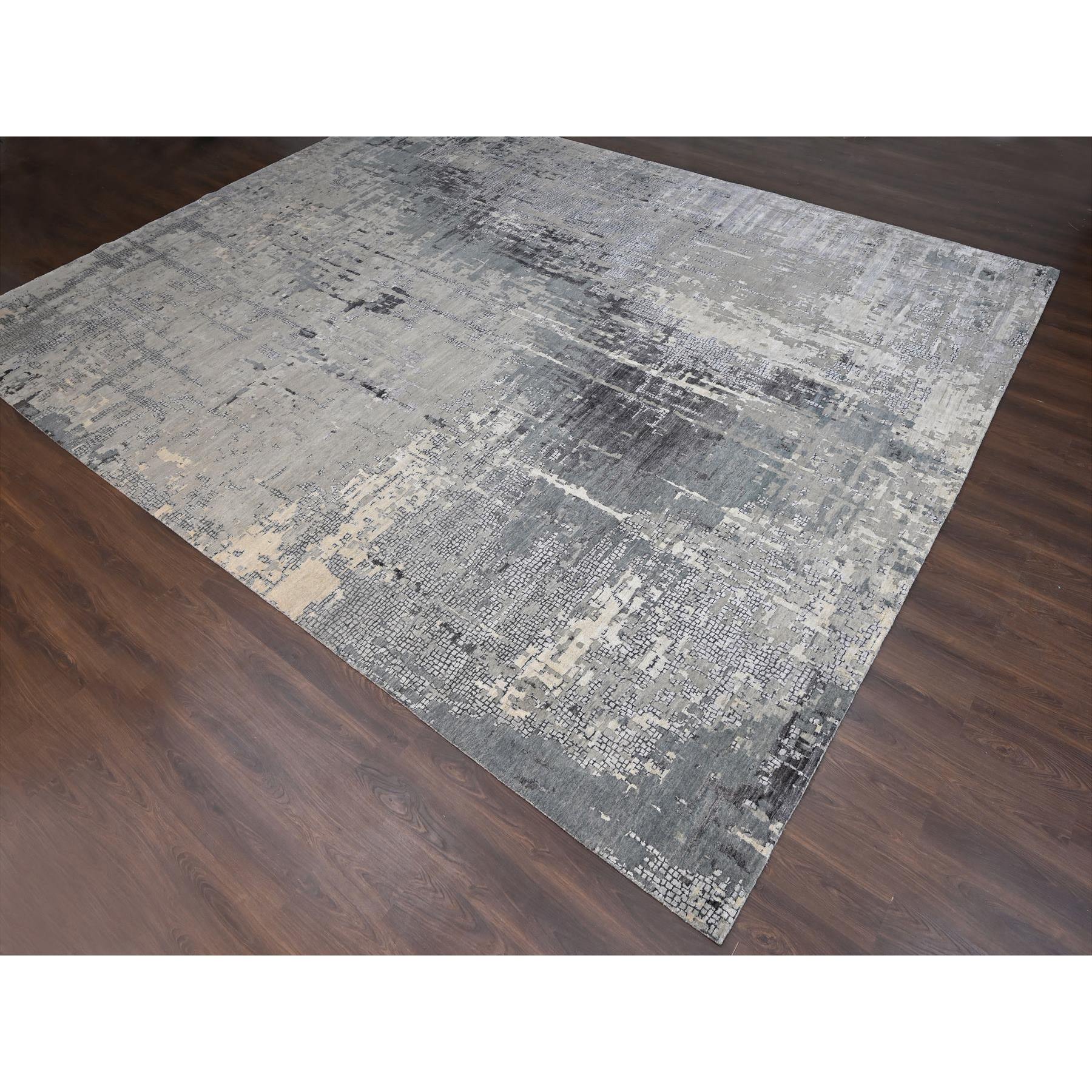 14’x18′ Taupe, Abstract with Mosaic Design Dense Weave, Wool and Silk Hand Knotted, Oversized Persian Knot Oriental Rug HR84031