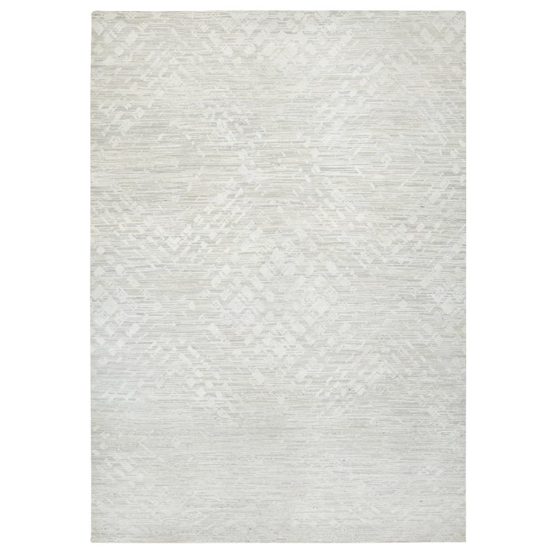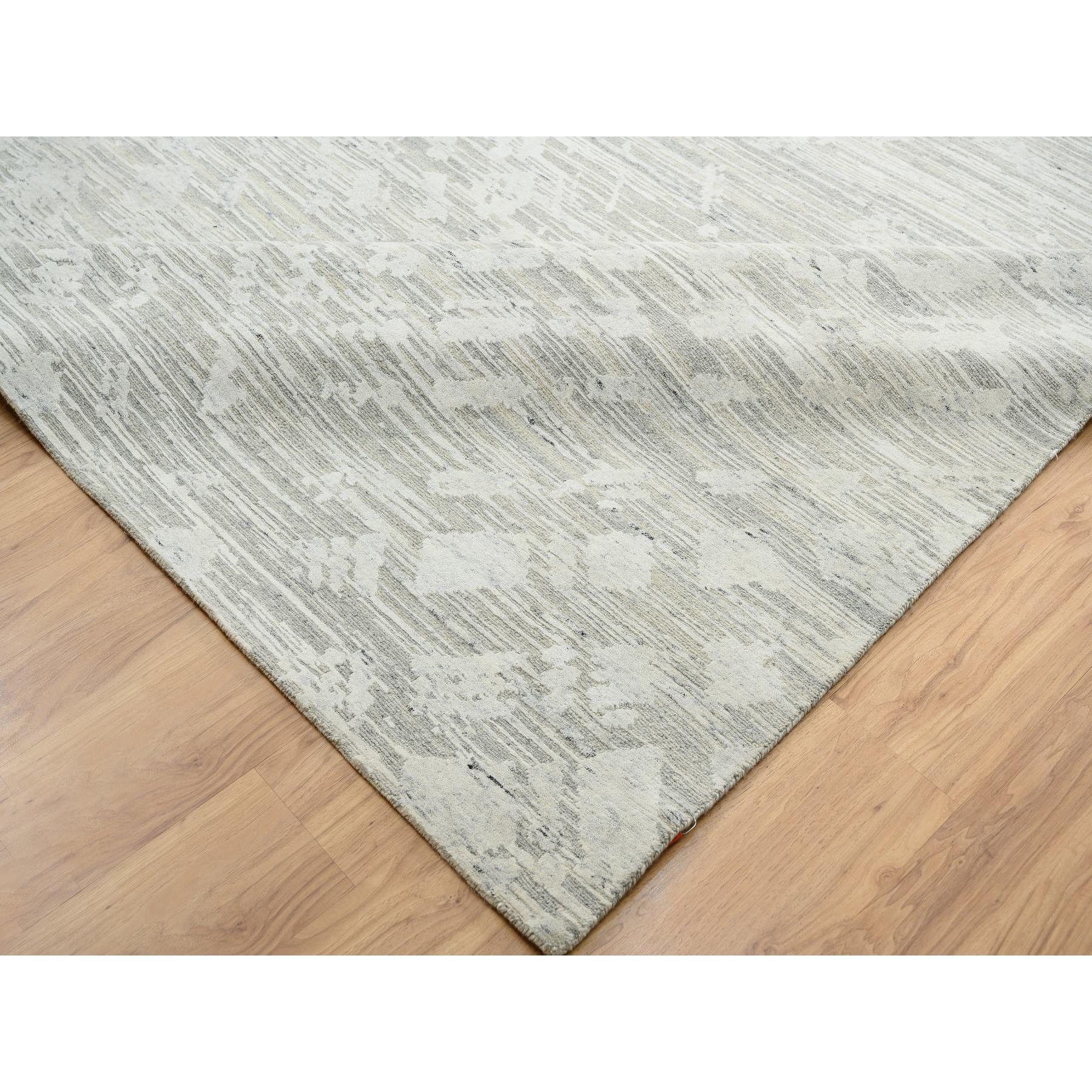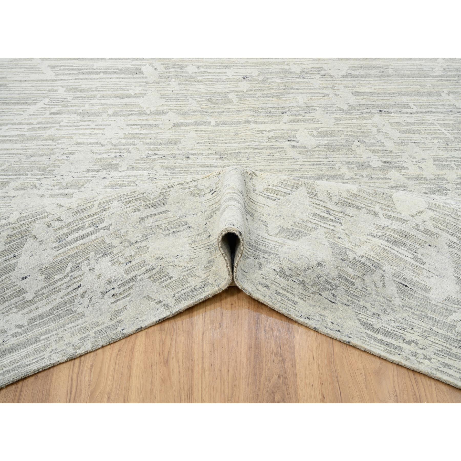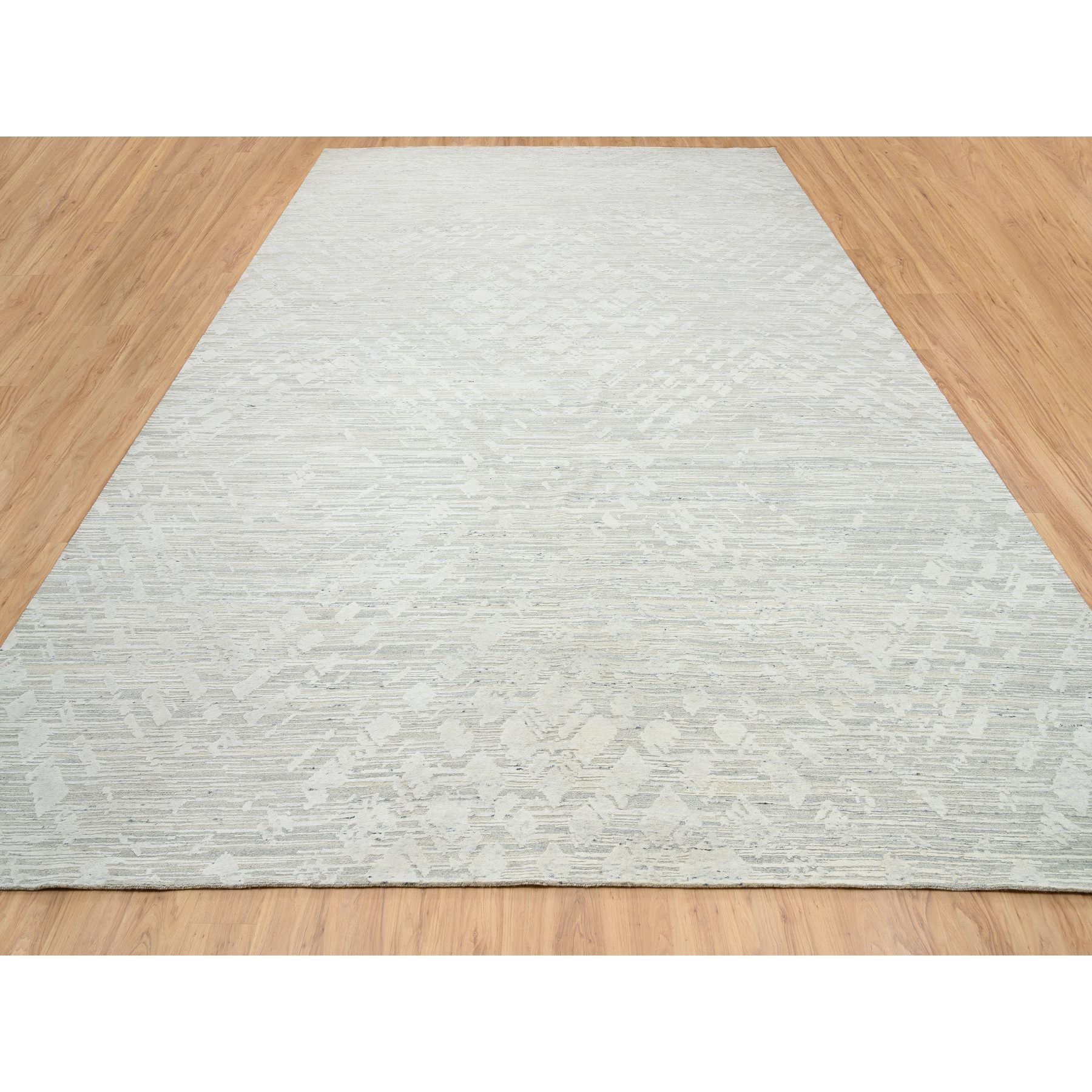 14’x19’9″ Light Gray, Hand Spun Undyed Natural Wool, Hand Knotted, Modern Design, Oversized Oriental Rug HR64712