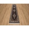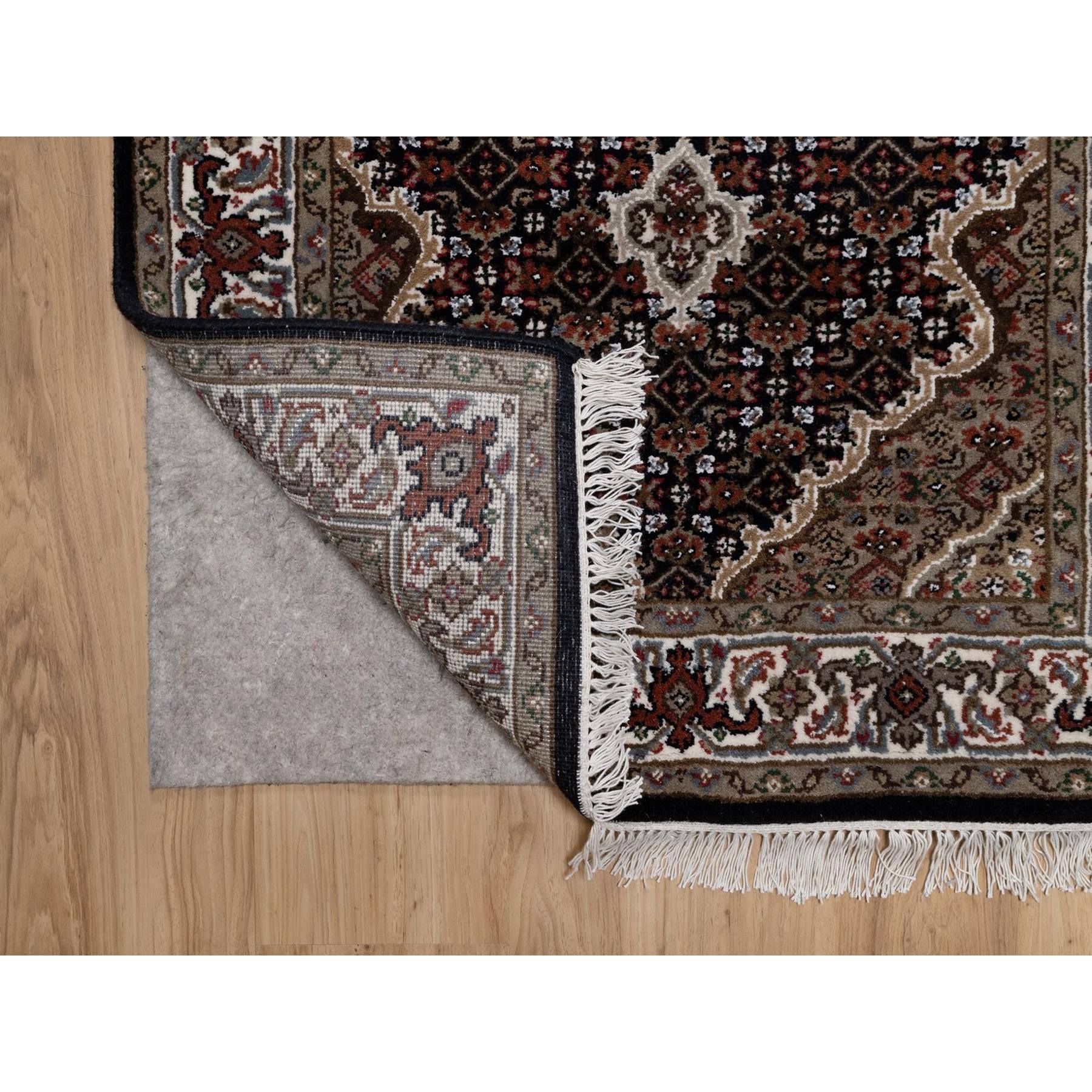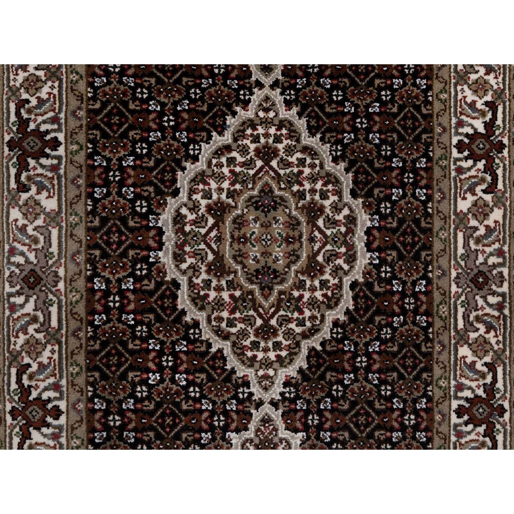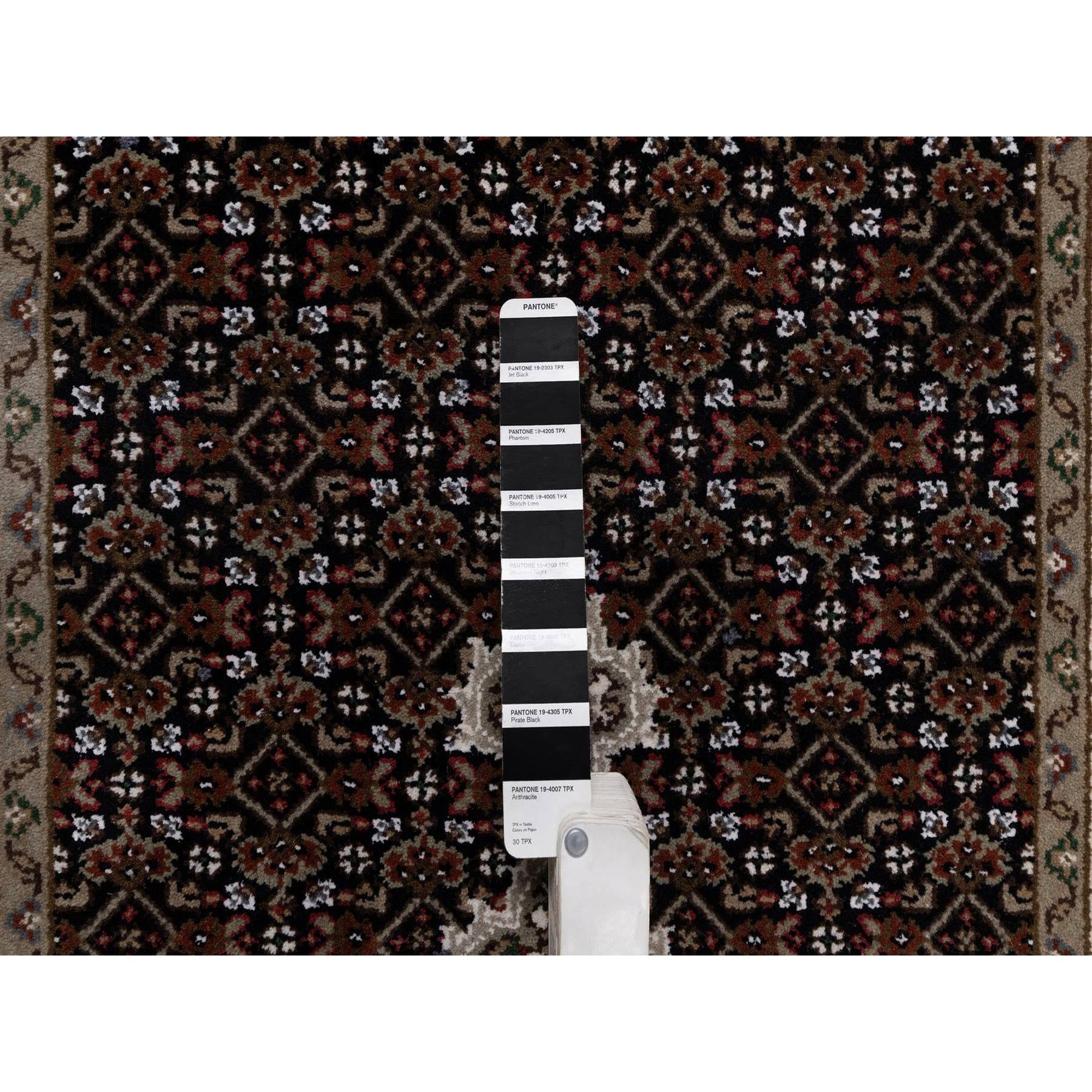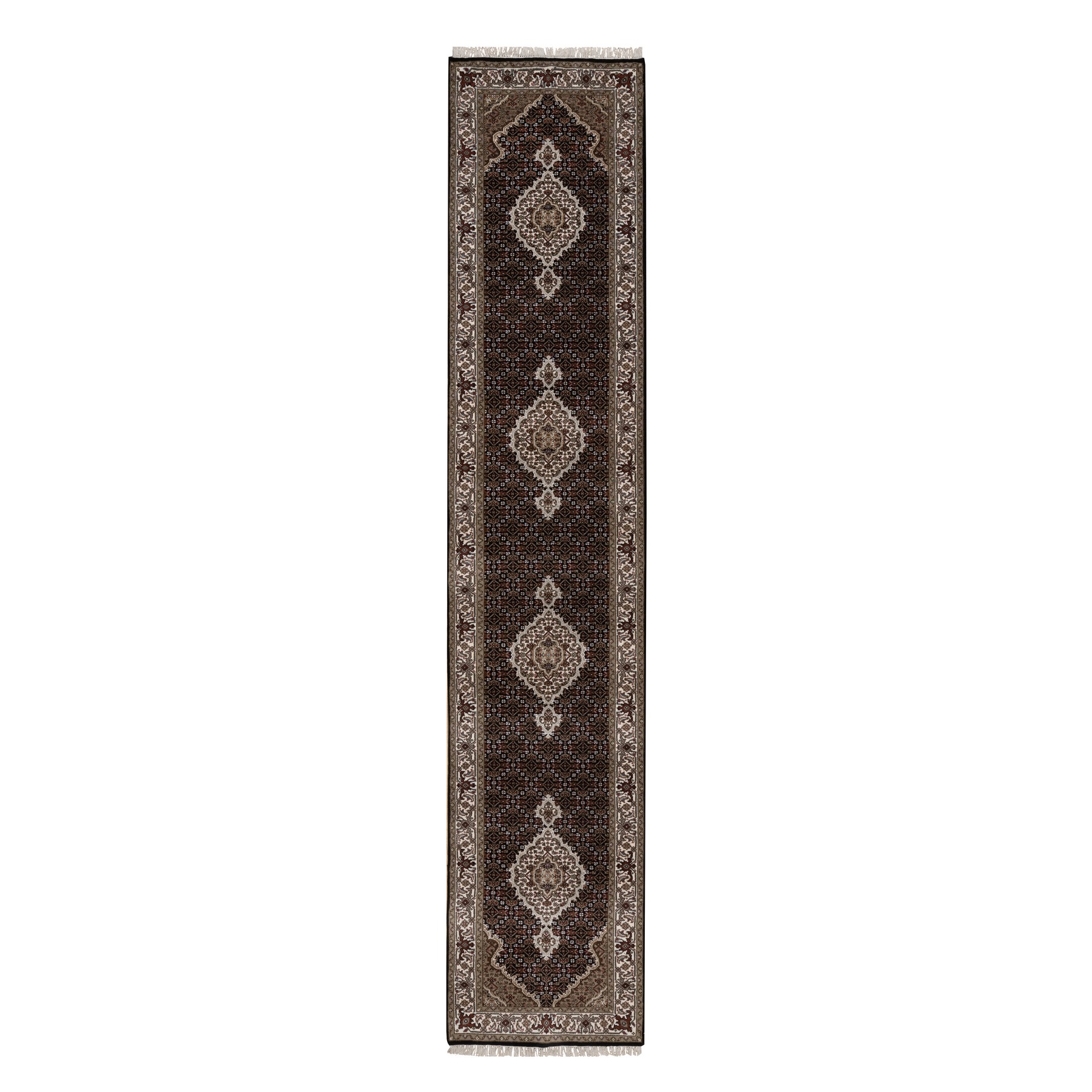 2’10″x14′ Jet Black, 175 KPSI, Tabriz Mahi with Fish Medallion Design, 100% Wool, Hand Knotted, Runner, Oriental Rug HR91639