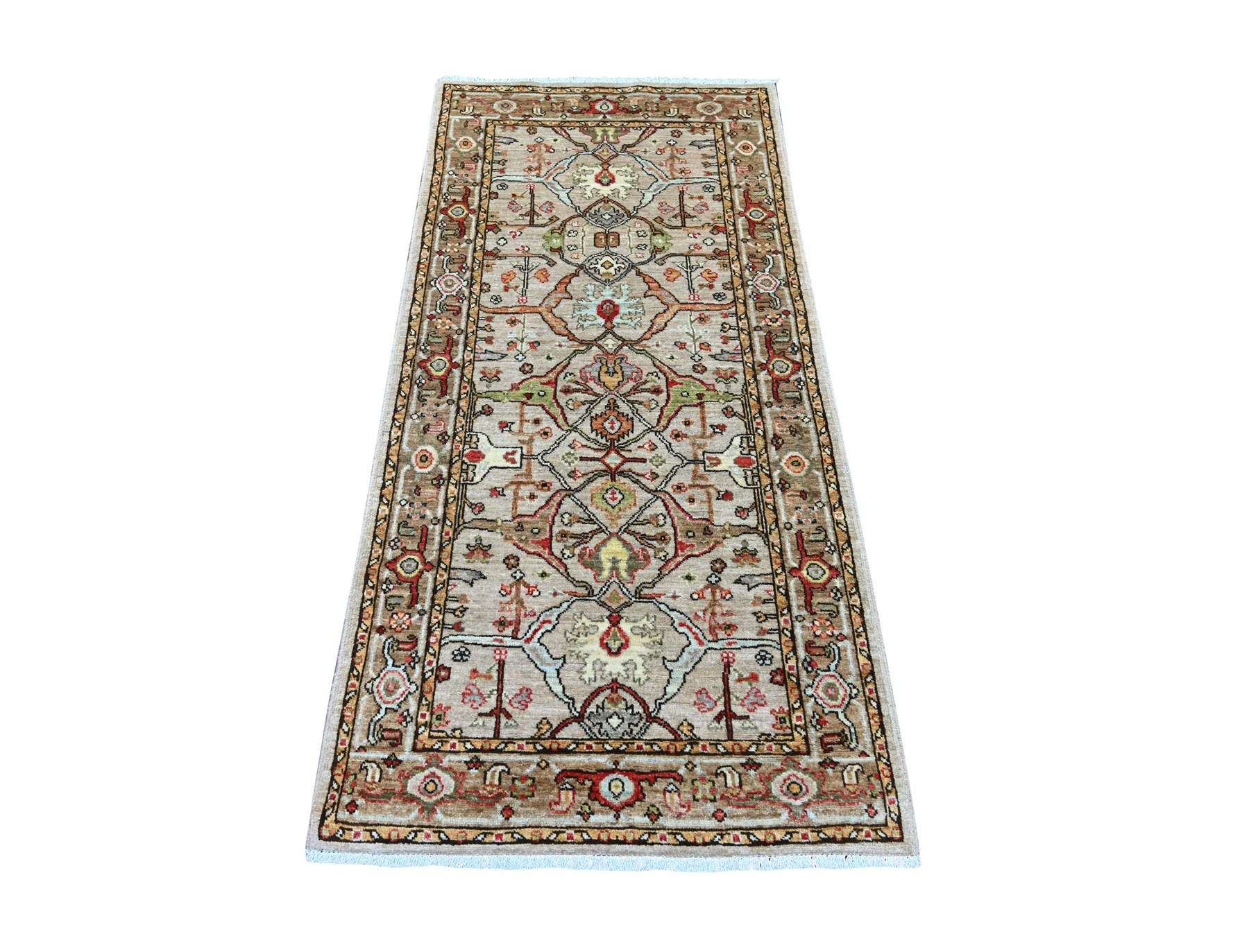 2’10″x5’10” Khaki Brown, Peshawar with Bijar Garus Design, Hand Knotted, High Mountain Wool, Aryana Grade, Soft Pile, Vegetable Dyes, Densely Woven, Runner, Oriental Rug HR21463