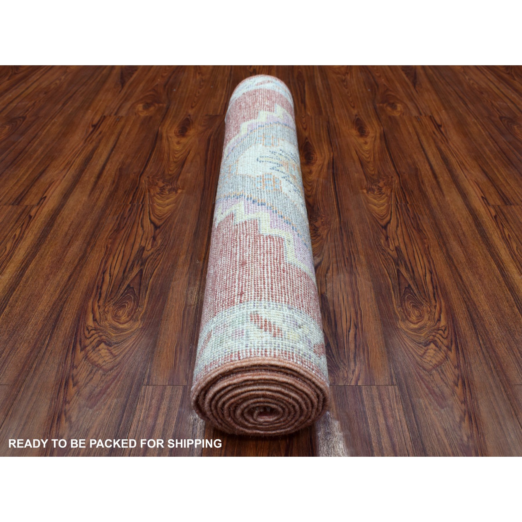2’10″x9’6″ Coral Red Afghan Angora Oushak with Geometric Medallions Design Soft Wool Hand Knotted Oriental Runner Rug HR68985