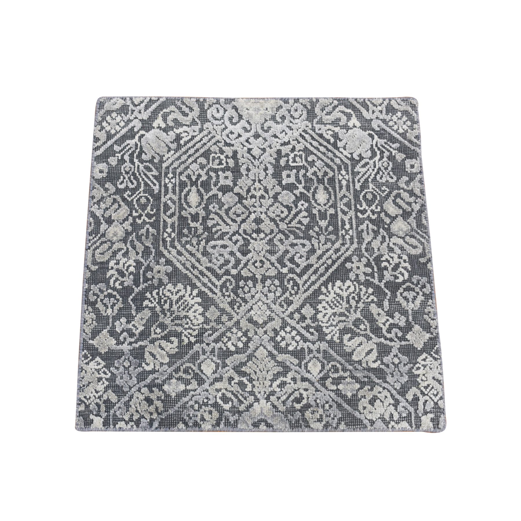 2’1″x2’1″ Charcoal Gray, Silk with Textured Wool, Tone on Tone Design, Hand Knotted, Sample Fragment, Oriental Rug HR80400