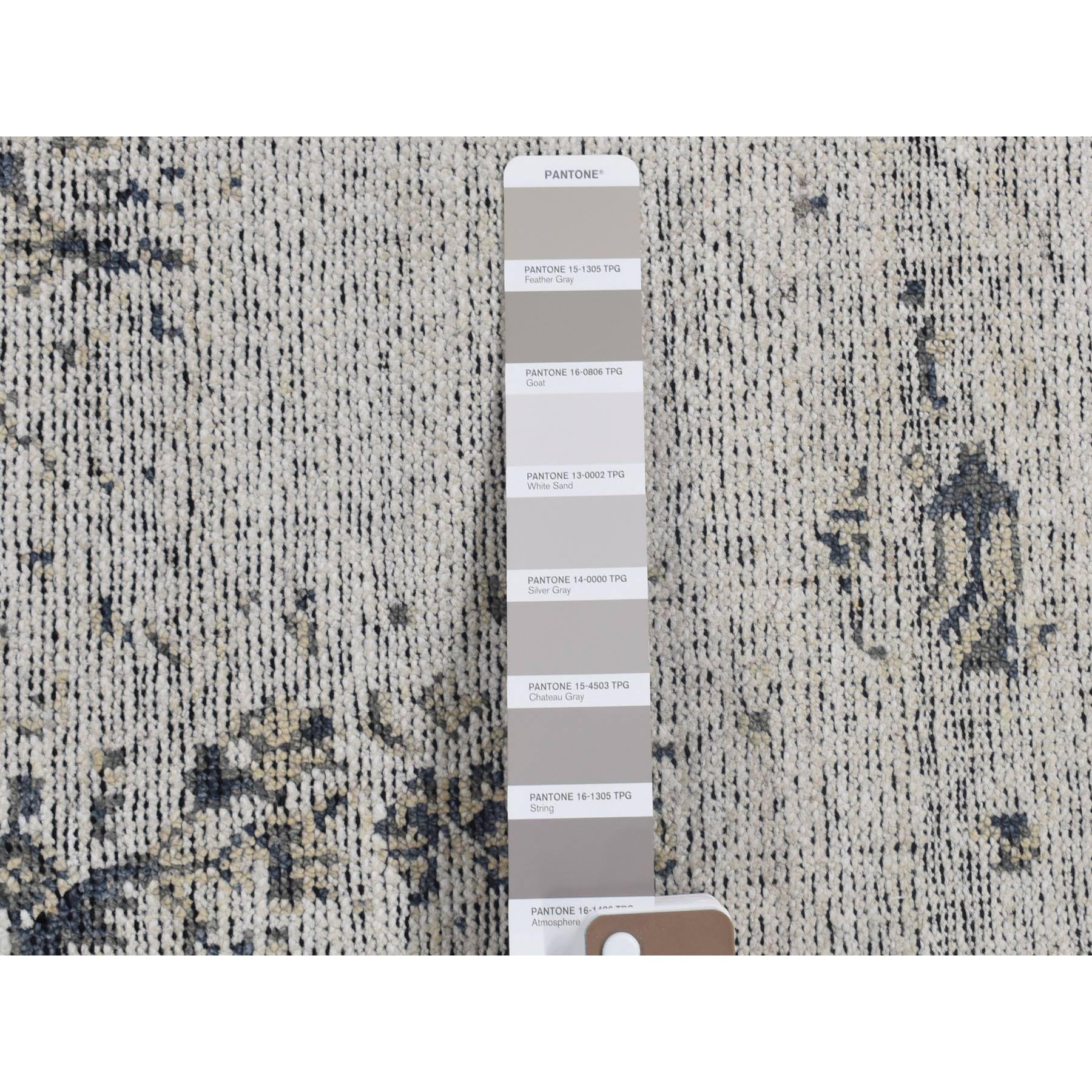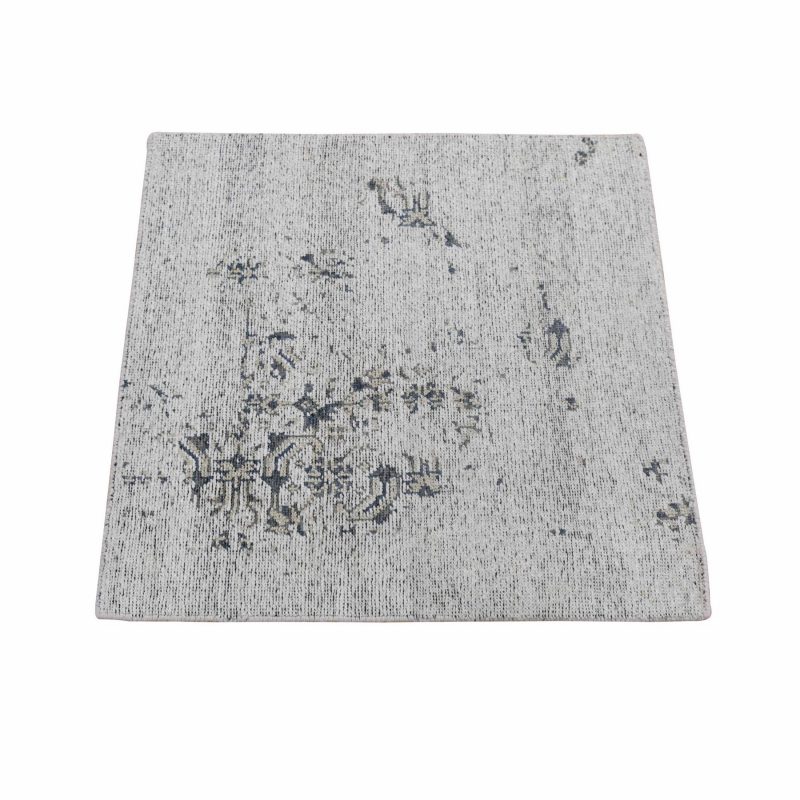 2’2″x2’2″ Ivory, Modern Design, Hand Loomed, Hi and Lo, 100% Silk, Zero Pile, Sample Fragment, Mat Oriental Rug HR80364