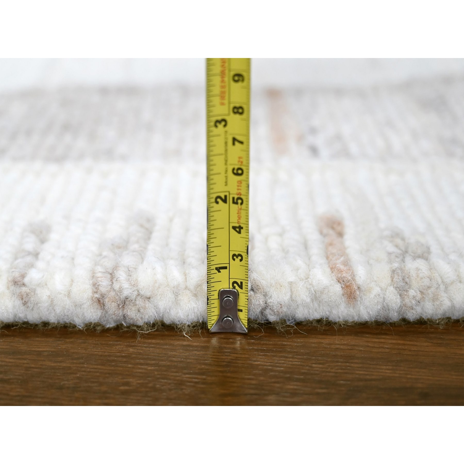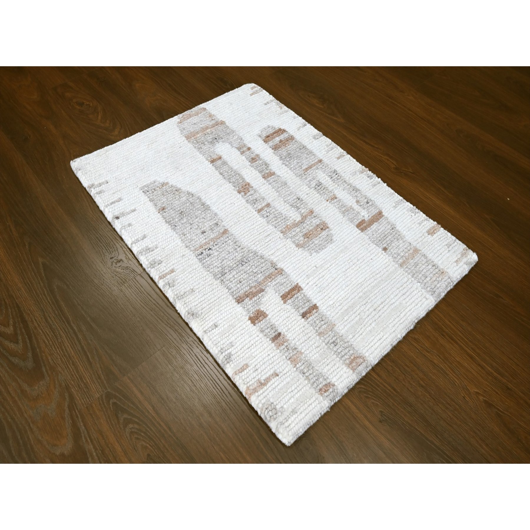 2’2″x3′ Bone White, Minimalist Swedish Design, Flat Weave with Pile, Hand Knotted, Organic Wool, Mat, Sample, Oriental Rug HR10342