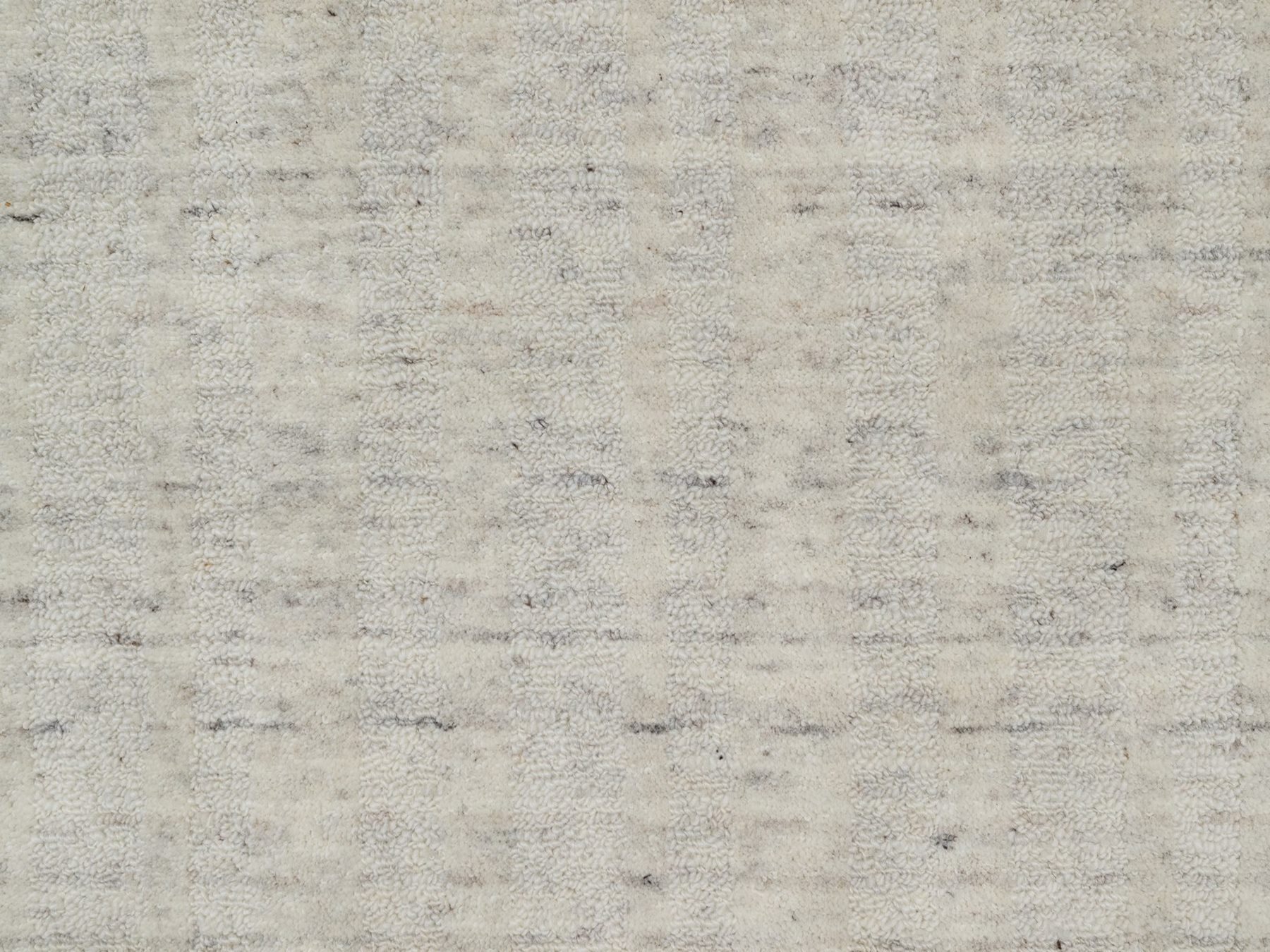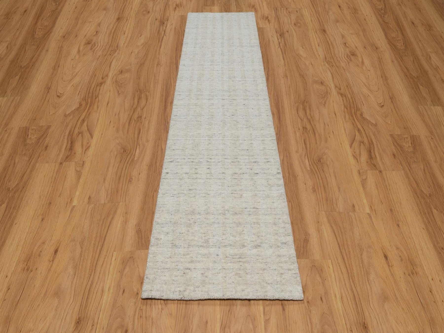 2’5″x10′ Chiffon White, Hand Loomed, Salt and Pepper Effect with Vertical Stripes Design, Undyed Natural Wool, Runner, Oriental Rug HR91670