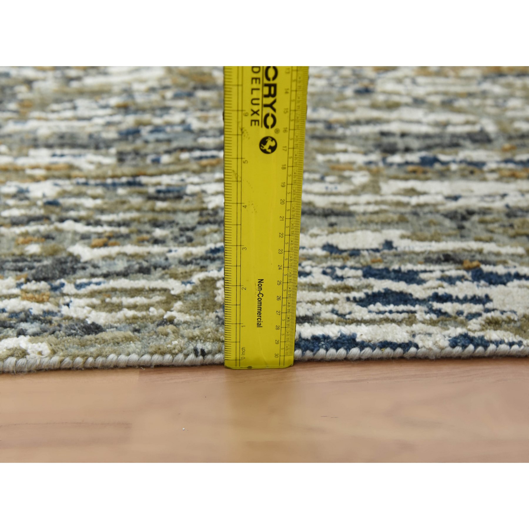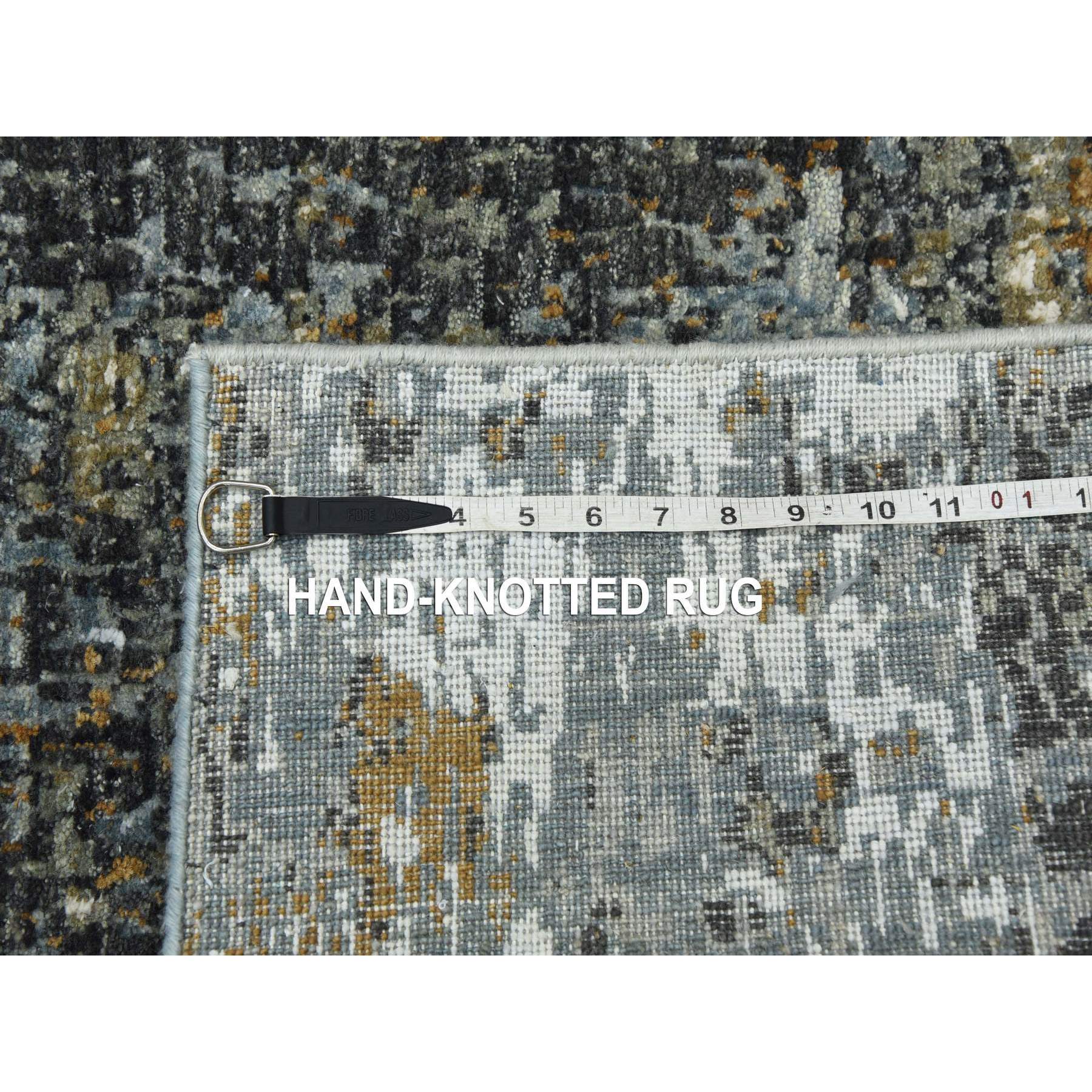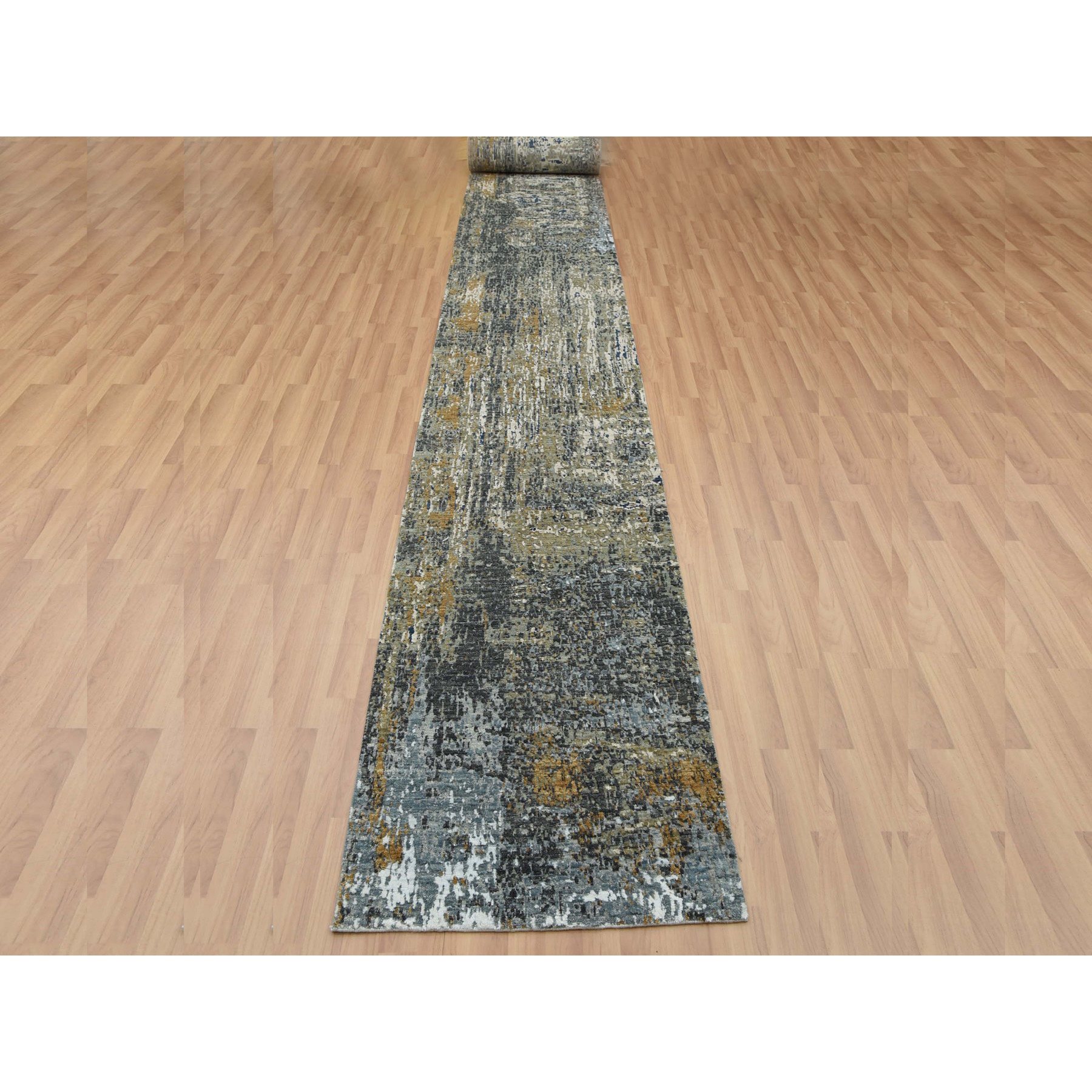 2’5″x19’10” Battleship Gray, Dense Weave Persian Knot, Organic Wool Hand Knotted, Abstract Design, XL Runner Oriental Rug HR83097