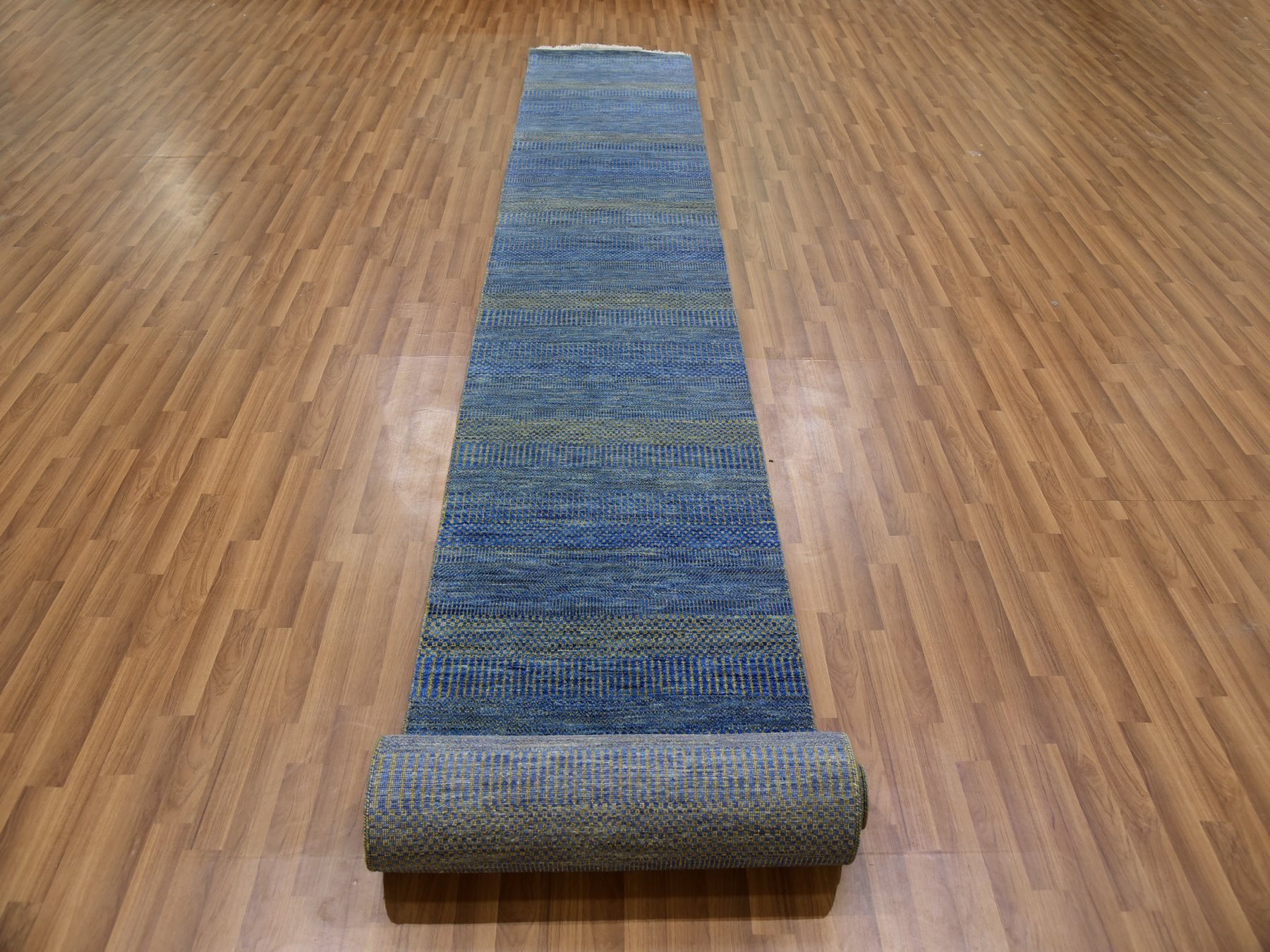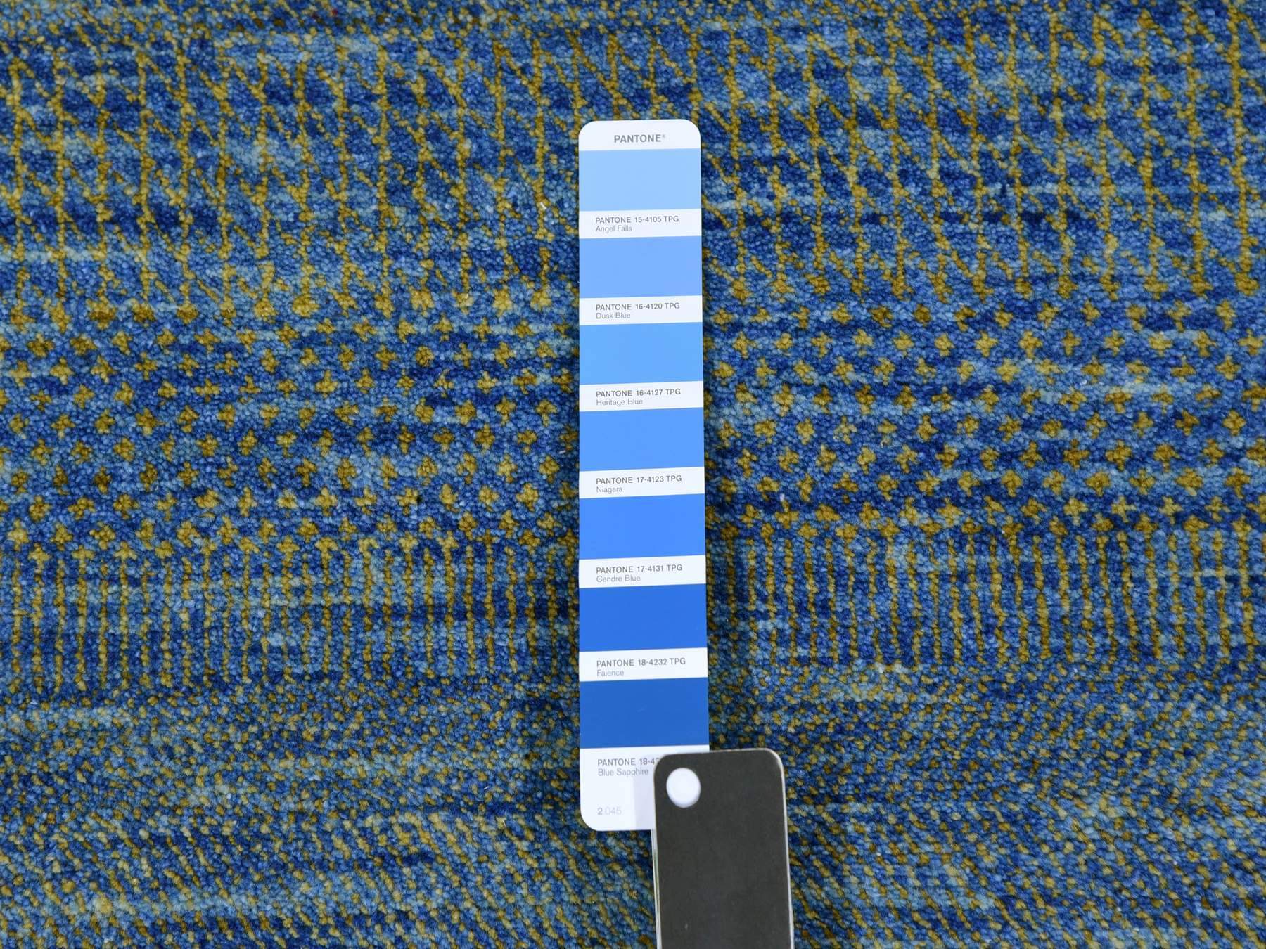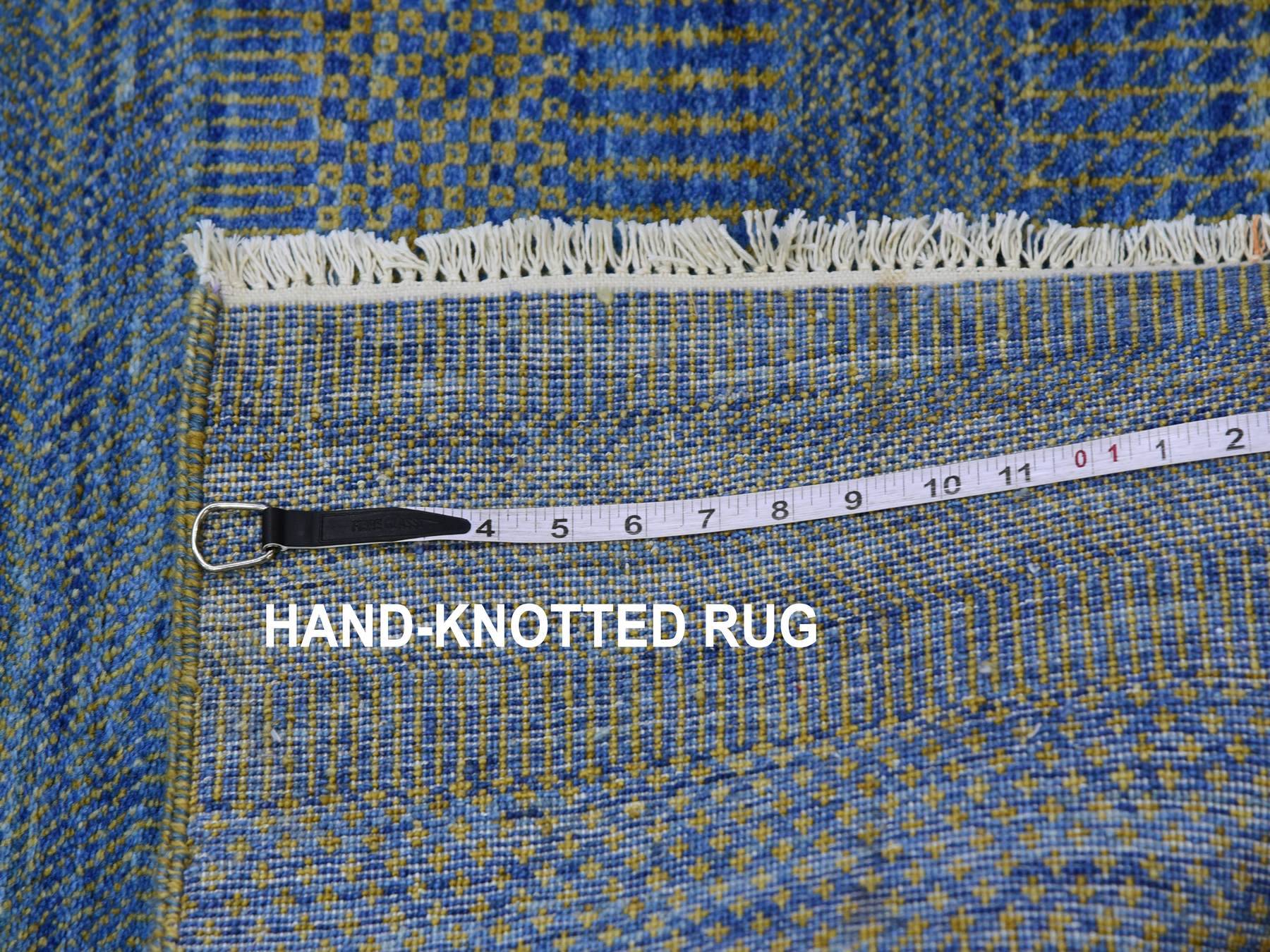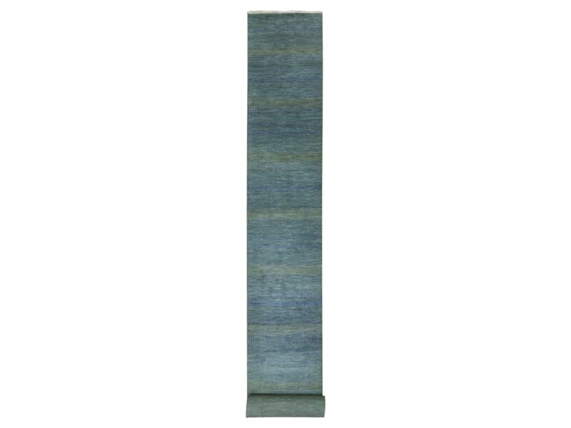 2’5″x20′ Aegean Blue, Modern Tone on Tone Grass Design, Hand Knotted, Dyed Organic Wool, XL Runner Oriental Rug HR79618