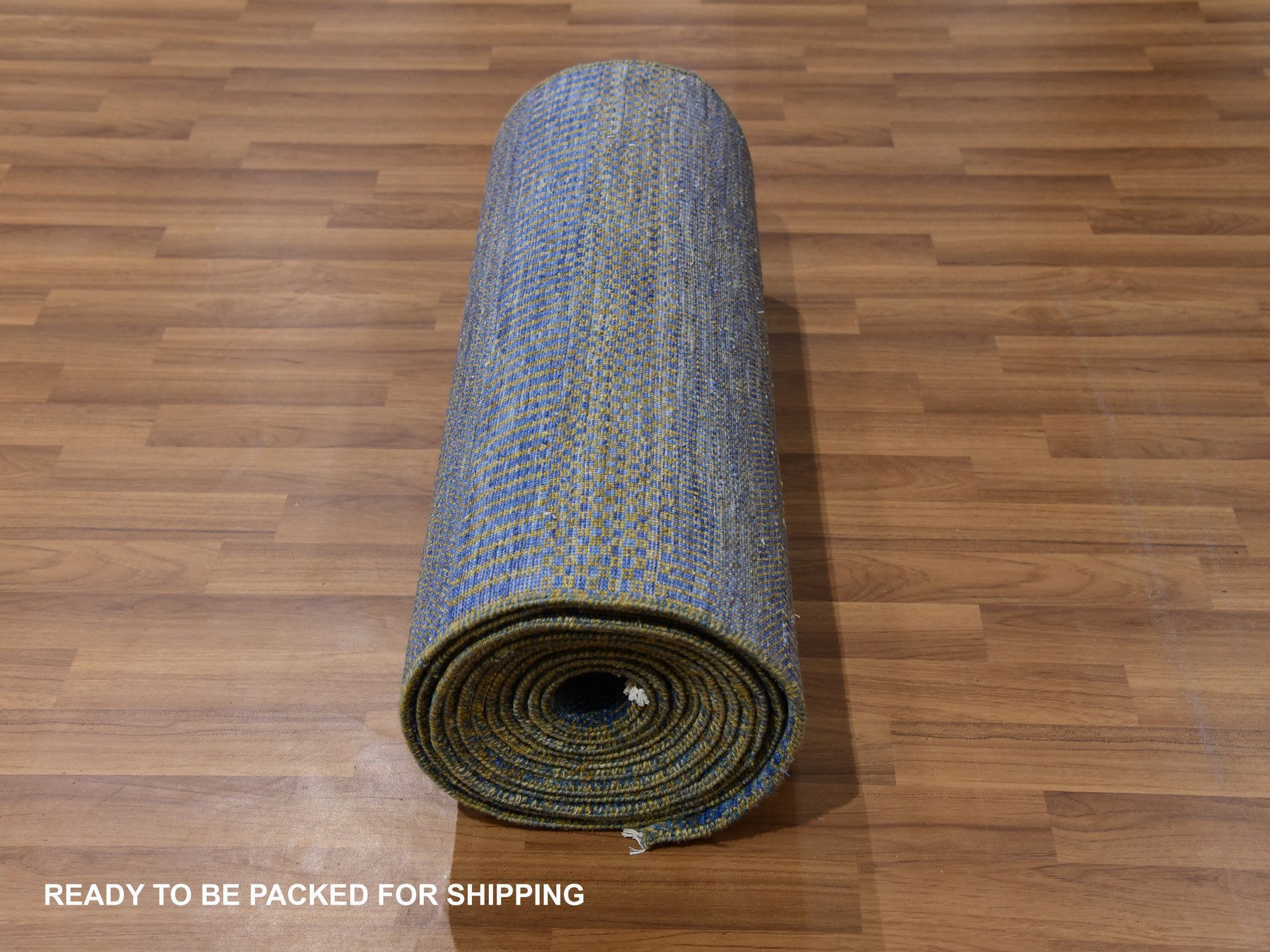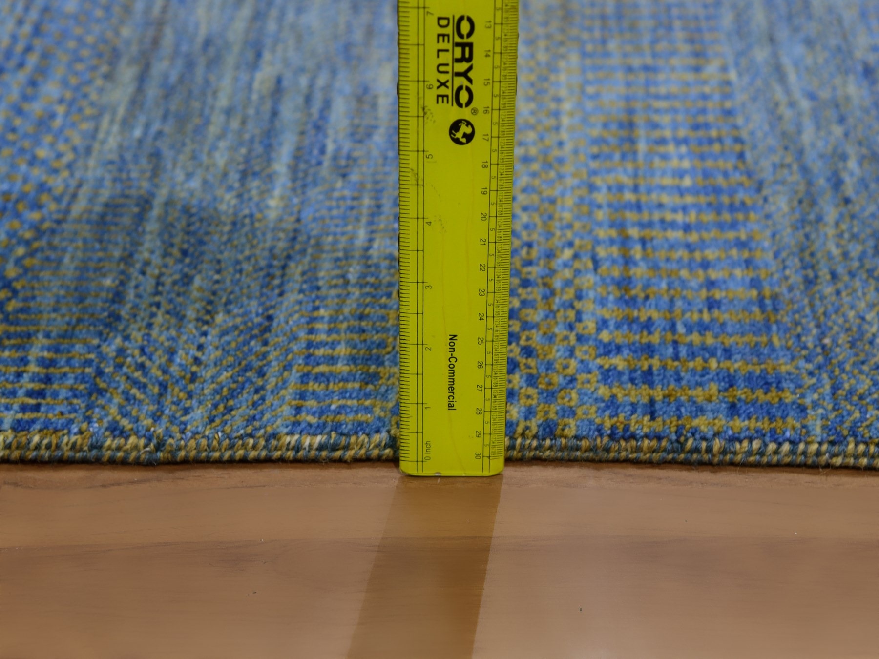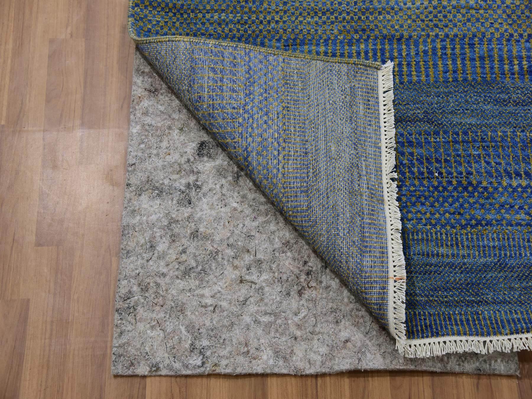 2’5″x20′ Aegean Blue, Modern Tone on Tone Grass Design, Hand Knotted, Dyed Organic Wool, XL Runner Oriental Rug HR79618