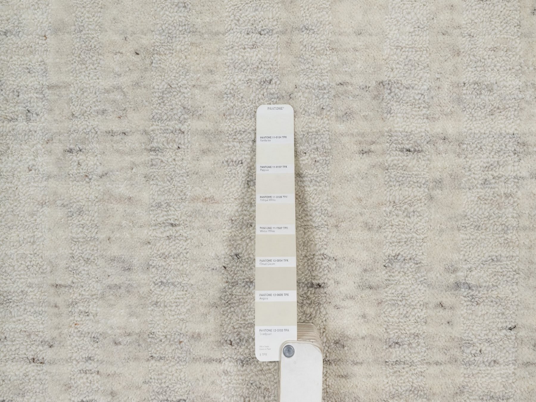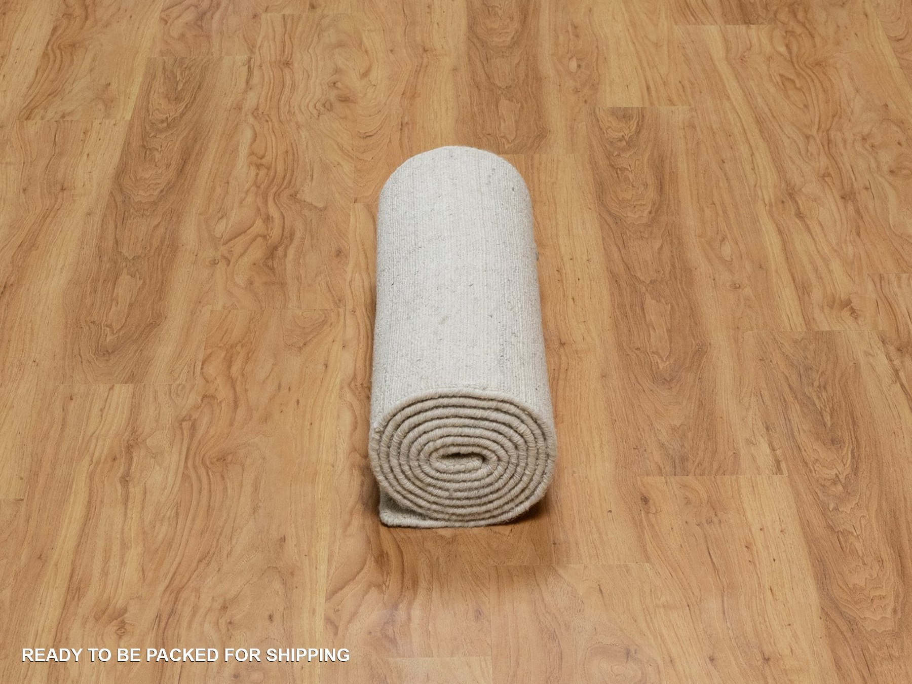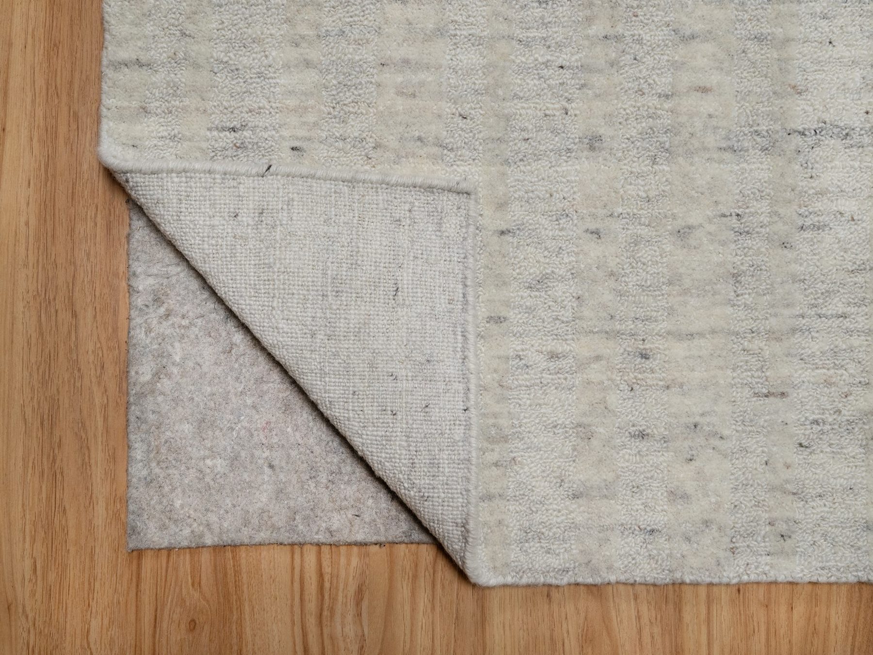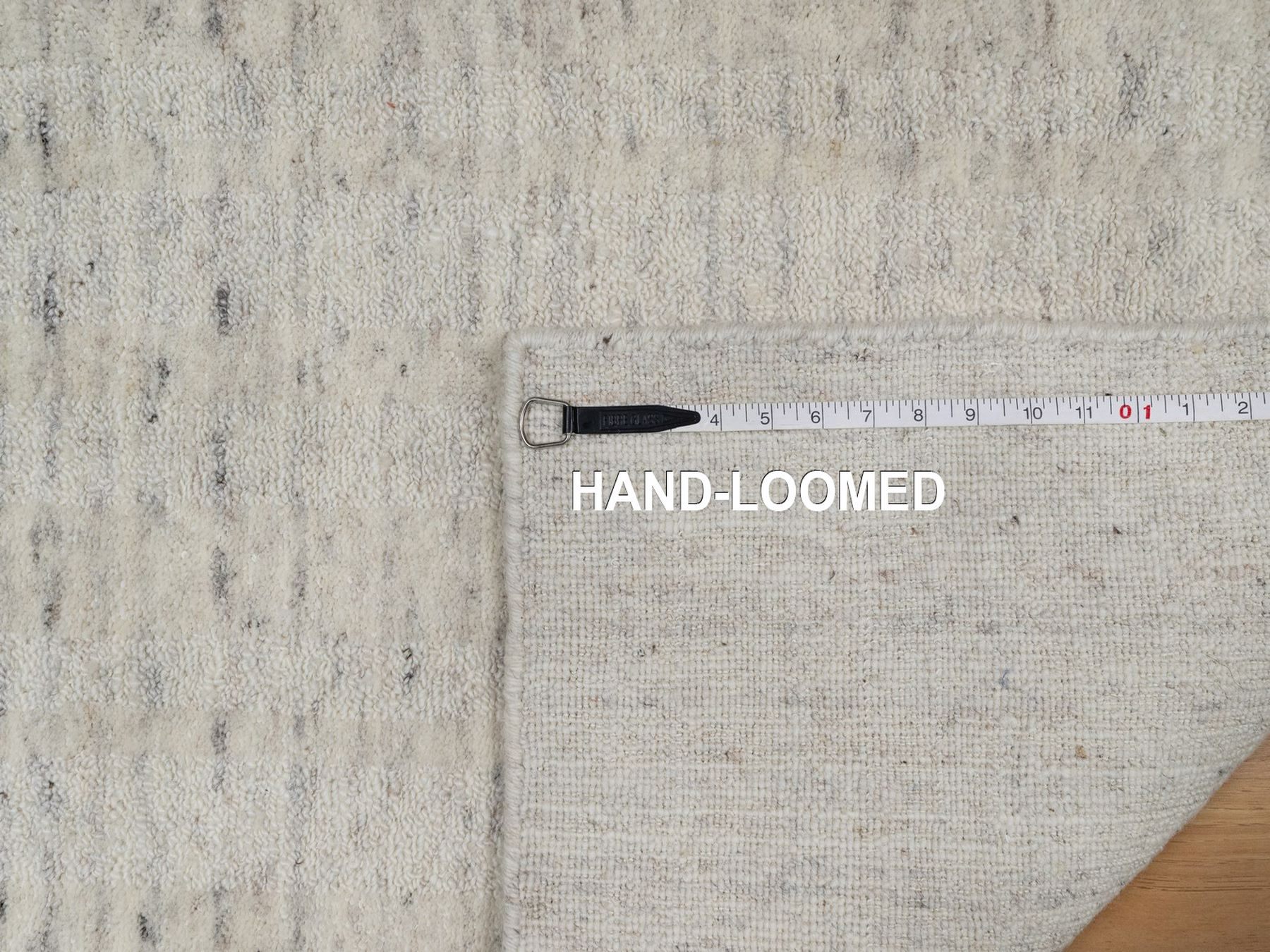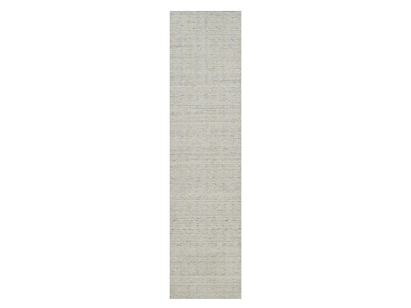 2’6″x10′ Linen White, Salt and Pepper Effect with Vertical Stripes Design, Undyed Natural Wool, Hand Loomed, Runner, Oriental Rug HR91671