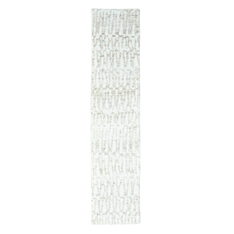 2’6″x11’10” Bone White, Minimalist Swedish Design, Hand Knotted, Pure Wool, Runner, Oriental Rug HR10343