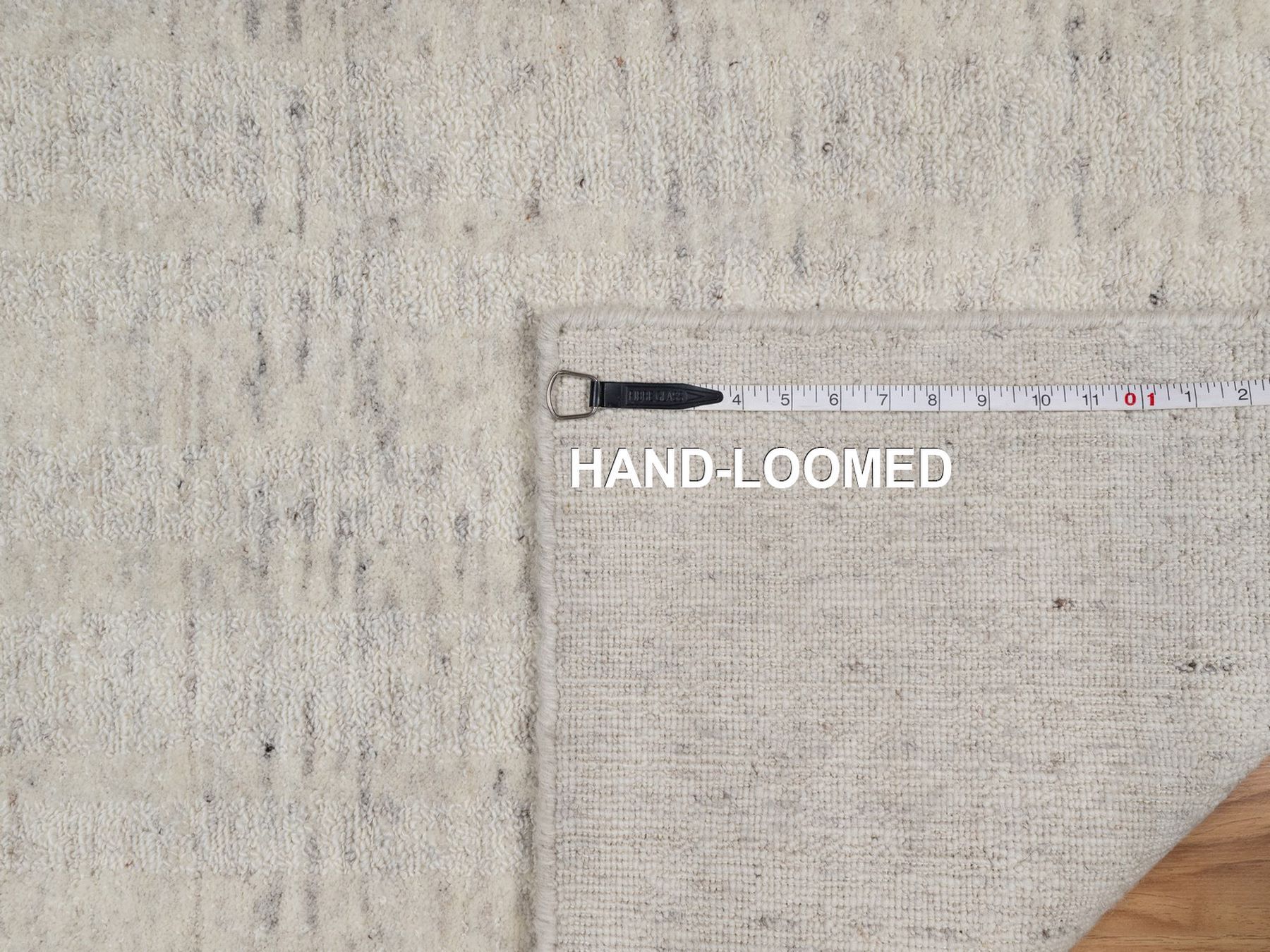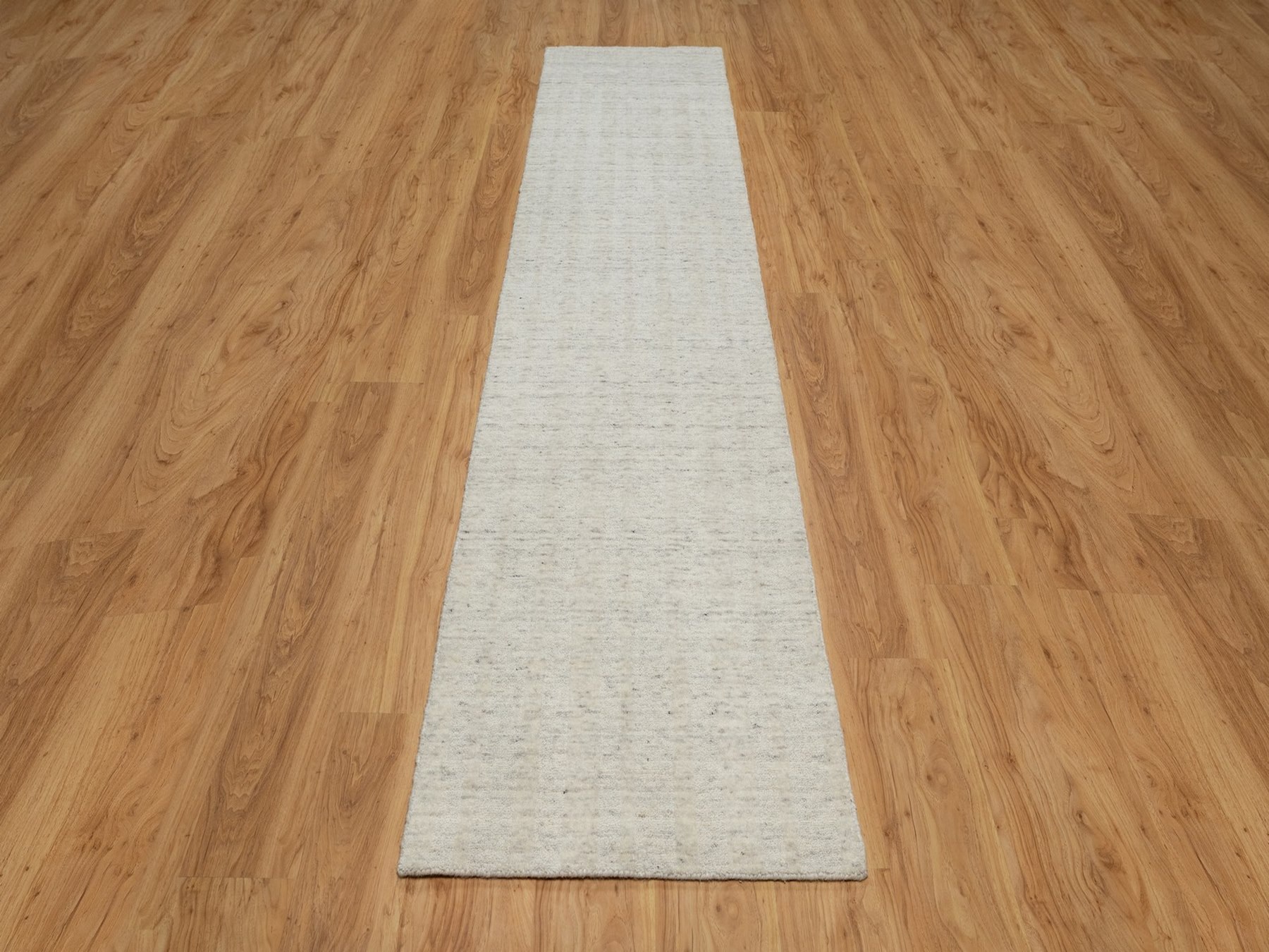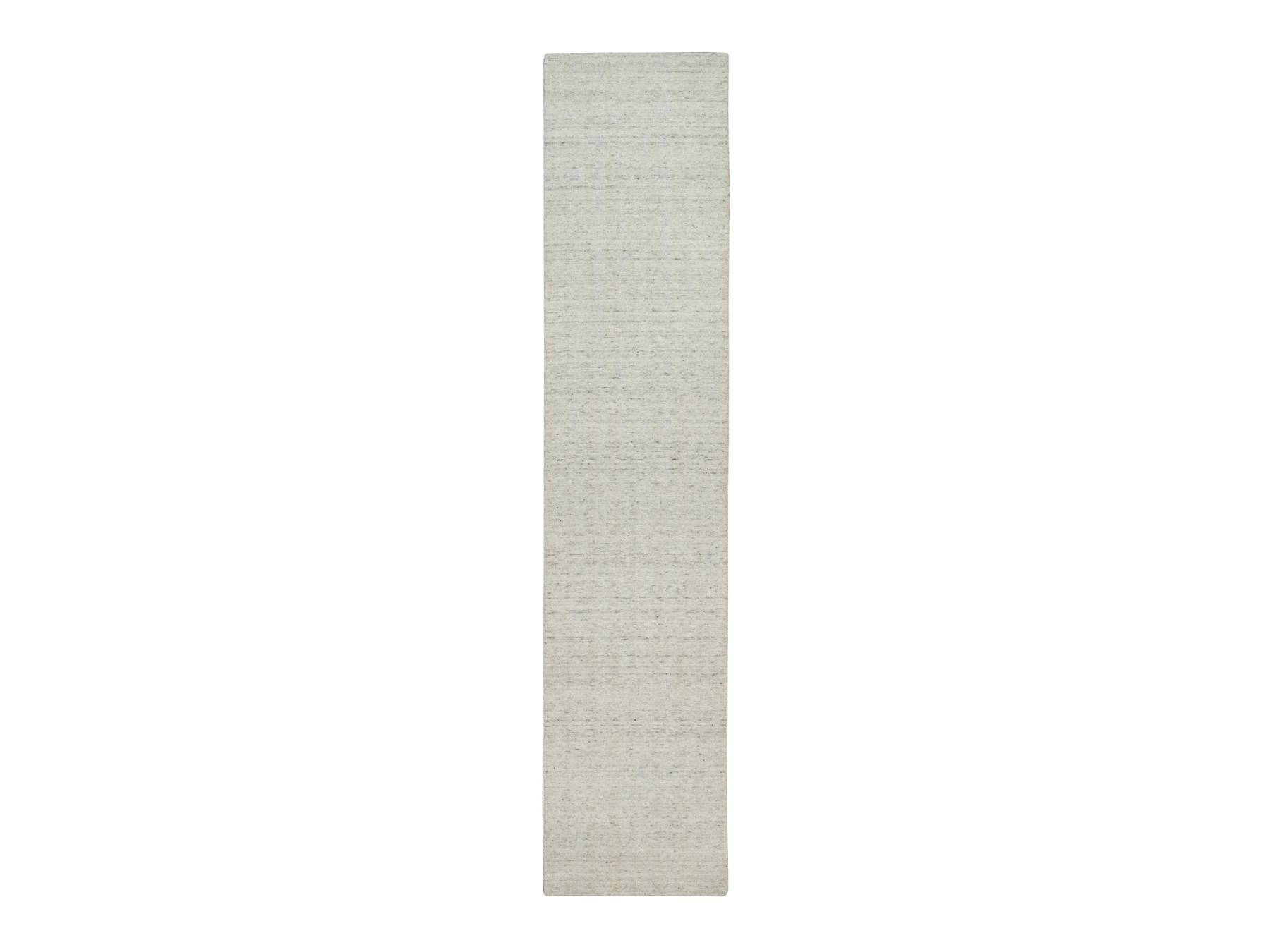 2’6″x12′ Papyrus White, Salt and Pepper Effect with Vertical Stripes Design, Hand Loomed, Undyed Natural Wool, Runner, Oriental Rug HR91669