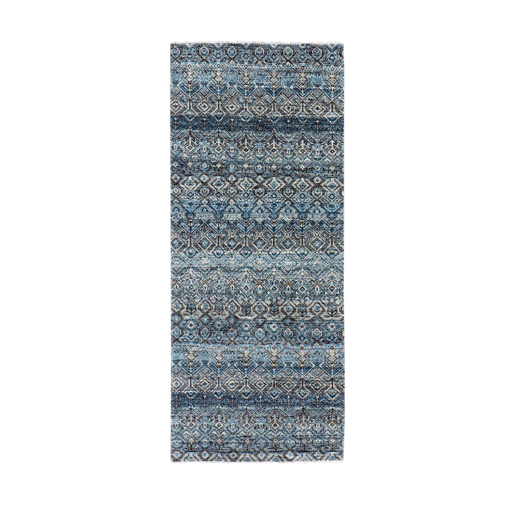 2’6″x6’1″ Yale Blue, 100% Plush Wool, Hand Knotted, Kohinoor Herat Small Geometric Repetitive Design, Runner Oriental Rug HR79498