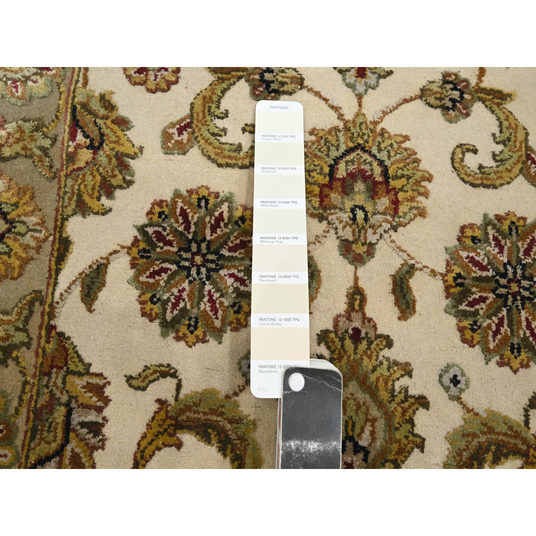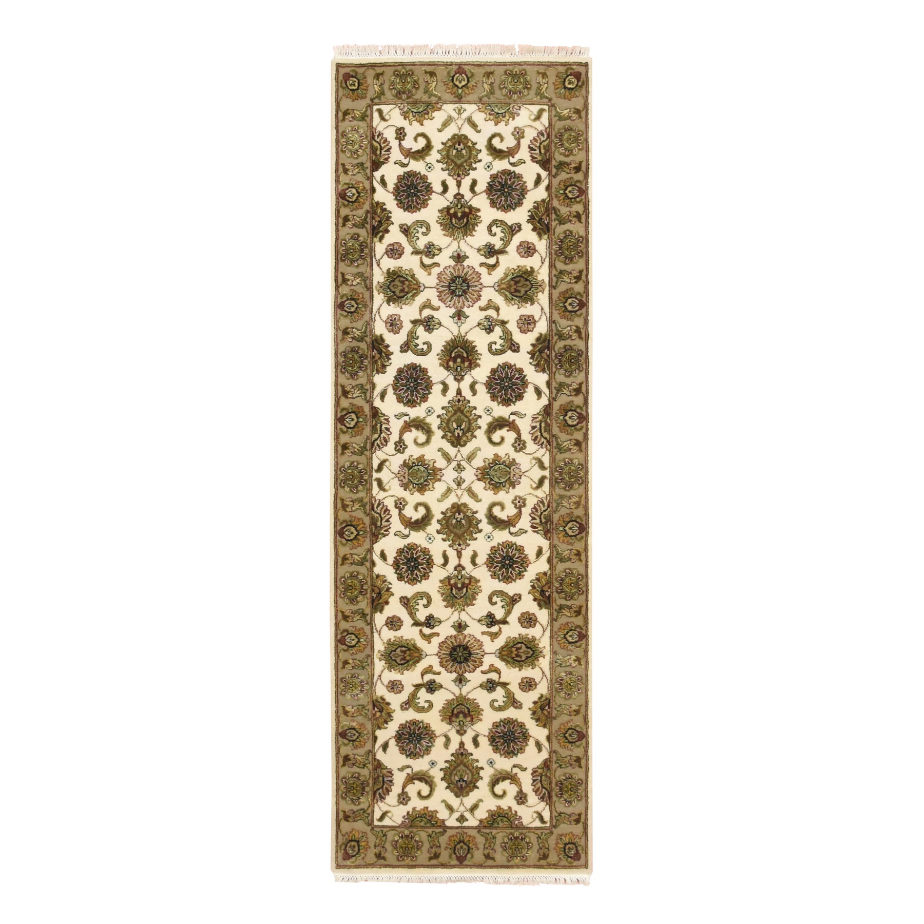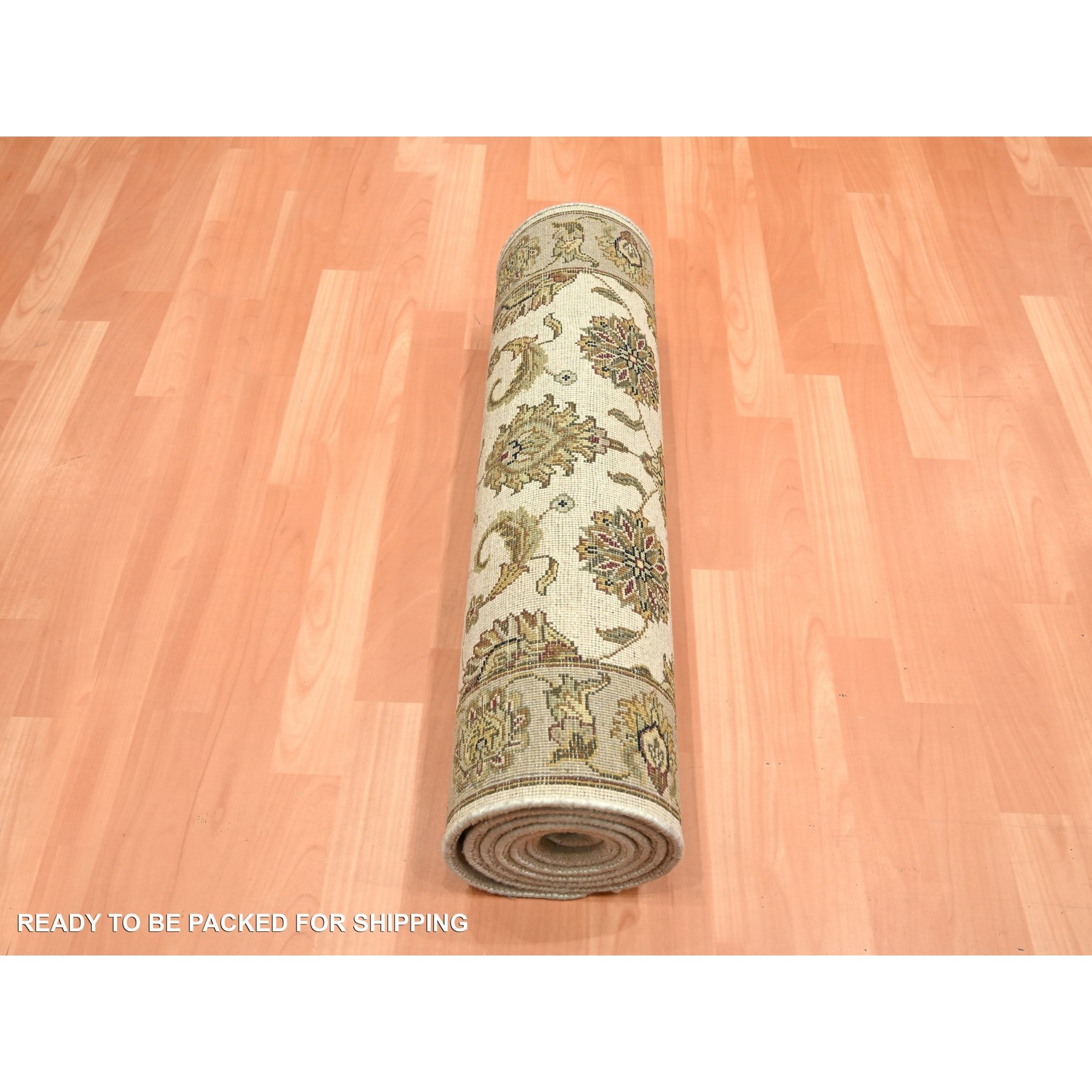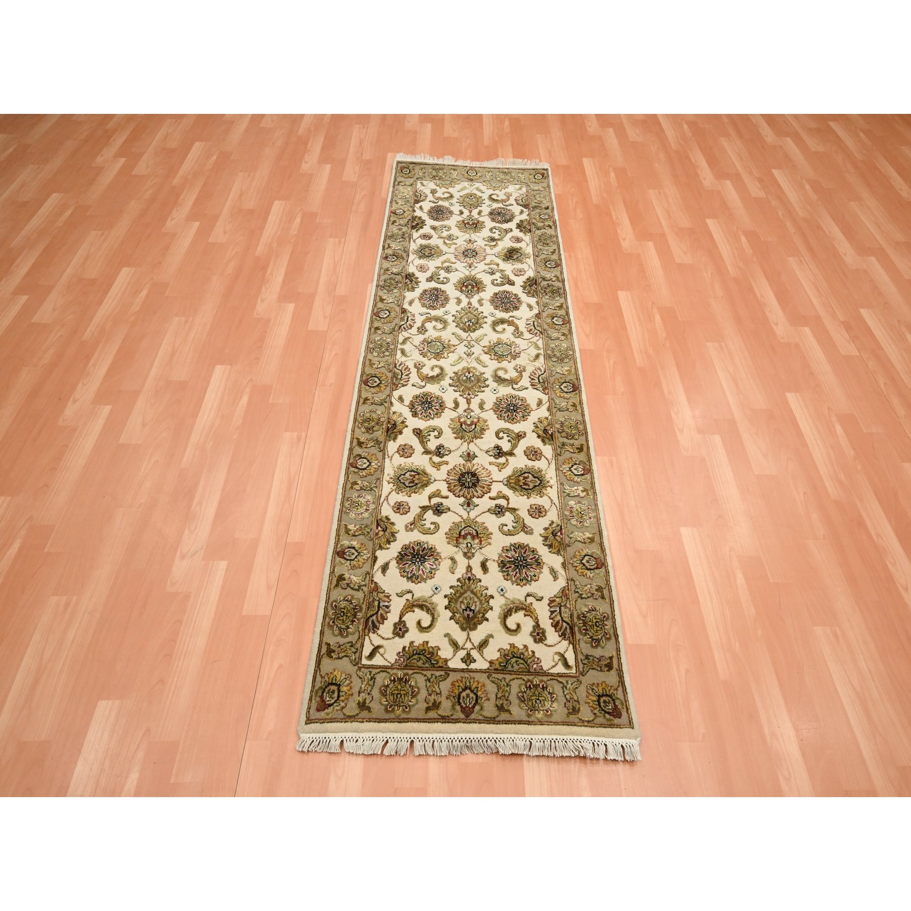 2’6″x8′ Alabaster White, Rajasthan with All Over Leaf Design, Hand Knotted, Wool and Silk, Soft Pile, Thick and Plush, Runner, Oriental Rug HR75612