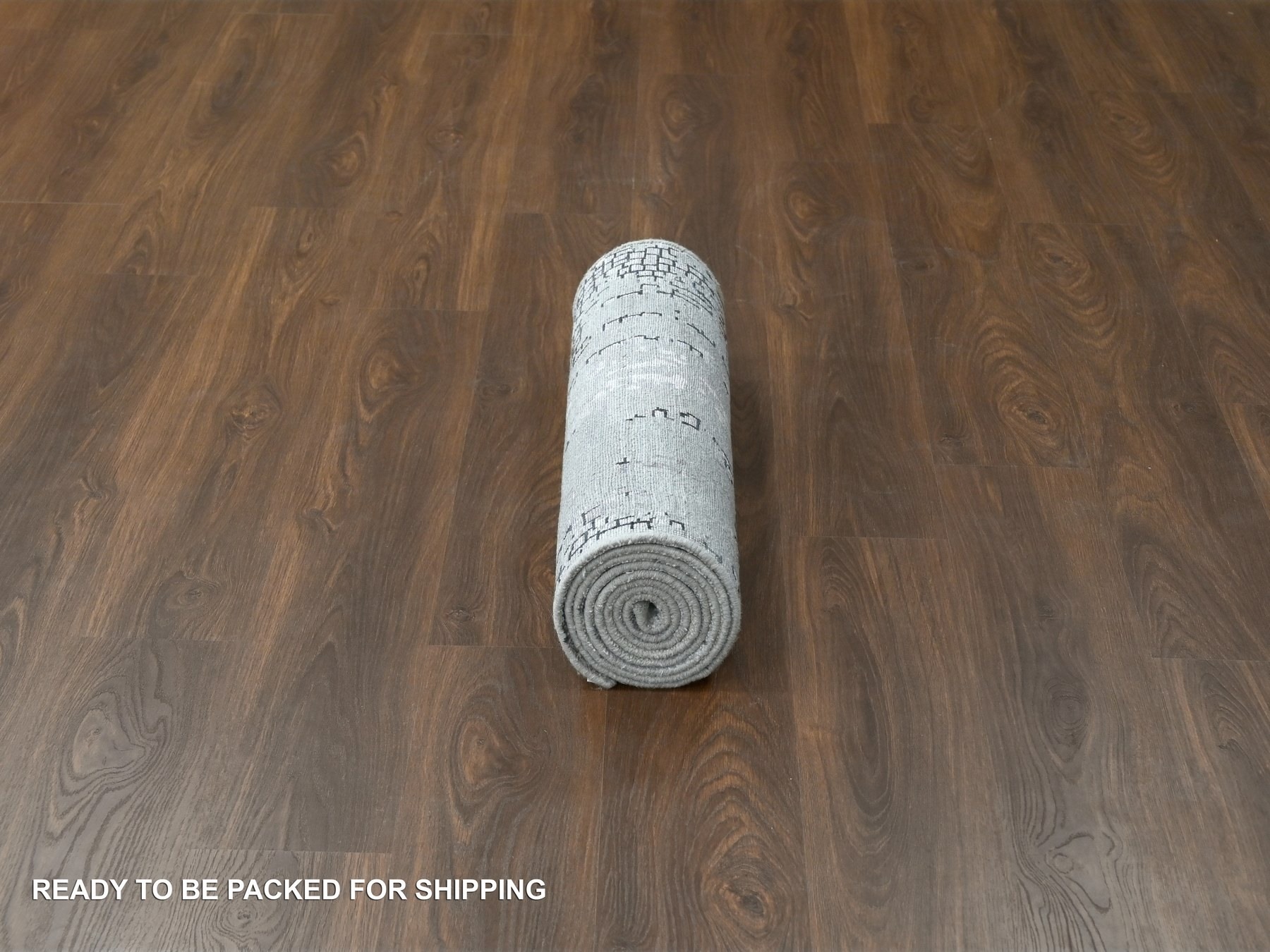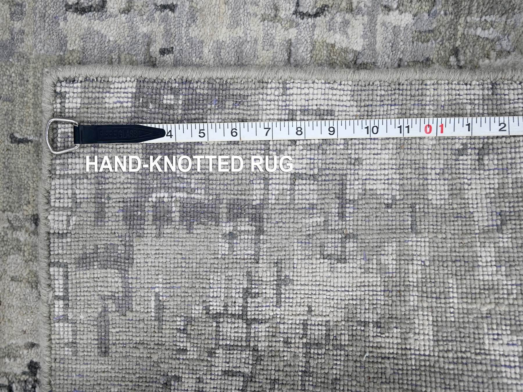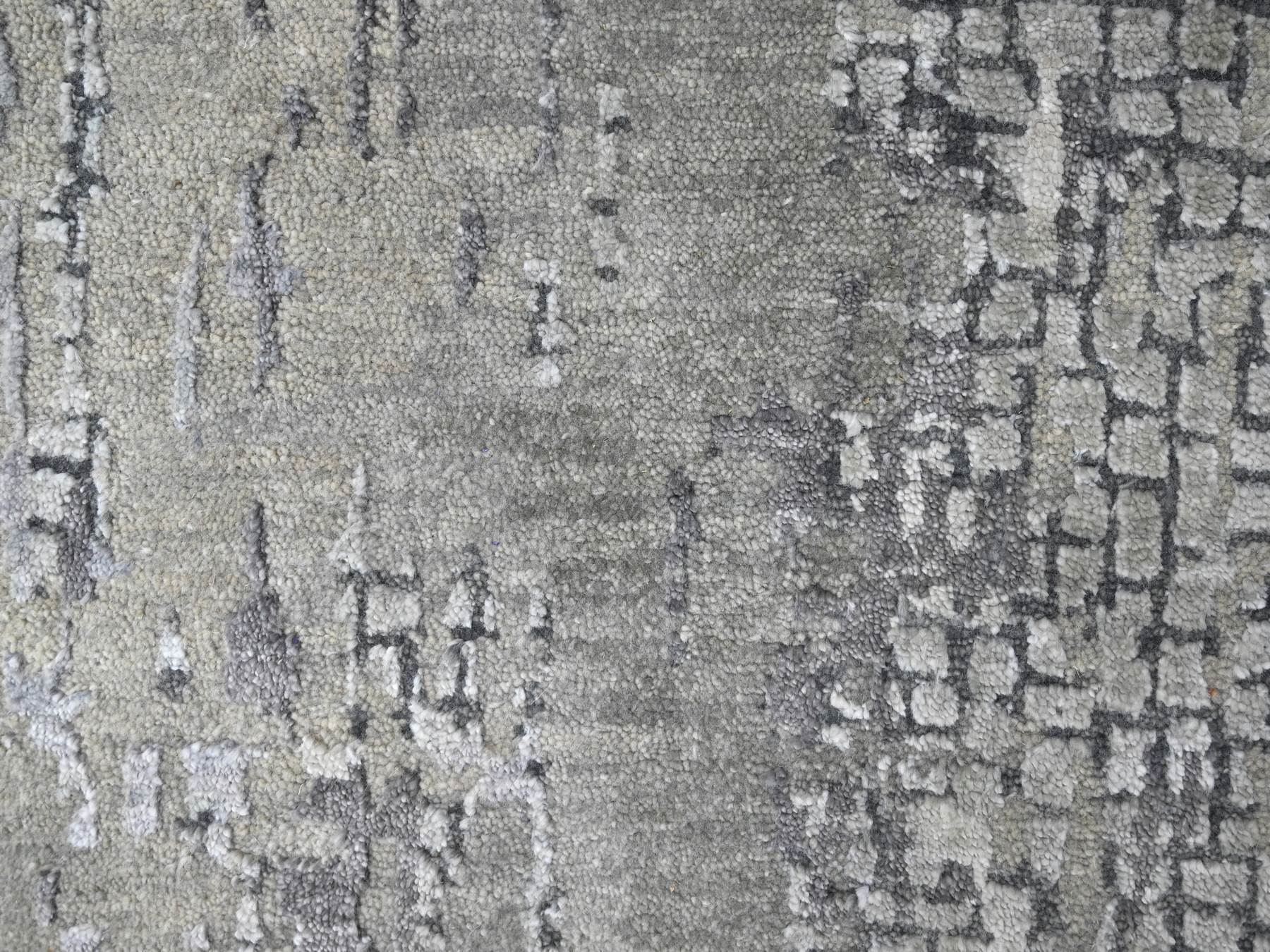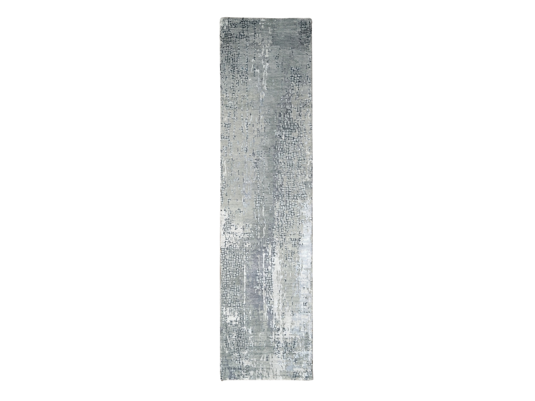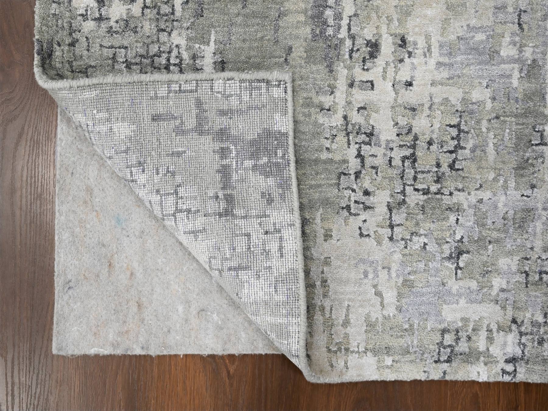2’6″x9’9″ Lava Gray, Wool and Silk, Hand Knotted, Dense Weave, Persian Knot, Abstract with Mosaic Design, Runner Oriental Rug HR84604