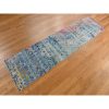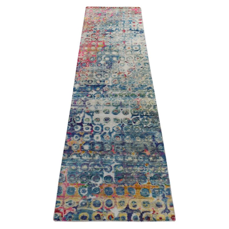 2’7″x10’2″ Cambridge Blue, THE PEACOCK, Colorful Sari Silk, Hand Knotted, Runner, Oriental Rug HR78249
