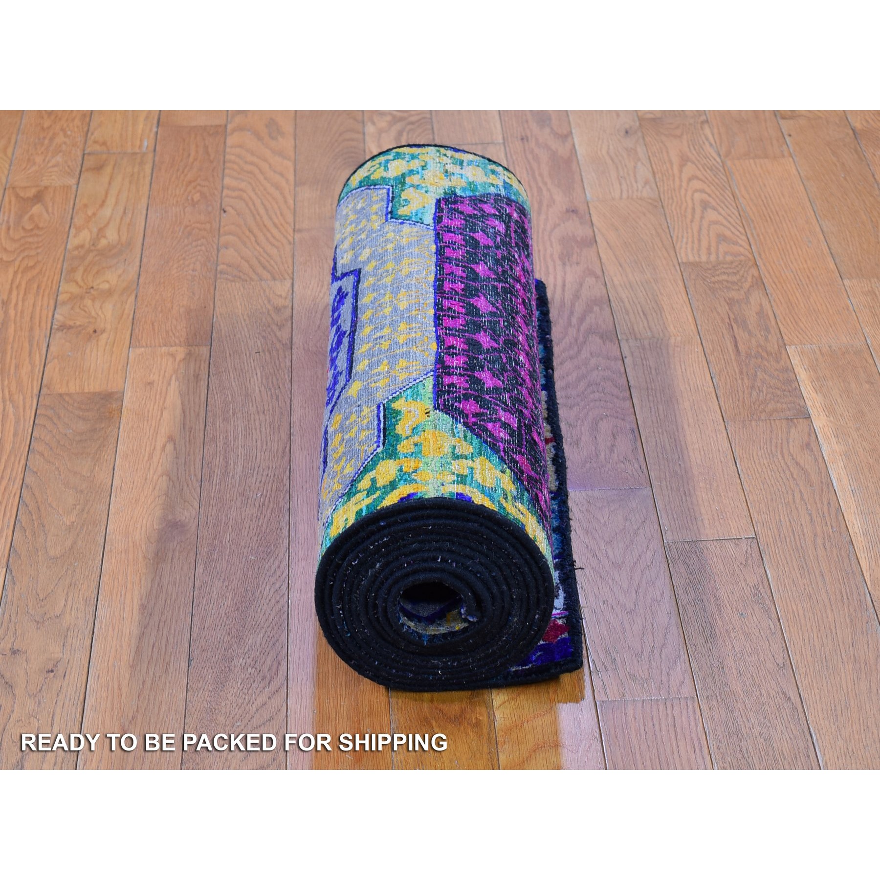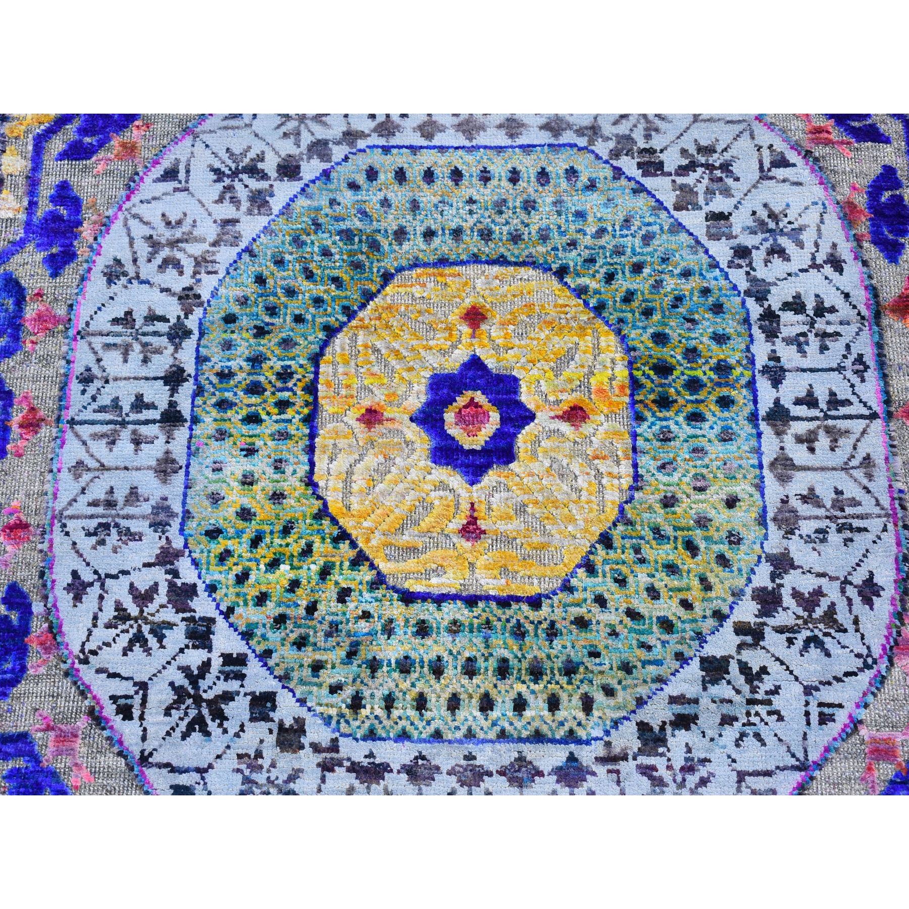 2’7″x12′ Sari Silk with Textured Wool Mamluk Design Colorful Hand Knotted Wide Runner Oriental Rug HR66696