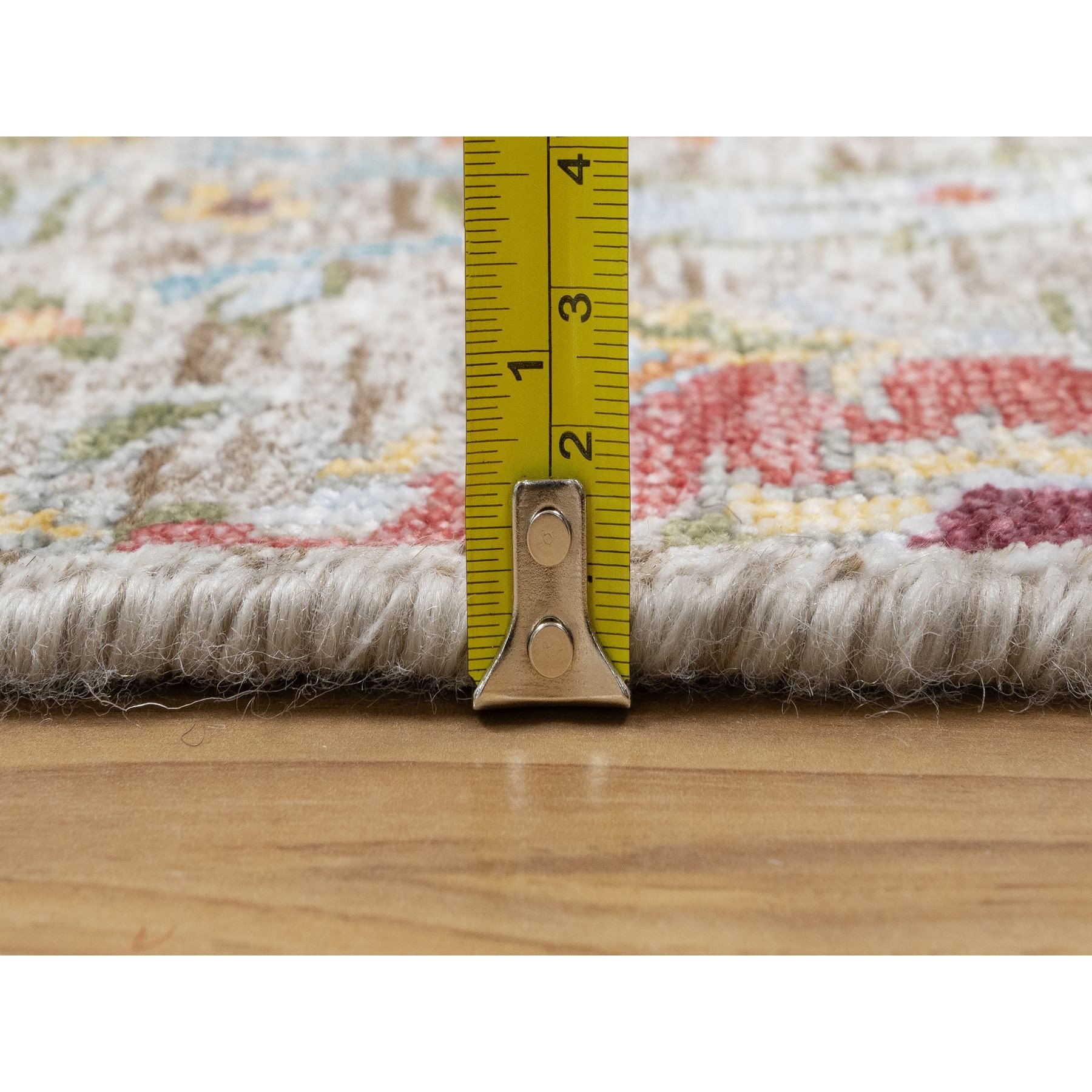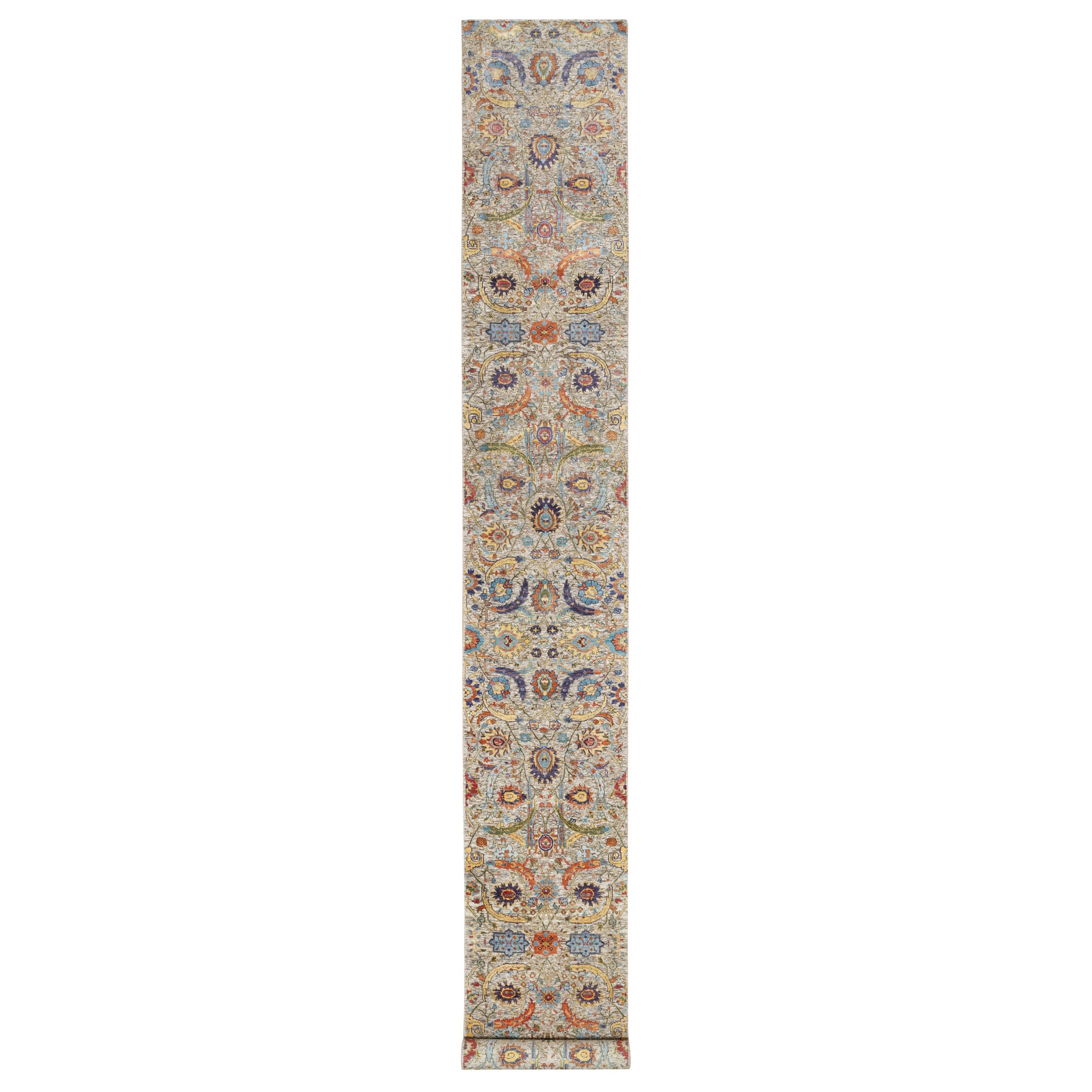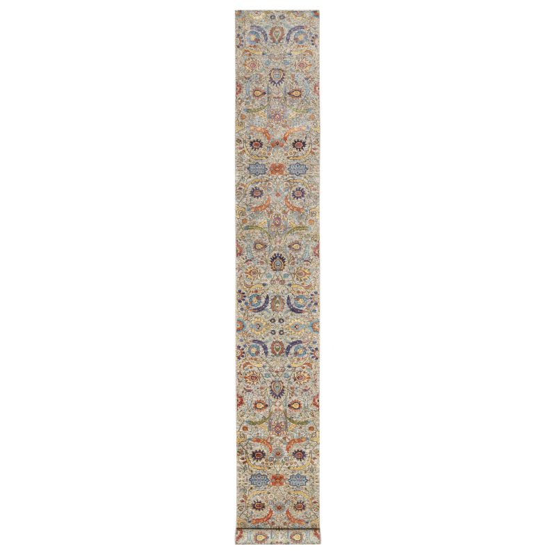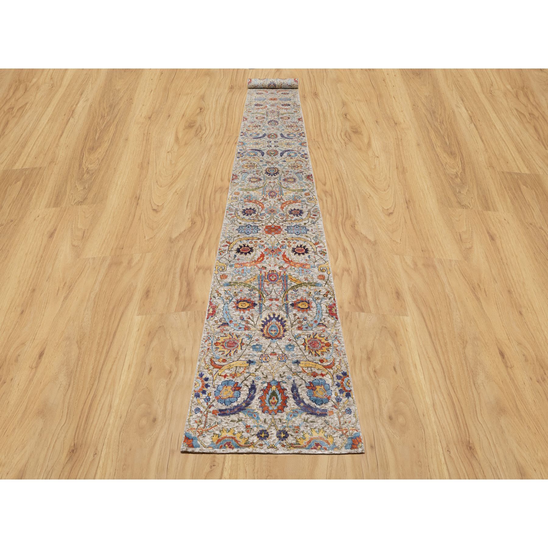 2’7″x20’2″ Cornsilk White, Sickle Leaf Design, Soft and Plush Pile, Silk With Textured Wool, Hand Knotted XL Runner Oriental Rug HR90962