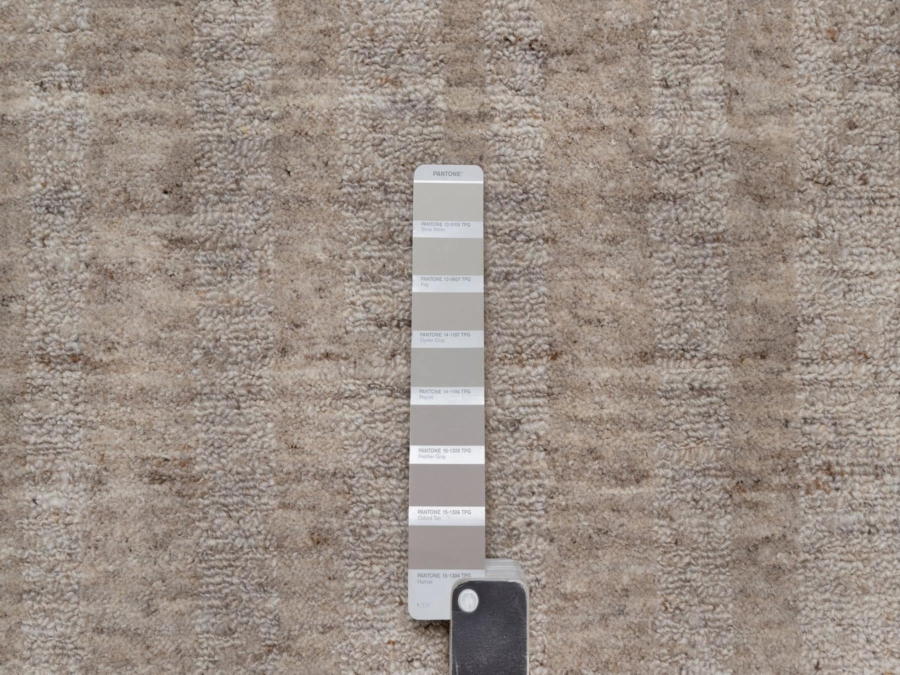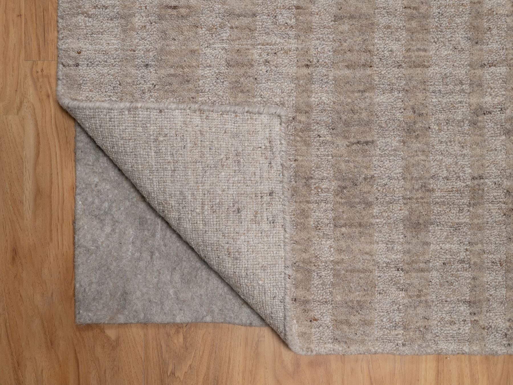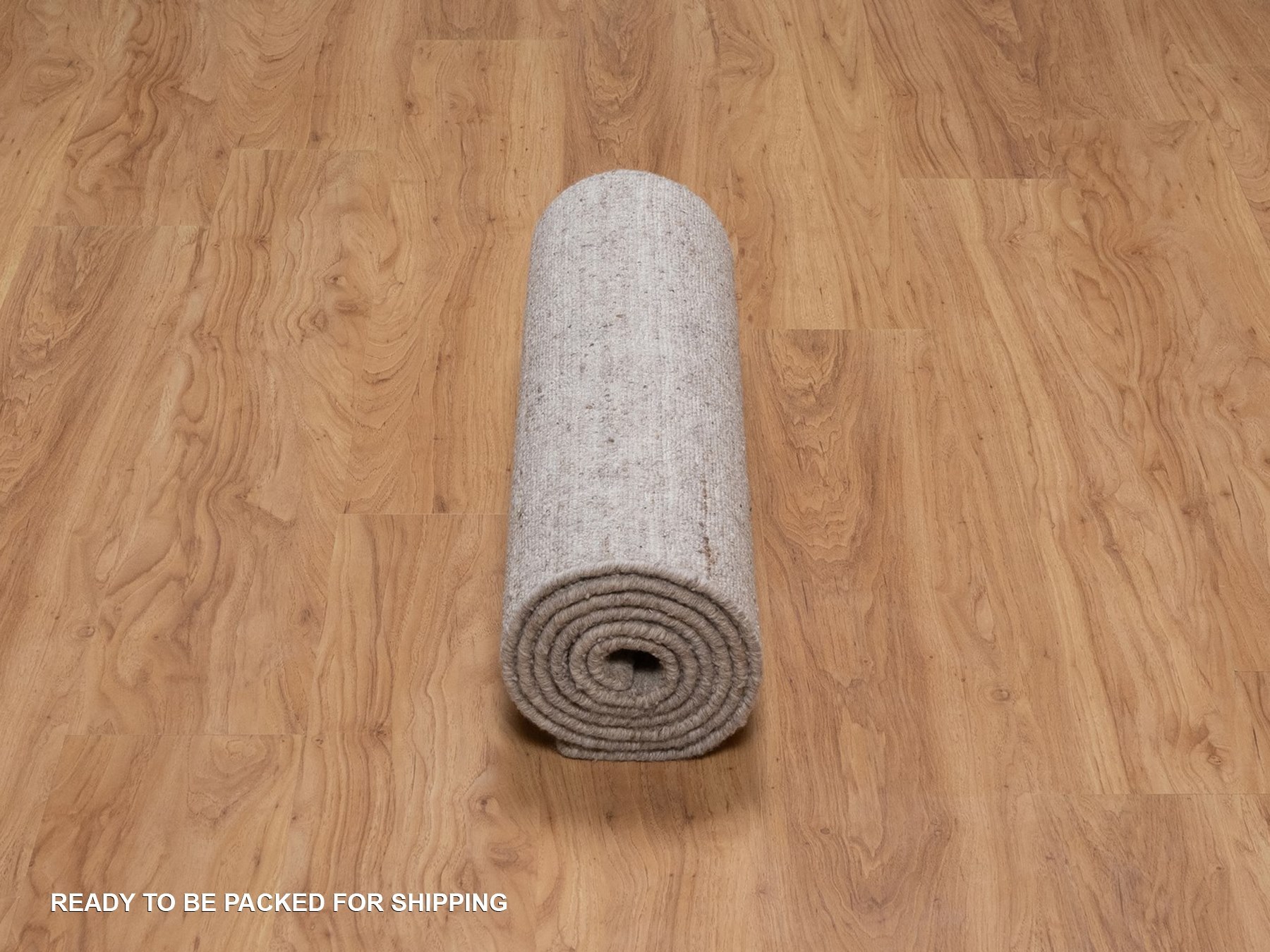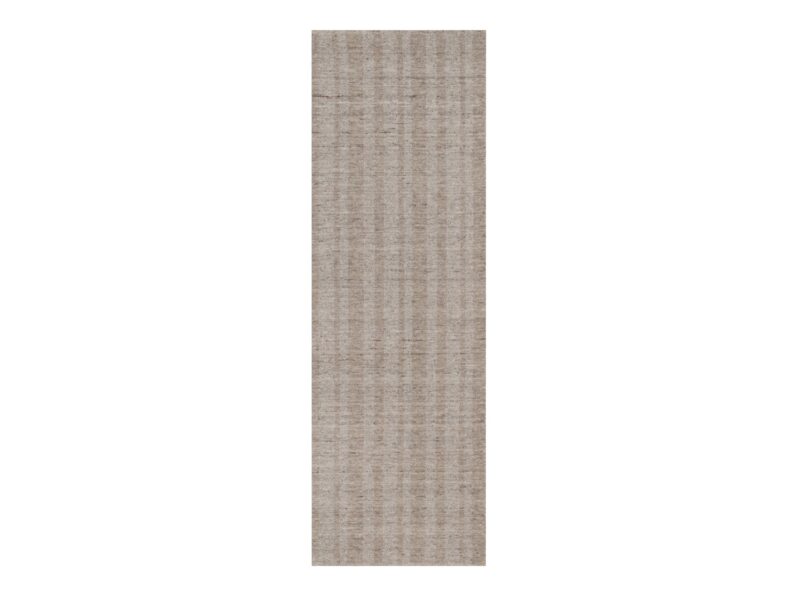 2’7″x8′ Bone Brown, Hand Loomed, Undyed Natural Wool, Vertical Stripes Design with Salt and Pepper Effect, Runner, Oriental Rug HR91659