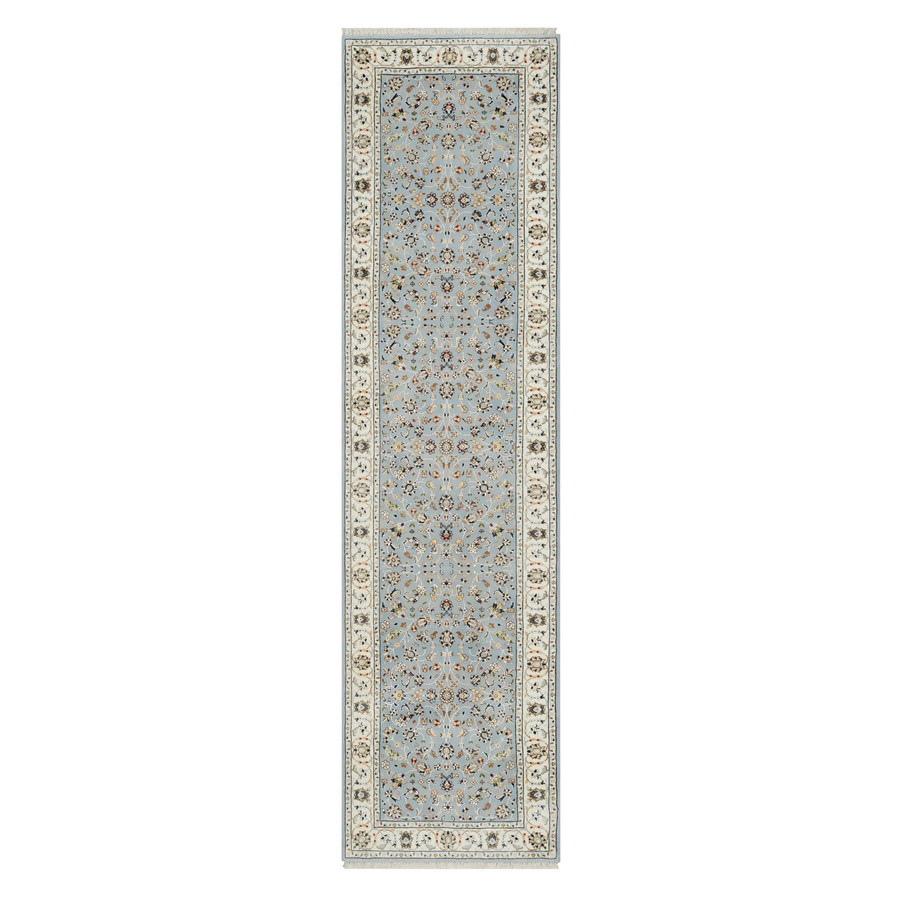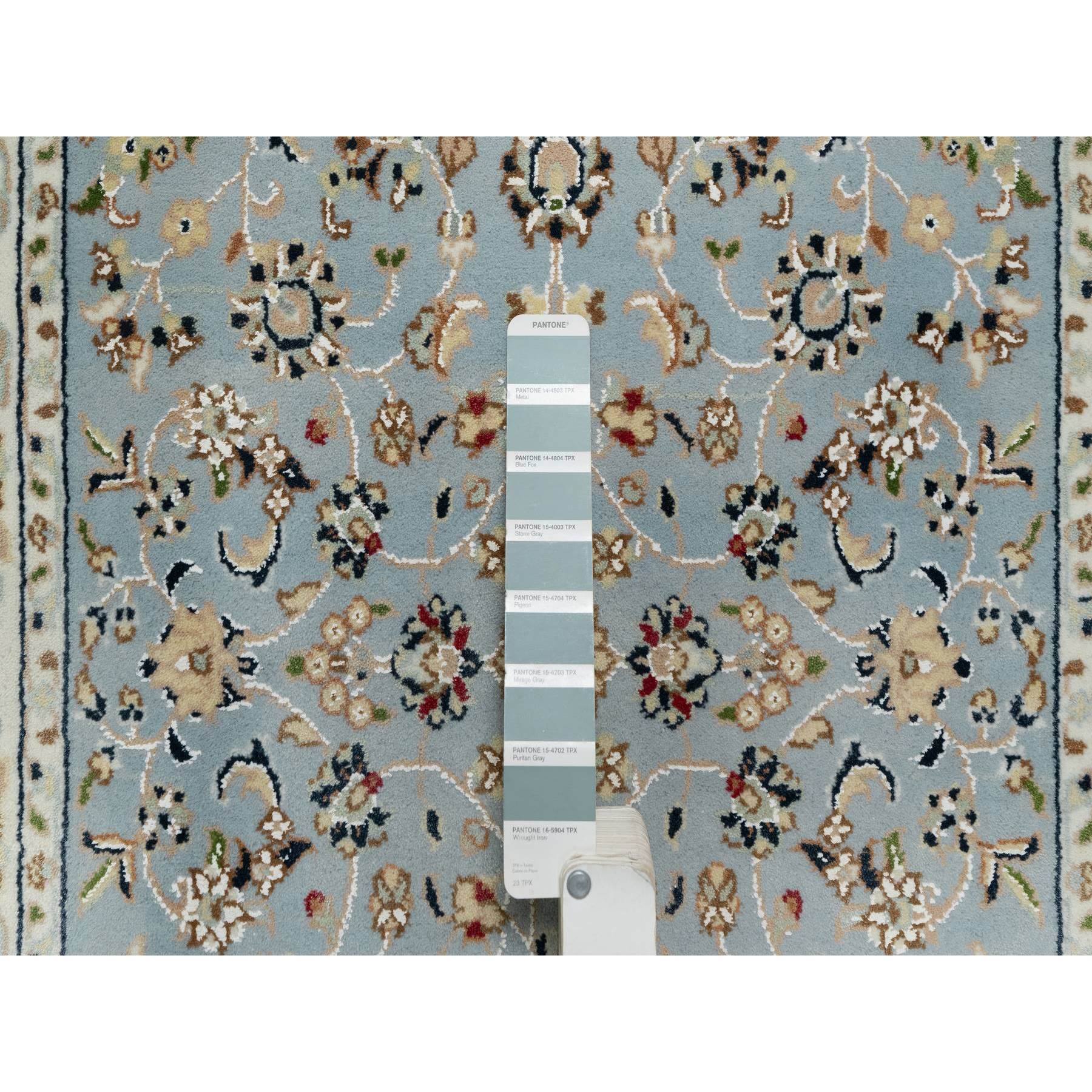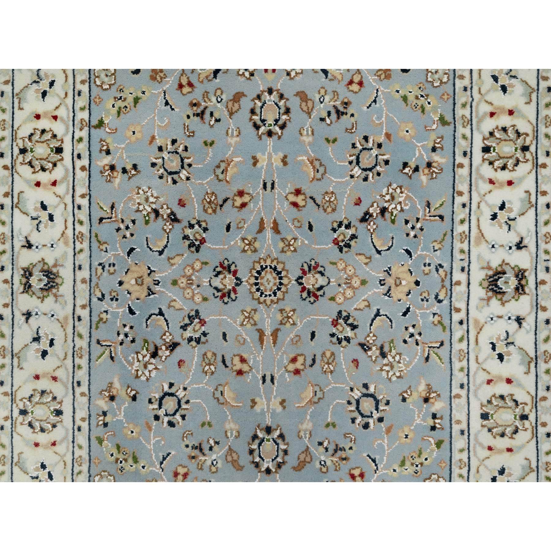 2’8″x10’3″ Light Blue, 250 KPSI, Nain with All Over Flower Design, Wool and Silk, Hand Knotted, Runner, Oriental Rug HR91010