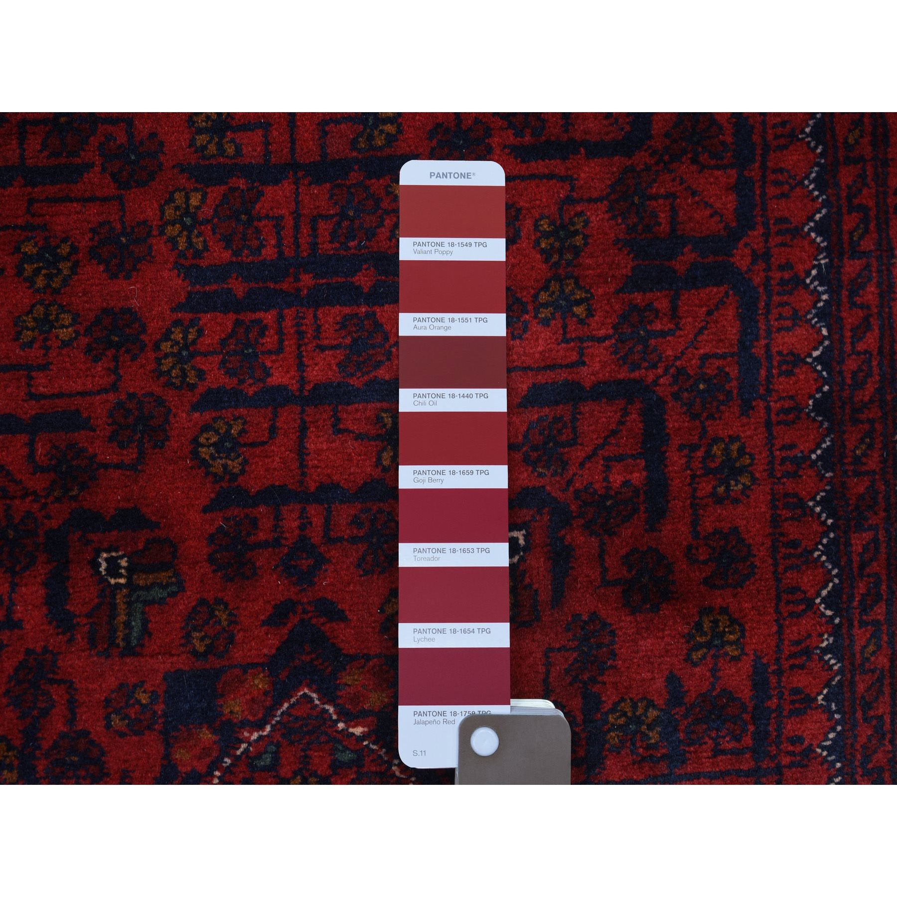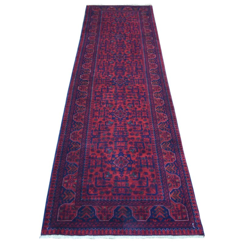 2’8″x9’8″ Deep and Saturated Red Tribal Design Velvety Wool, Afghan Khamyab Hand Knotted Runner Oriental Rug HR72022