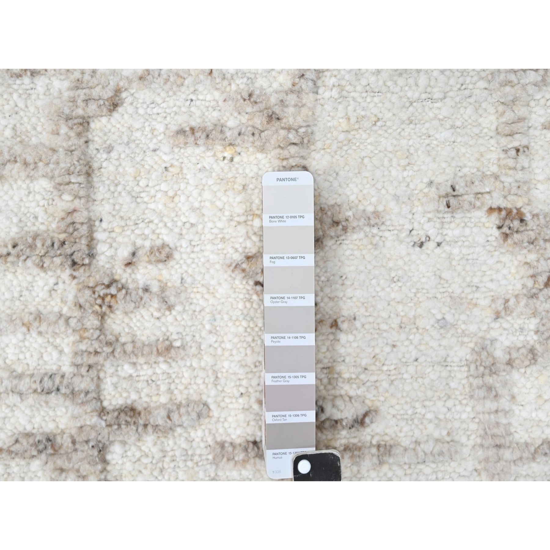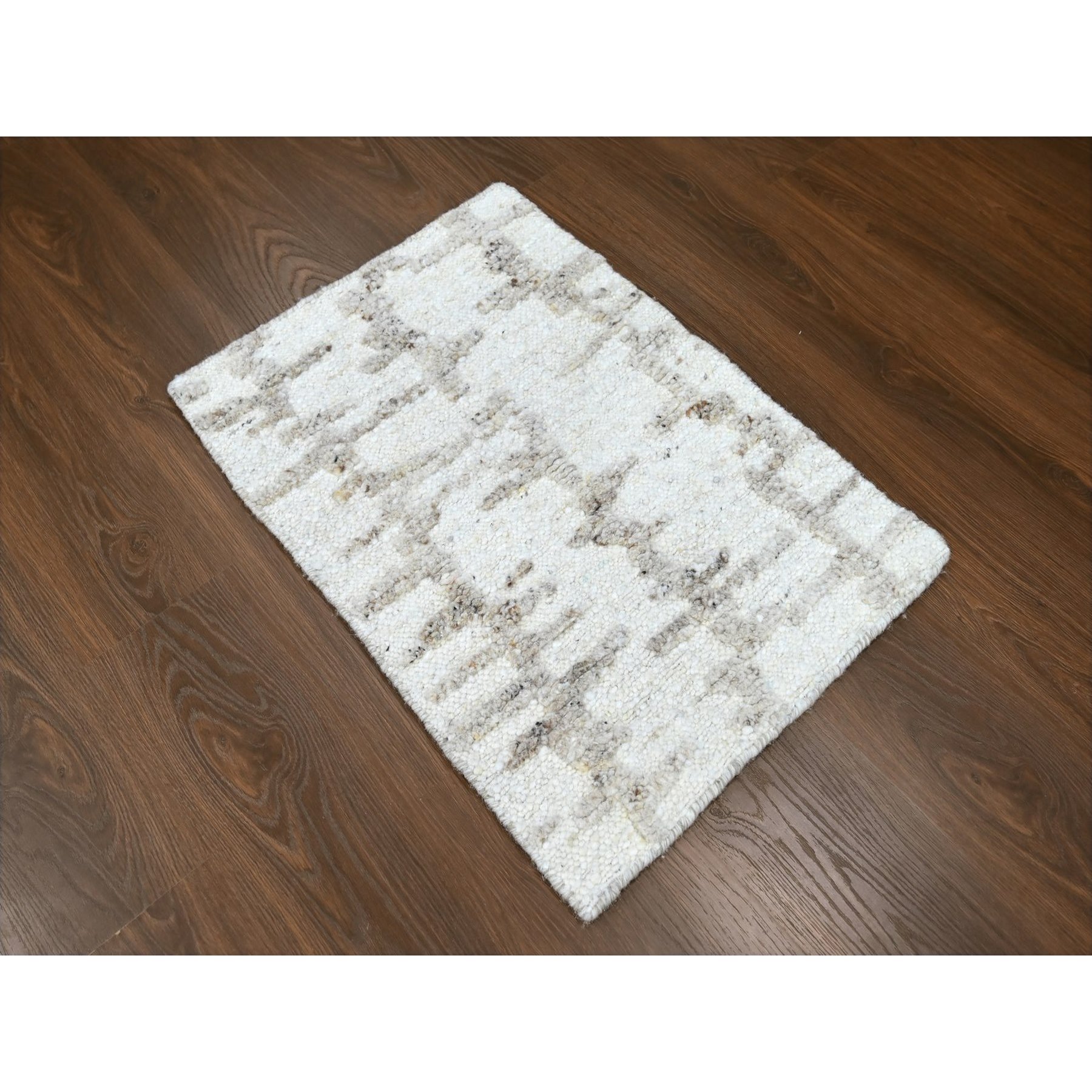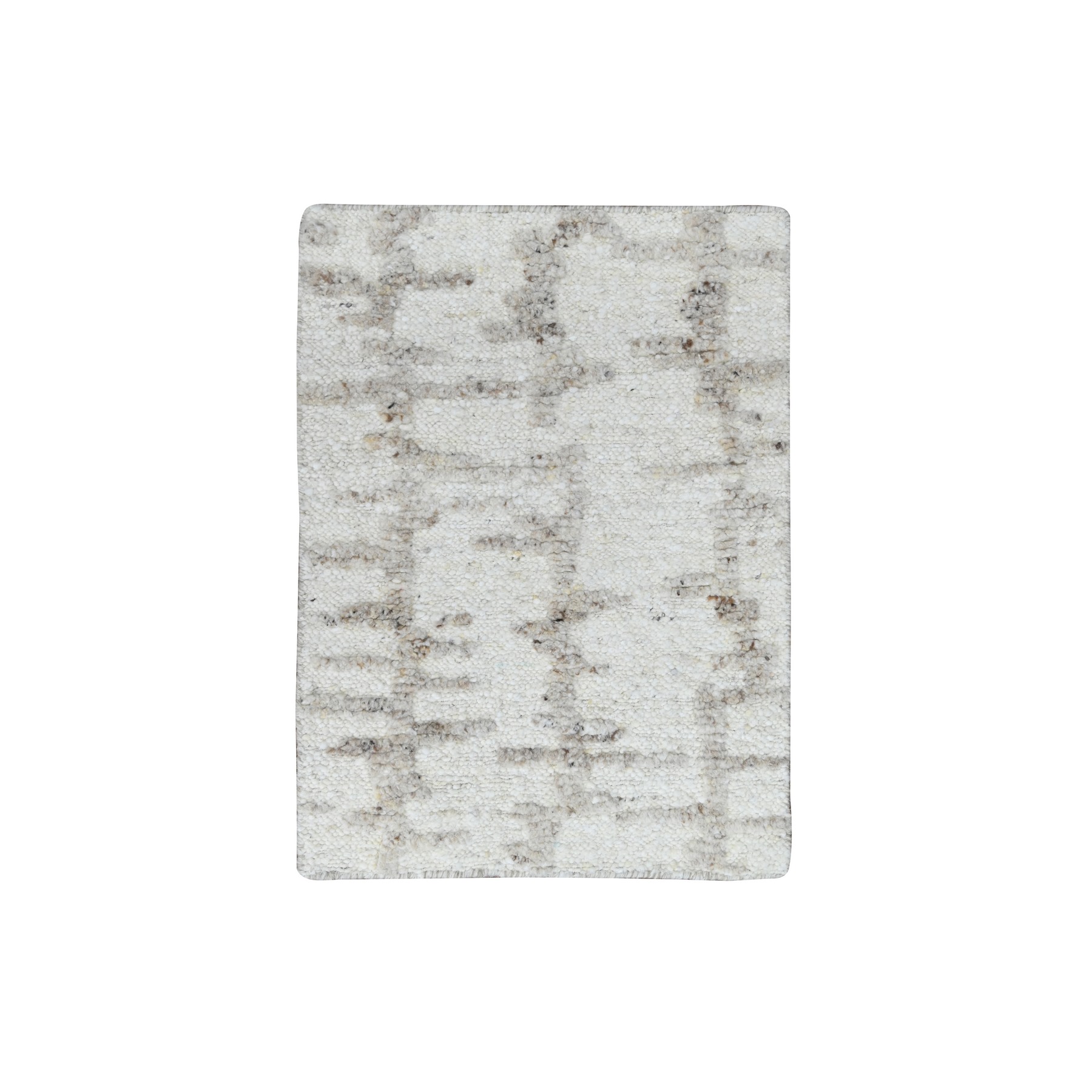 2’x2’10” Oyster White, Natural Wool, Minimalist Swedish Design, Hand Knotted, Mat, Sample, Oriental Rug HR10356